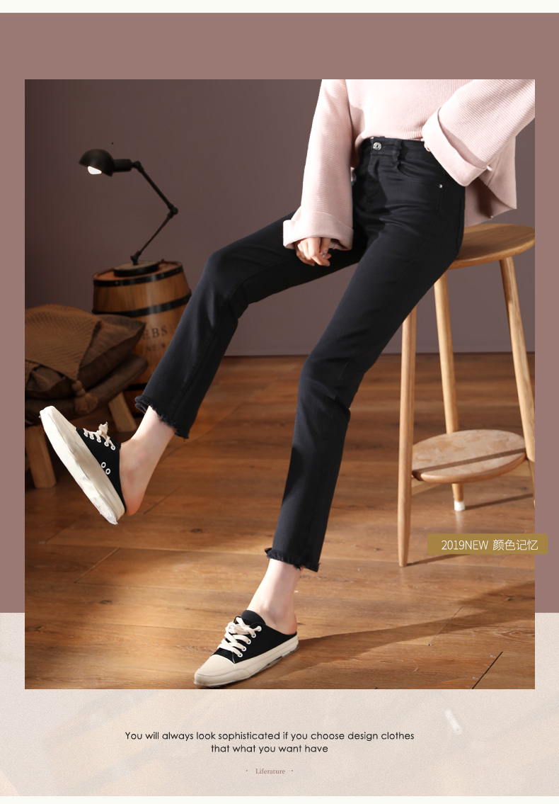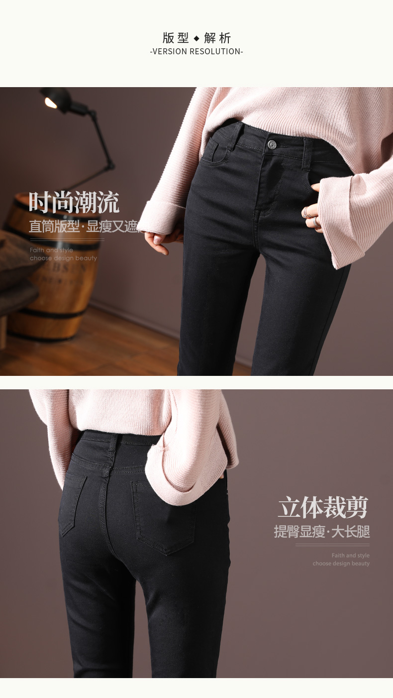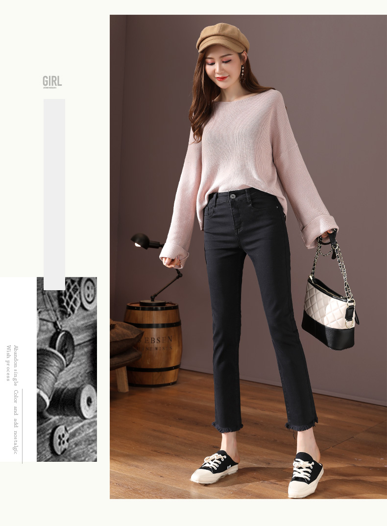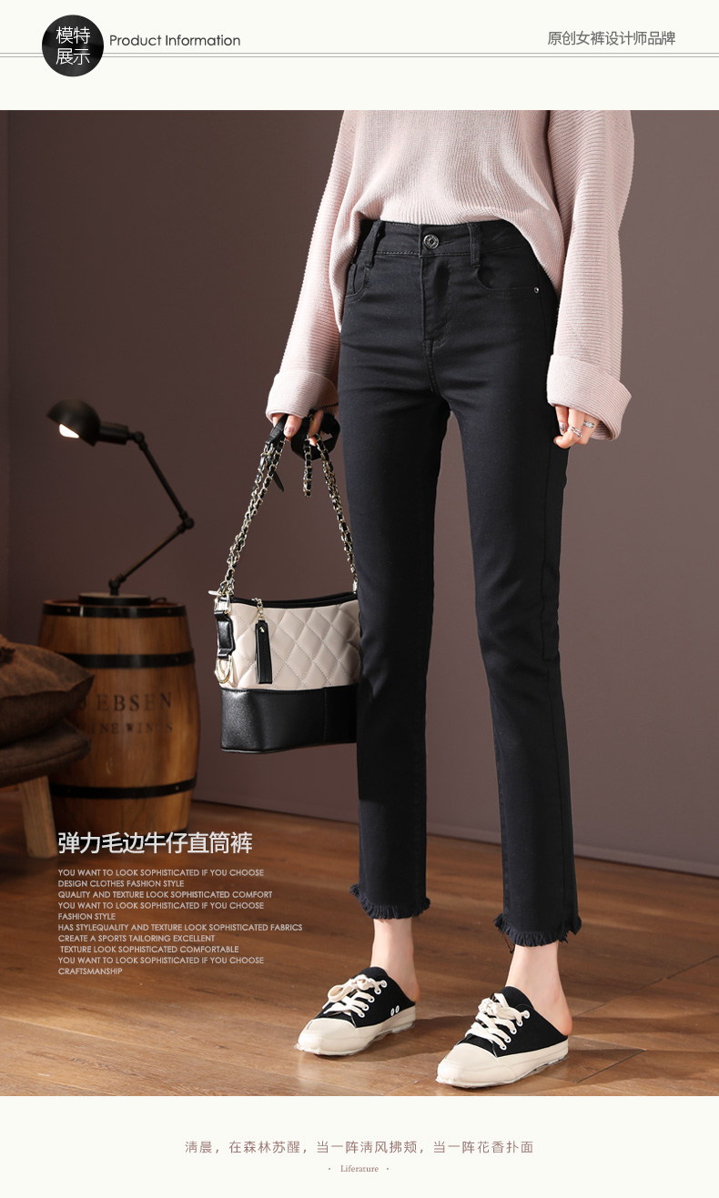 Smoky Gray Straight-Leg Jeans for Women, Autumn and Winter, Fleece-Lined, Cropped, Petite, High-Waisted, Vintage, Frayed Hem, Nine-Tenths Length Cigarette Pants
