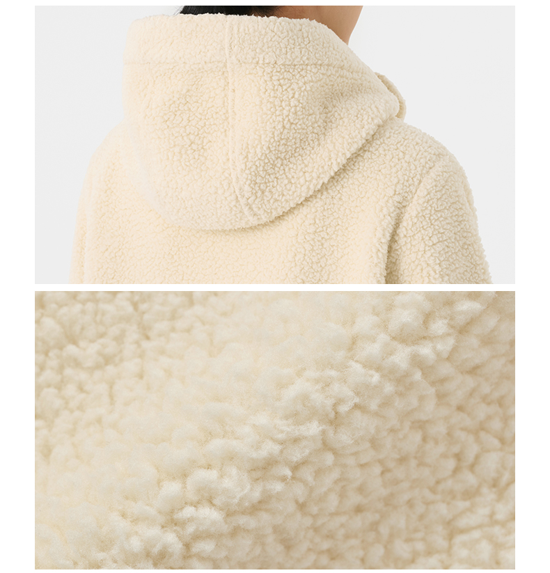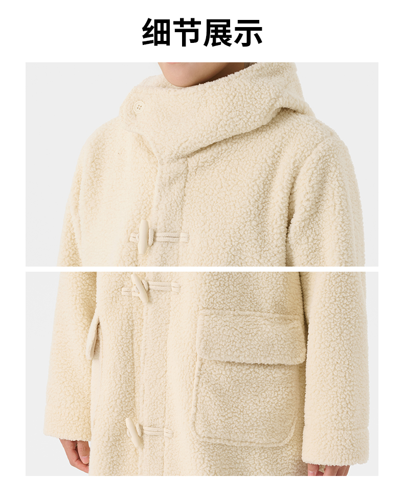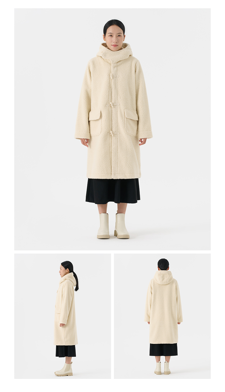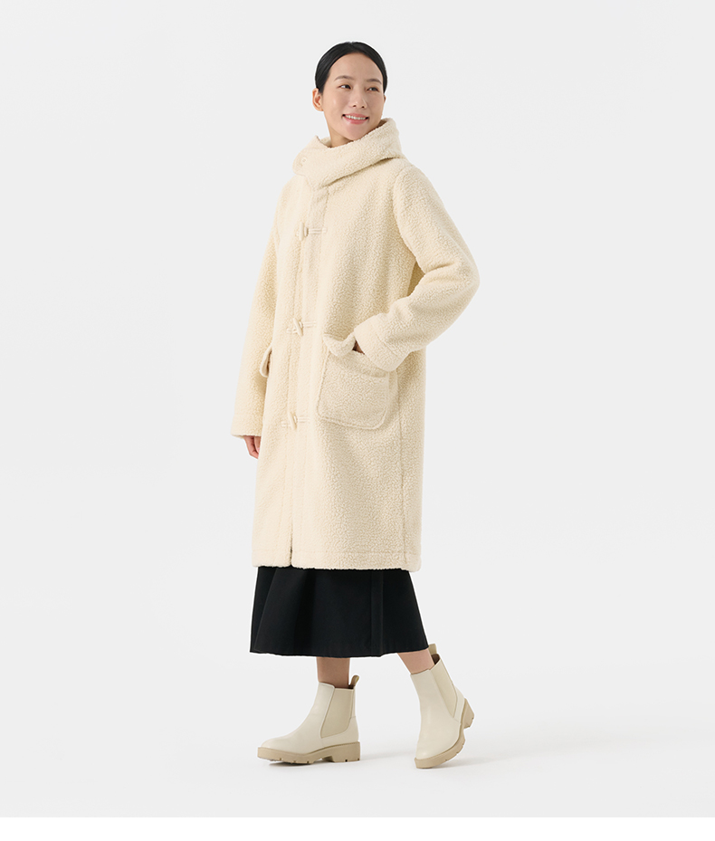 Muji Women's Washable Fleece Horn Button Coat Polar Fleece Mid Length Long Length Outwear Cotton Coat