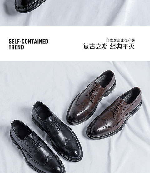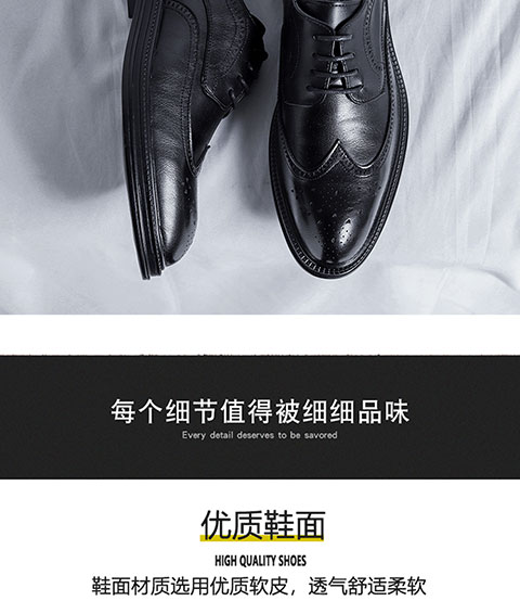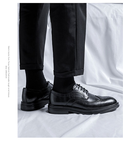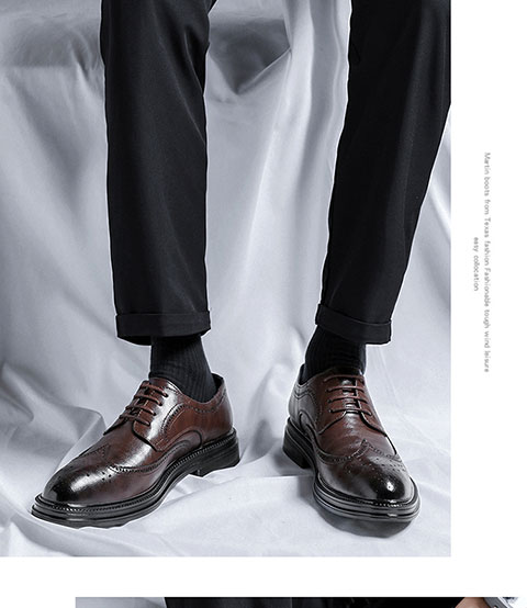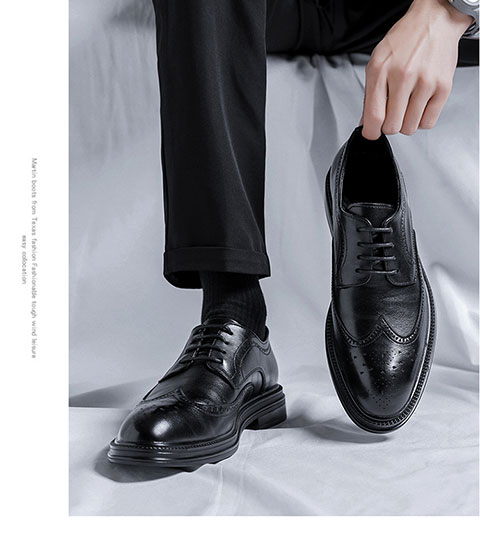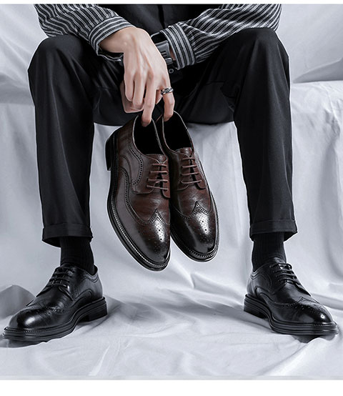 Brogue Leather Shoes for Men, Carved British Style, Genuine Leather, High-End Korean Style Suit Shoes, Height-Increasing Wedding Groom Shoes
