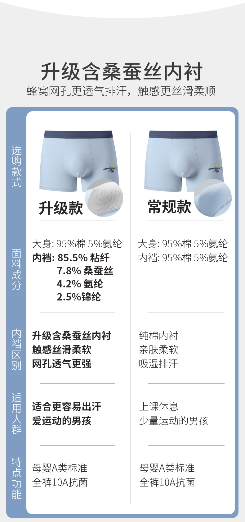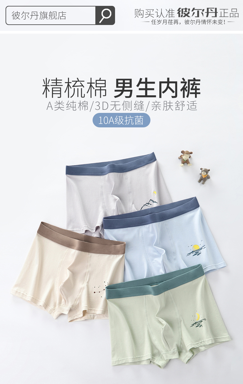 Underwear for Boys in the Developmental Period, Pure Cotton Boxer Briefs, Boxer Briefs for High School Students, Junior High School Students, and Older Children's Shorts