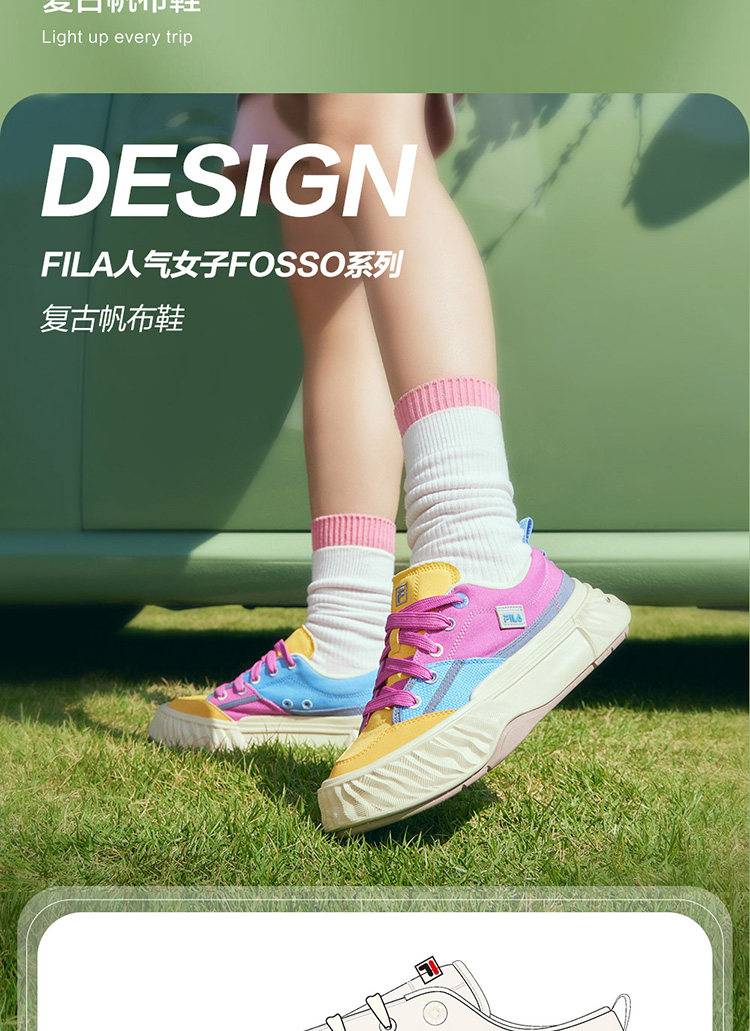 Fila Women's Retro Canvas Shoes Spring and Summer Trendy Thick-Soled Lightweight Comfortable Fila Rock Shoes Casual Shoes