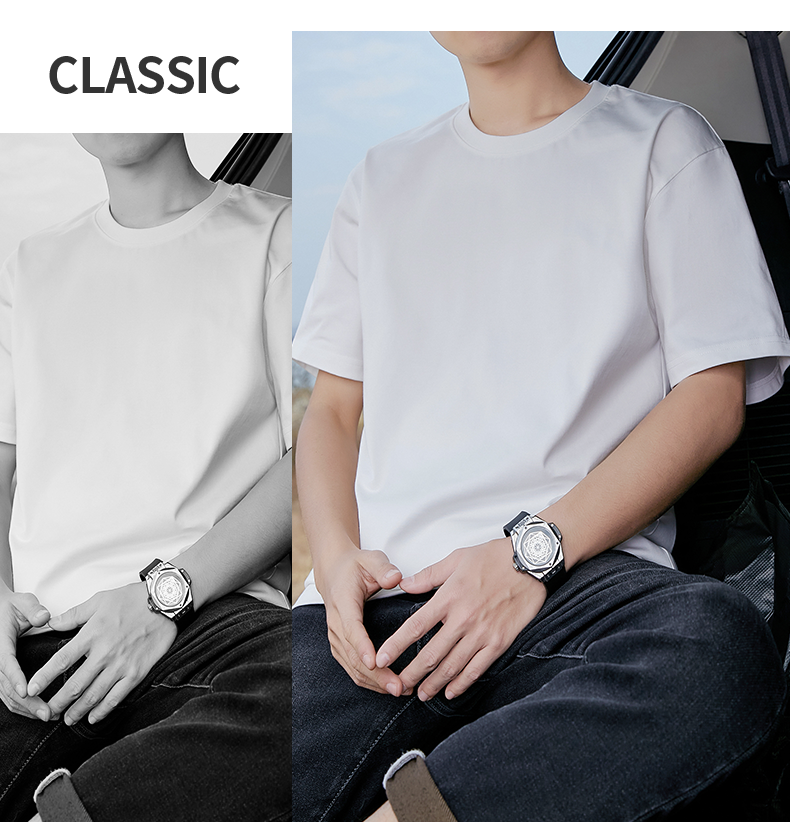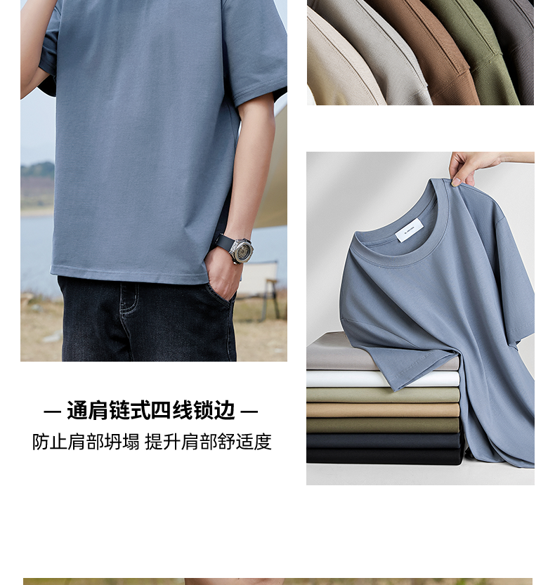 Pure Cotton T-Shirt for Men, Short-Sleeved, 240g Heavy Combed Cotton, Half-Sleeve, Black, Solid Color, All-Cotton, Summer, Loose Fit, Large Size T-Shirt