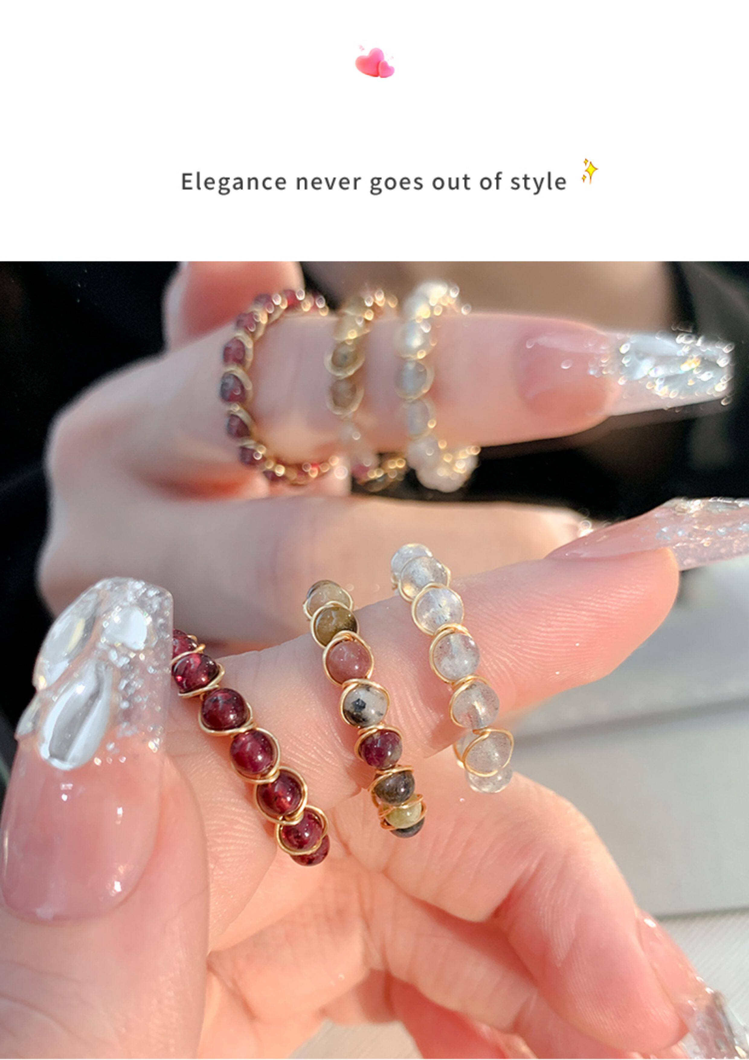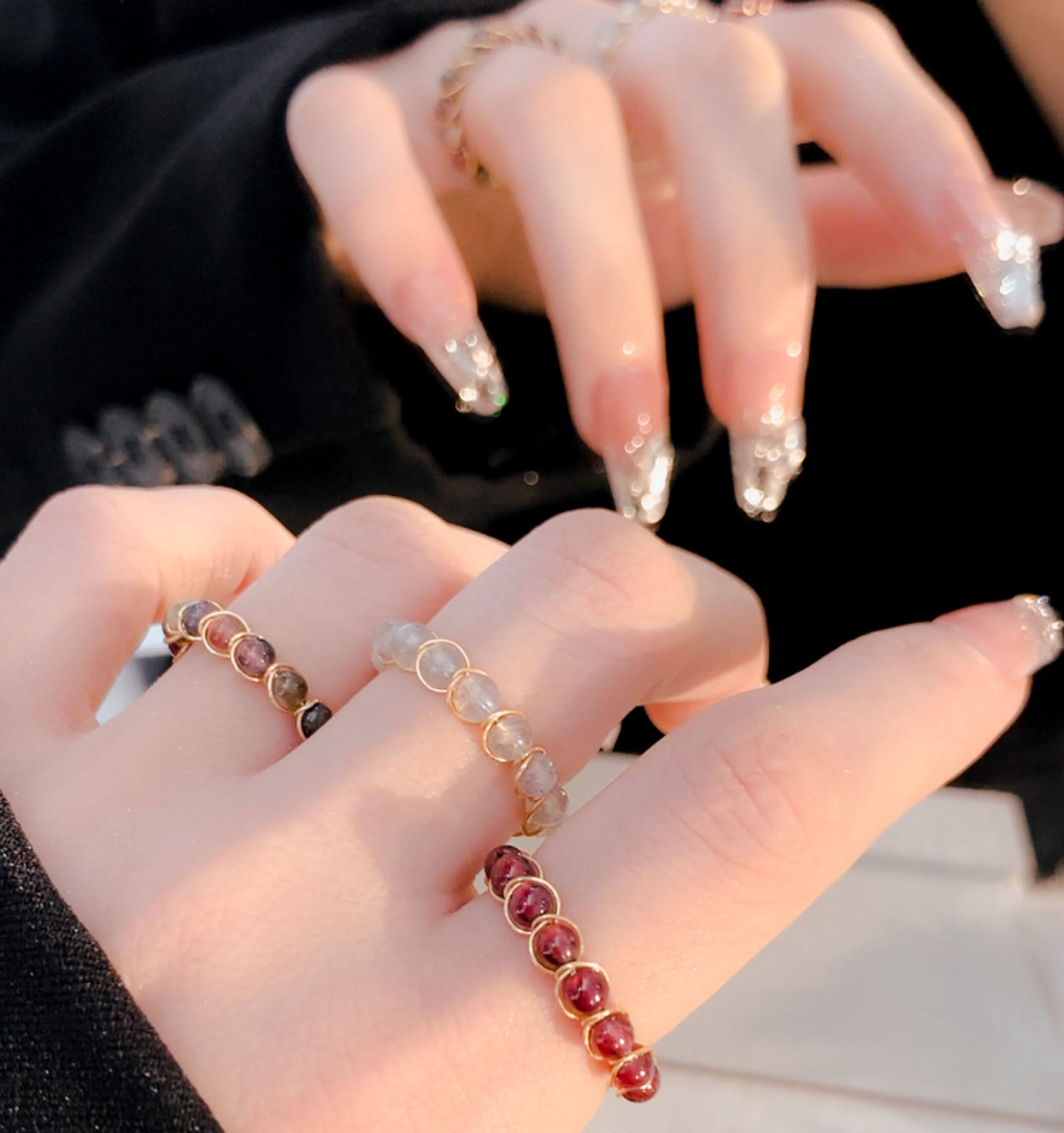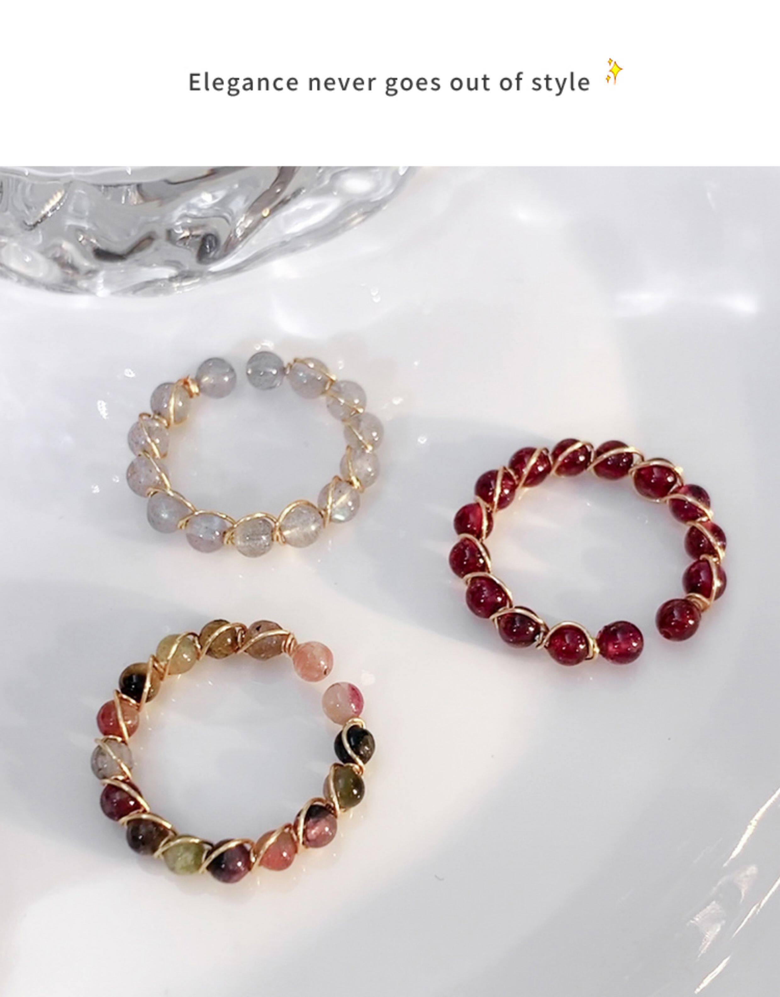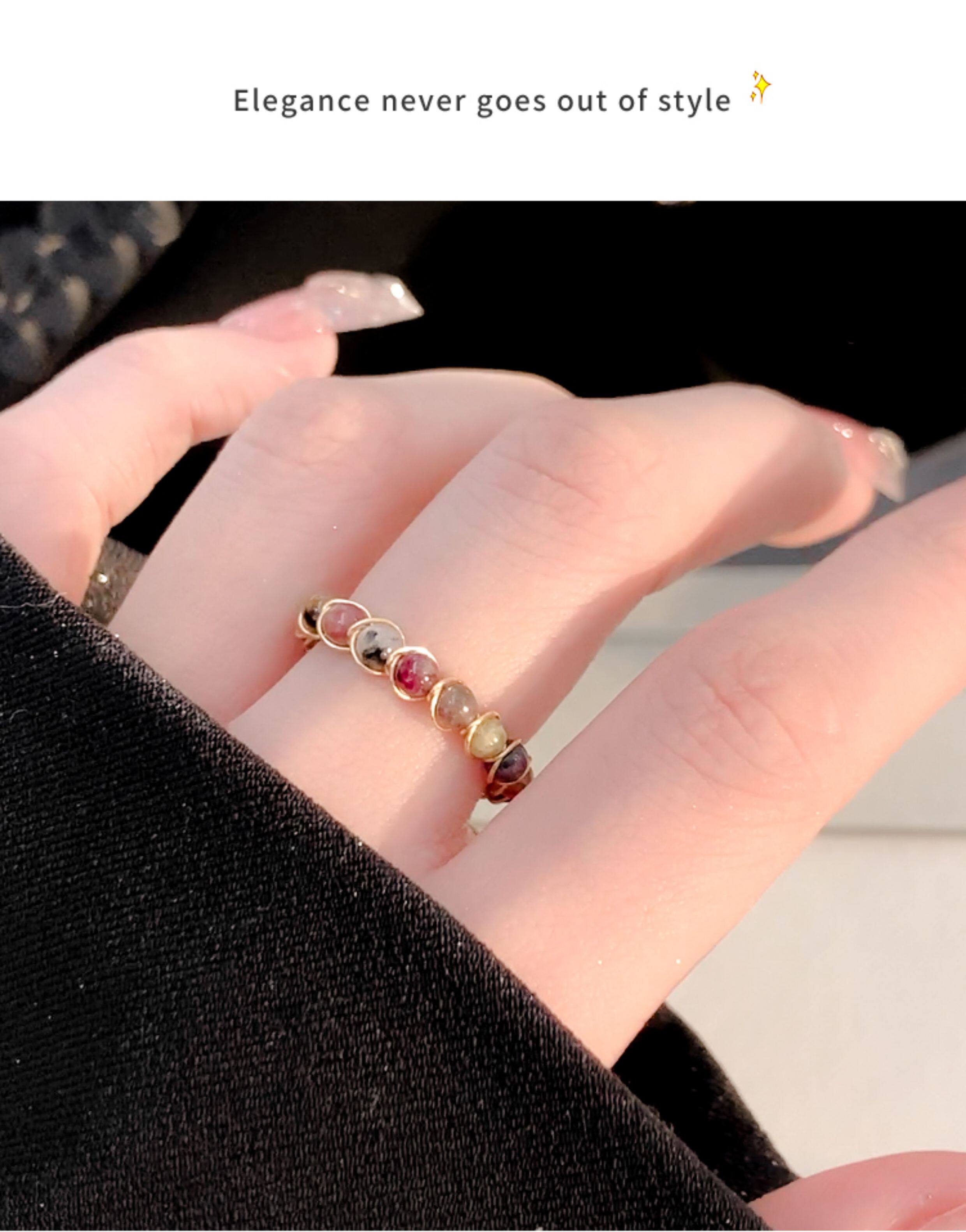 Natural Stone Tourmaline Ring for Women, Niche Design, High-End Feel, Plain Band Ring, Vintage Tail Ring, Open Adjustable Index Finger Ring for Women
