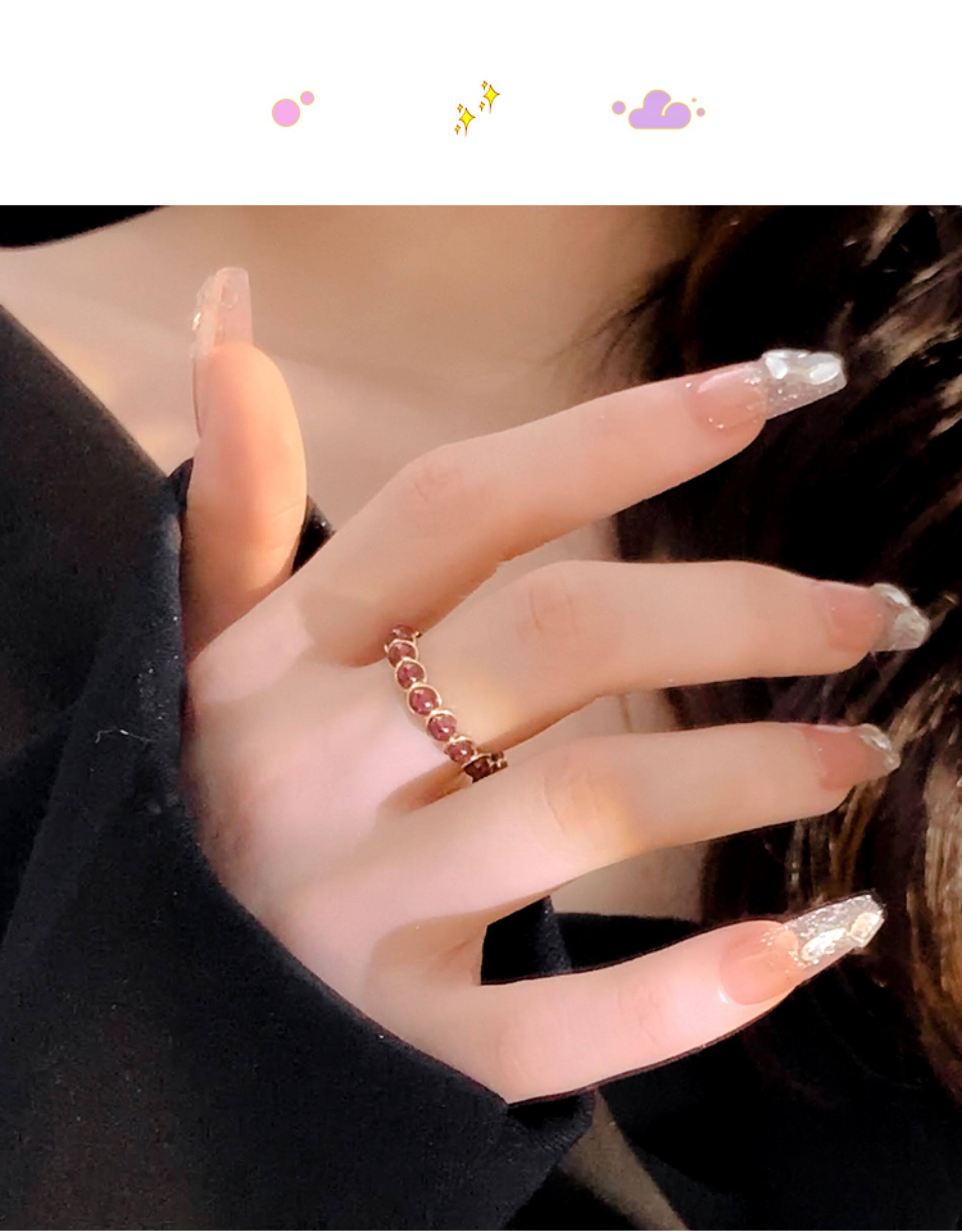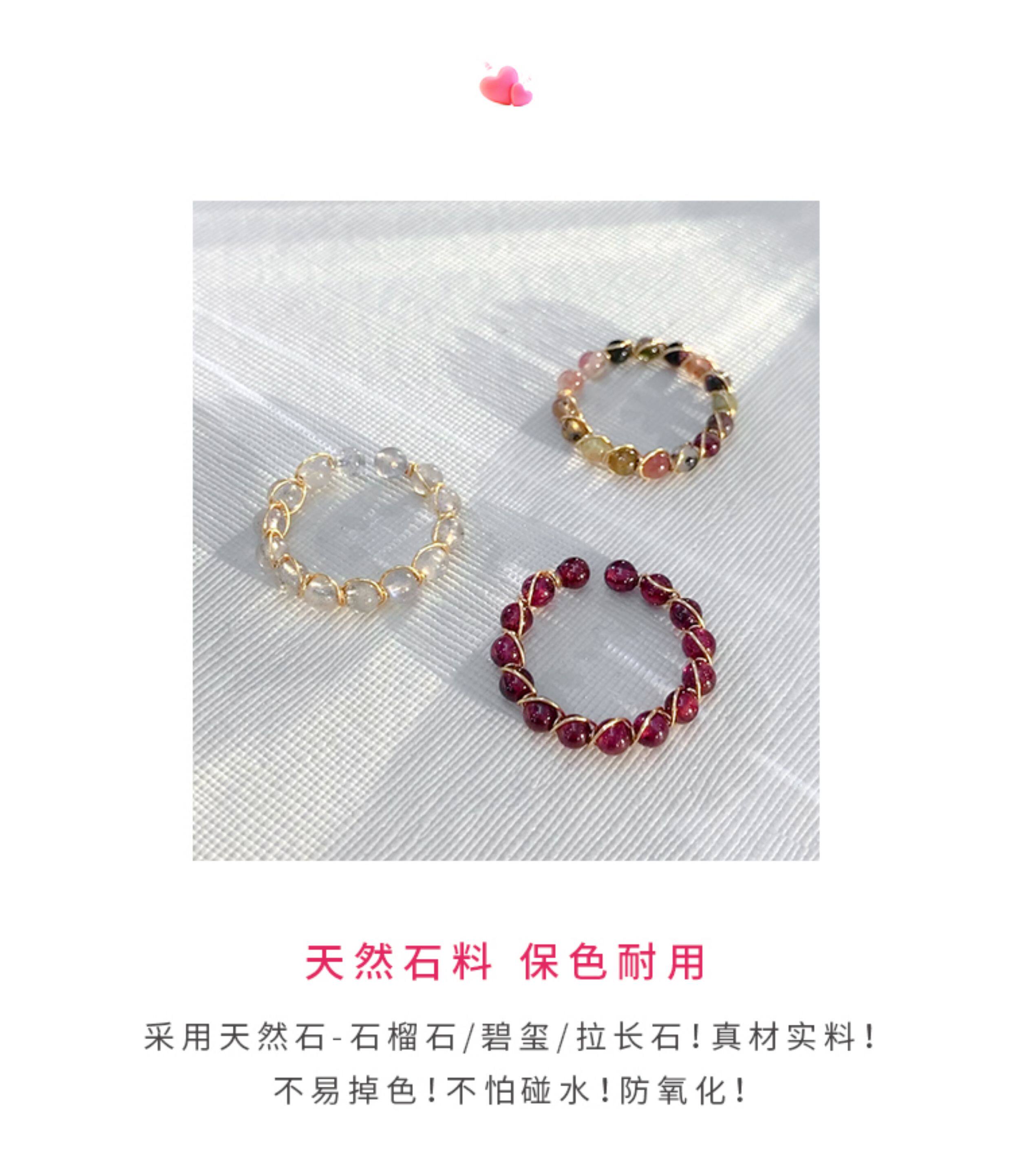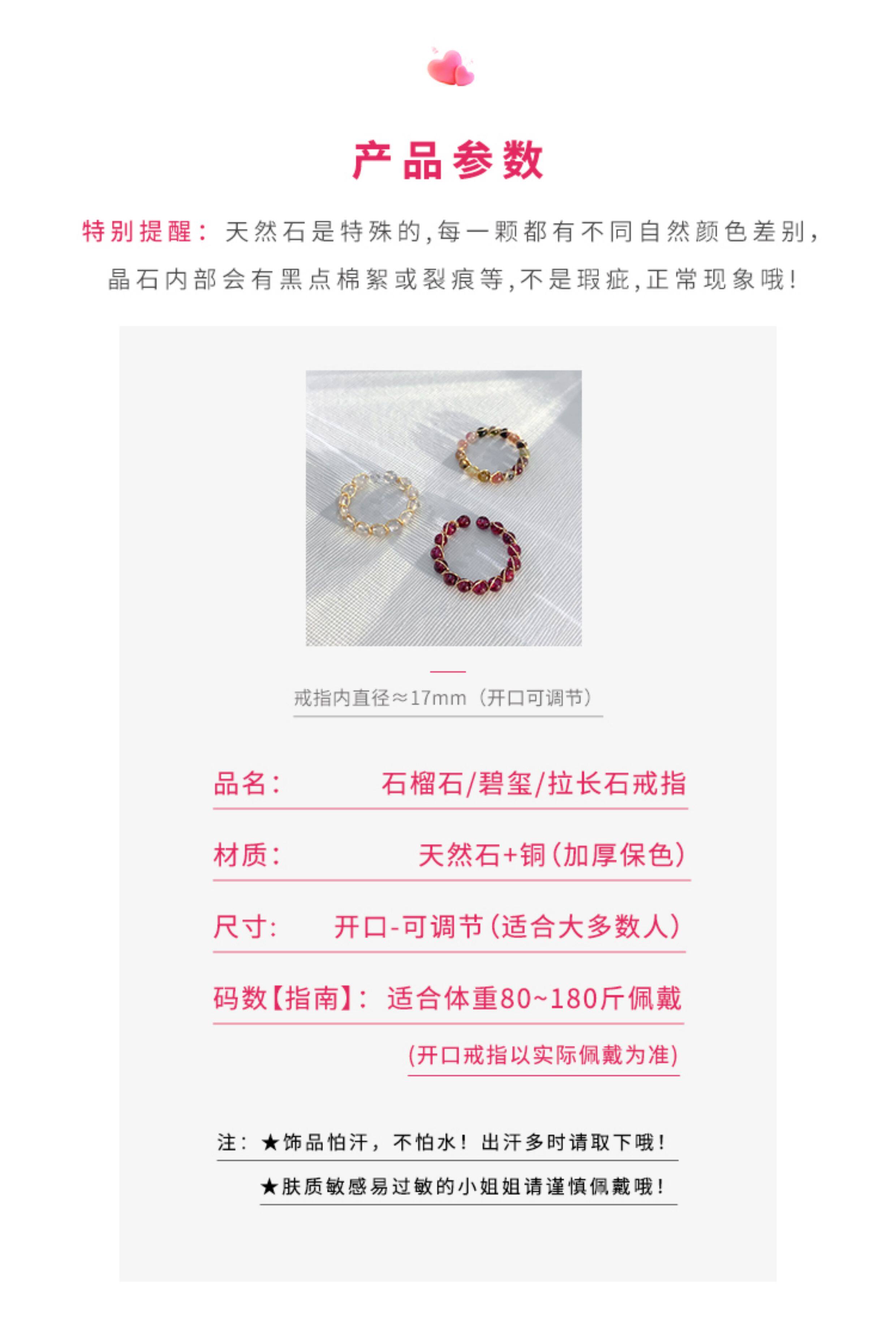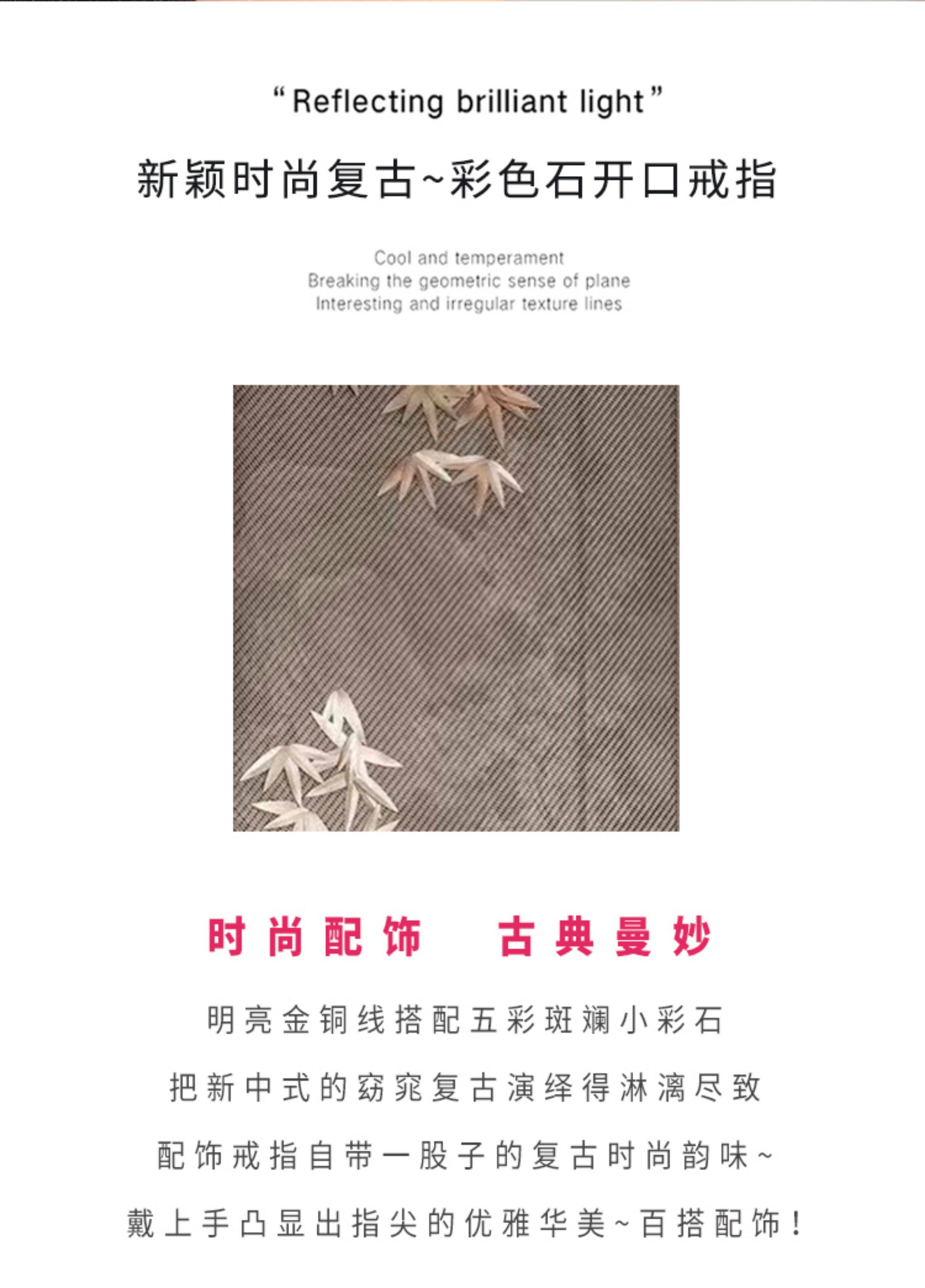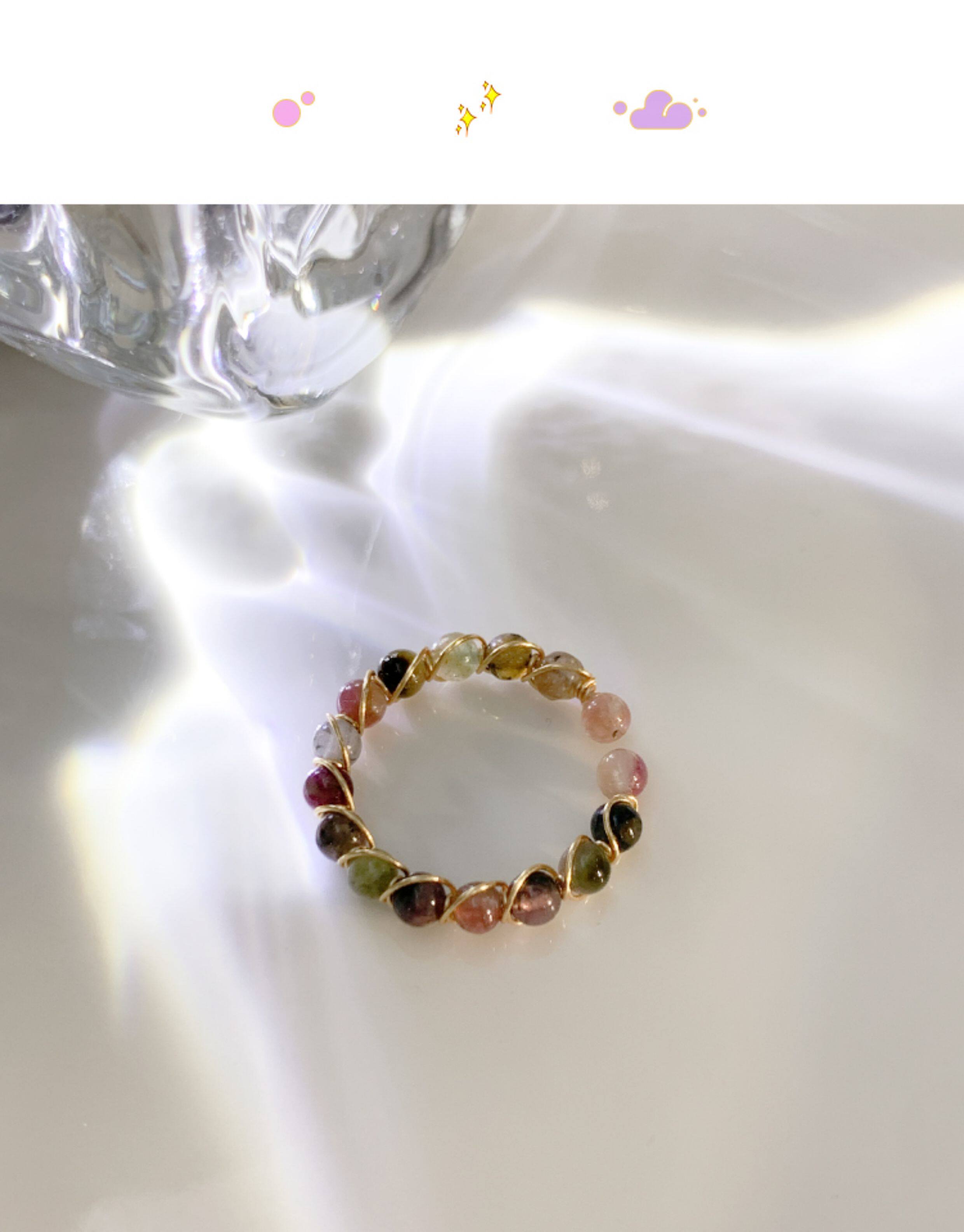 Natural Stone Tourmaline Ring for Women, Niche Design, High-End Feel, Plain Band Ring, Vintage Tail Ring, Open Adjustable Index Finger Ring for Women