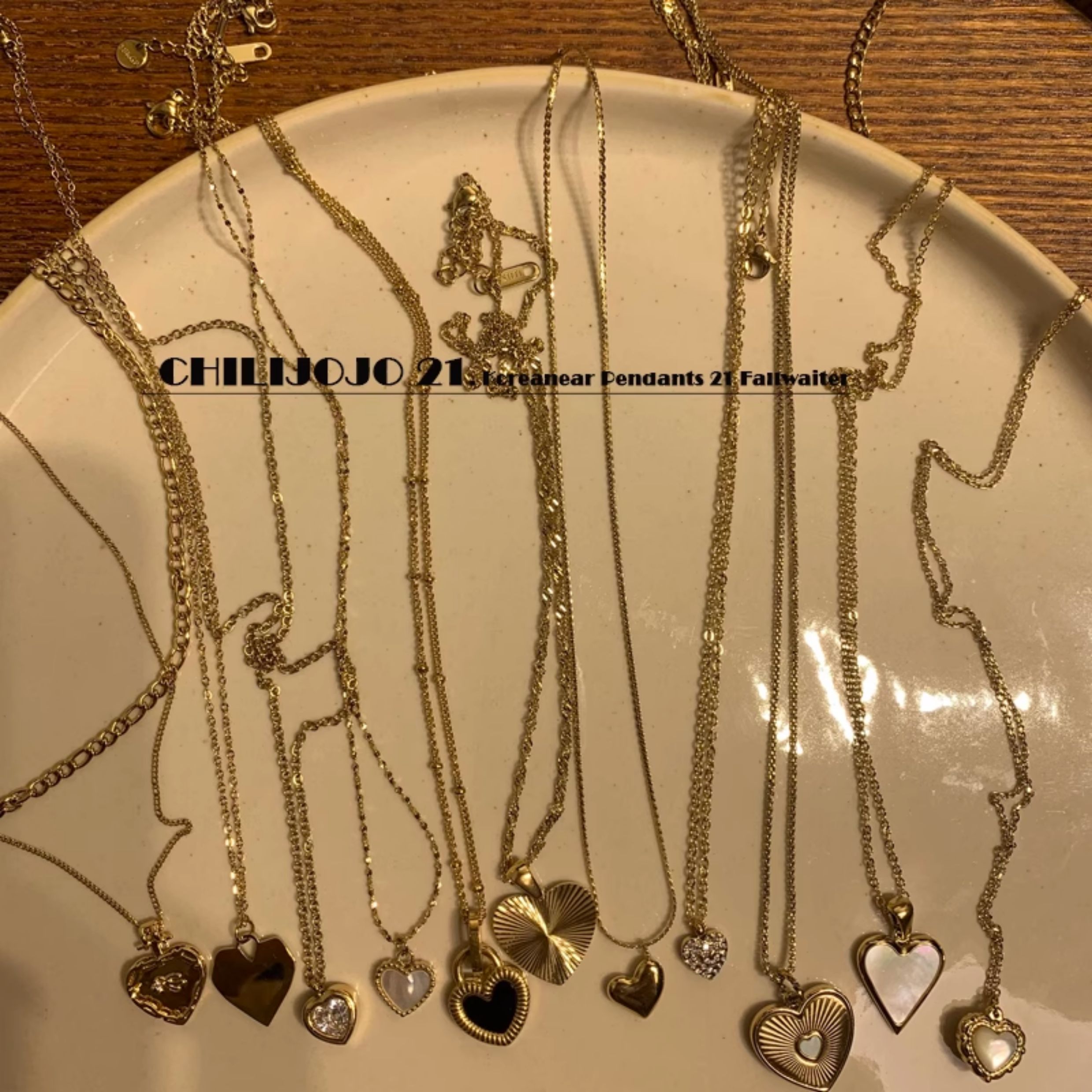 Chilijojo/2/17/ Collected All the Heart Necklaces! Titanium Steel Does Not Fade, Versatile for Everyday Basics