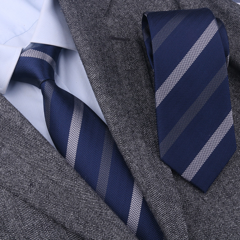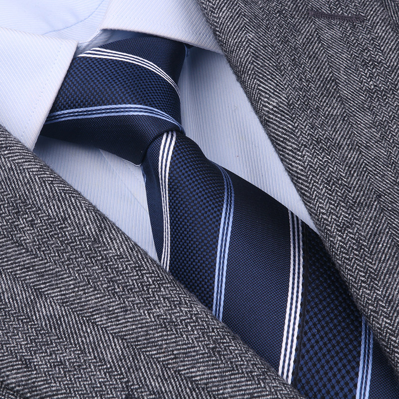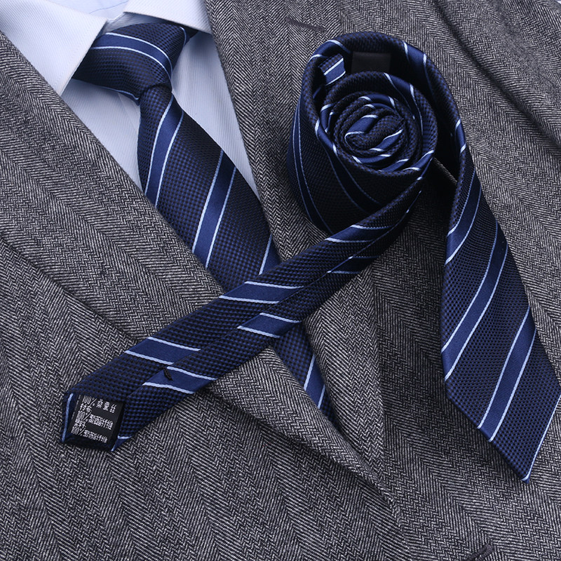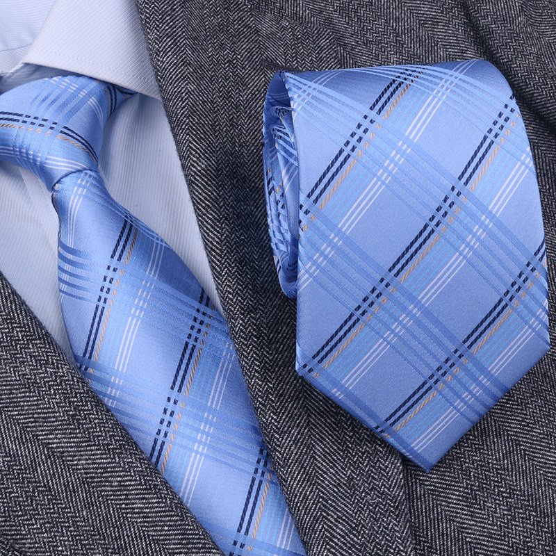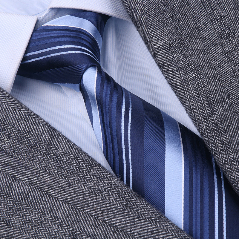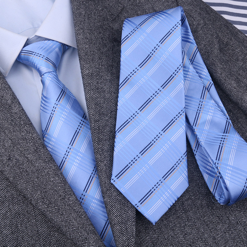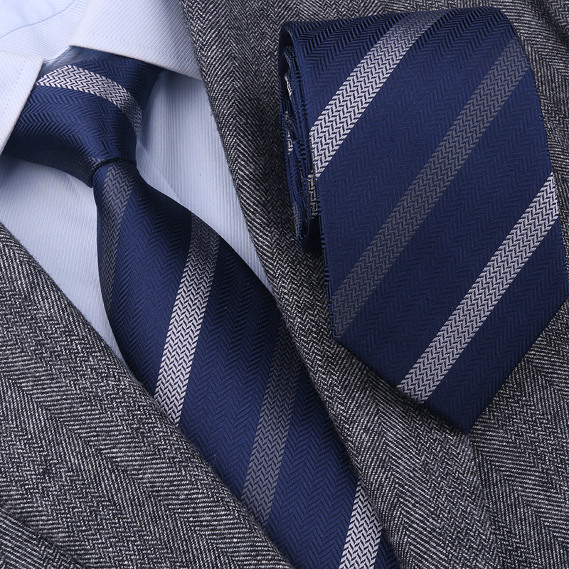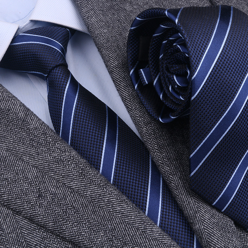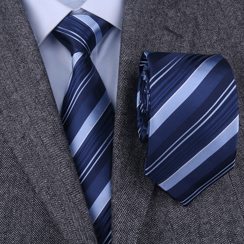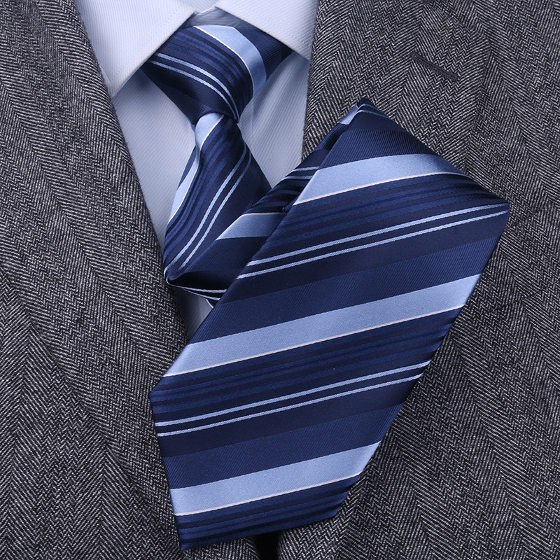 Mulberry Silk Tie for Men, Formal Business Zipper Tie, Wedding Blue Striped 8cm High-End Light Luxury Gift Box Set