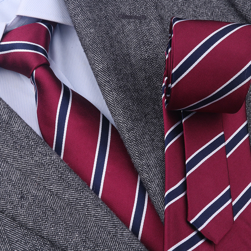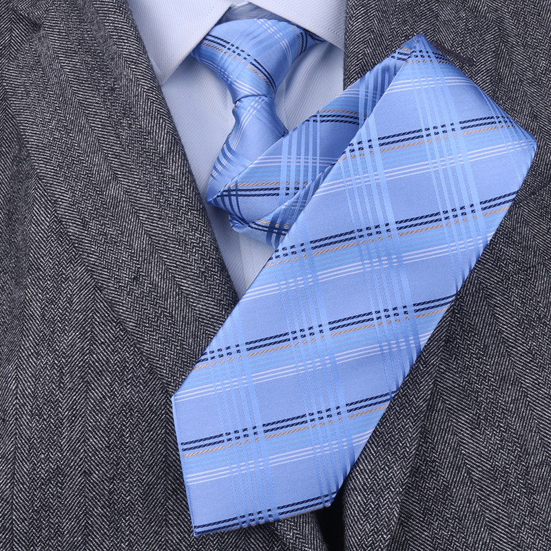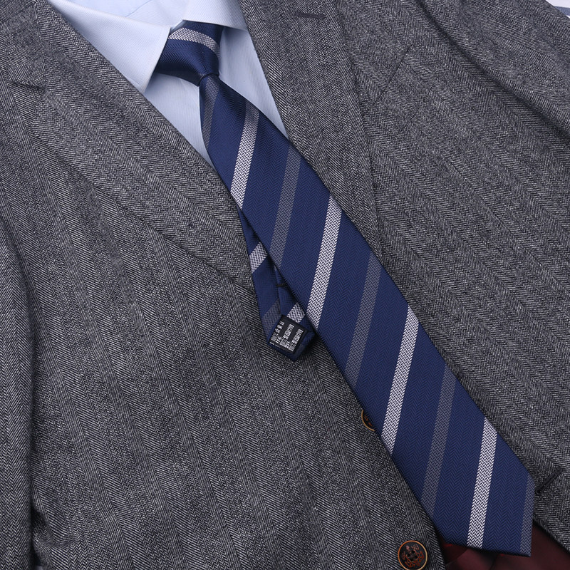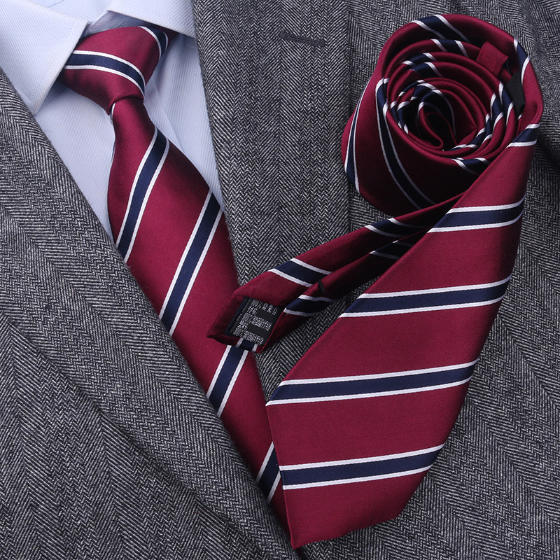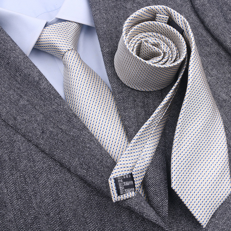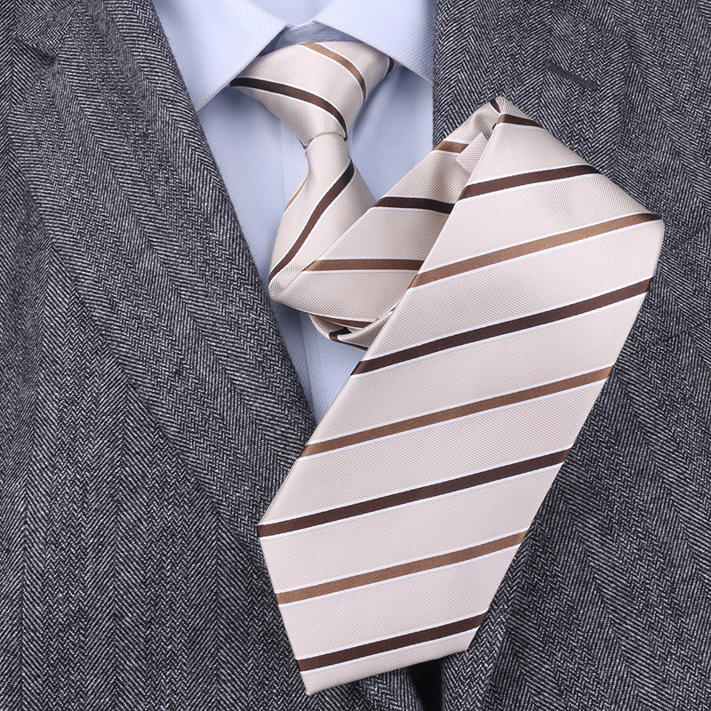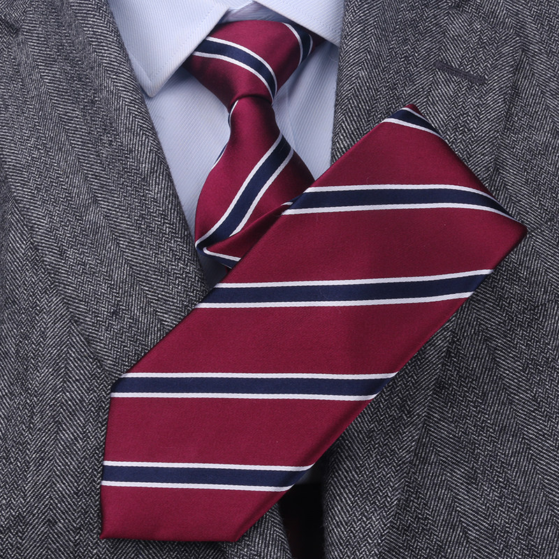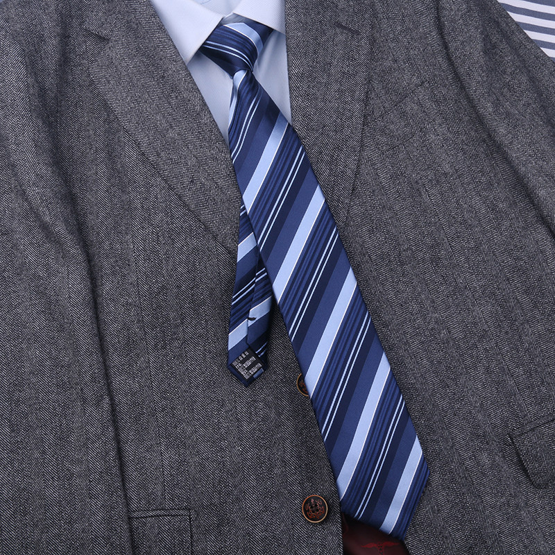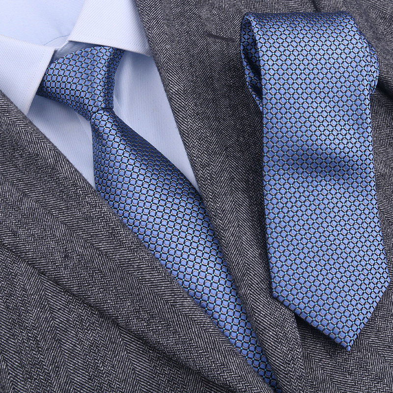 Mulberry Silk Tie for Men, Formal Business Zipper Tie, Wedding Blue Striped 8cm High-End Light Luxury Gift Box Set