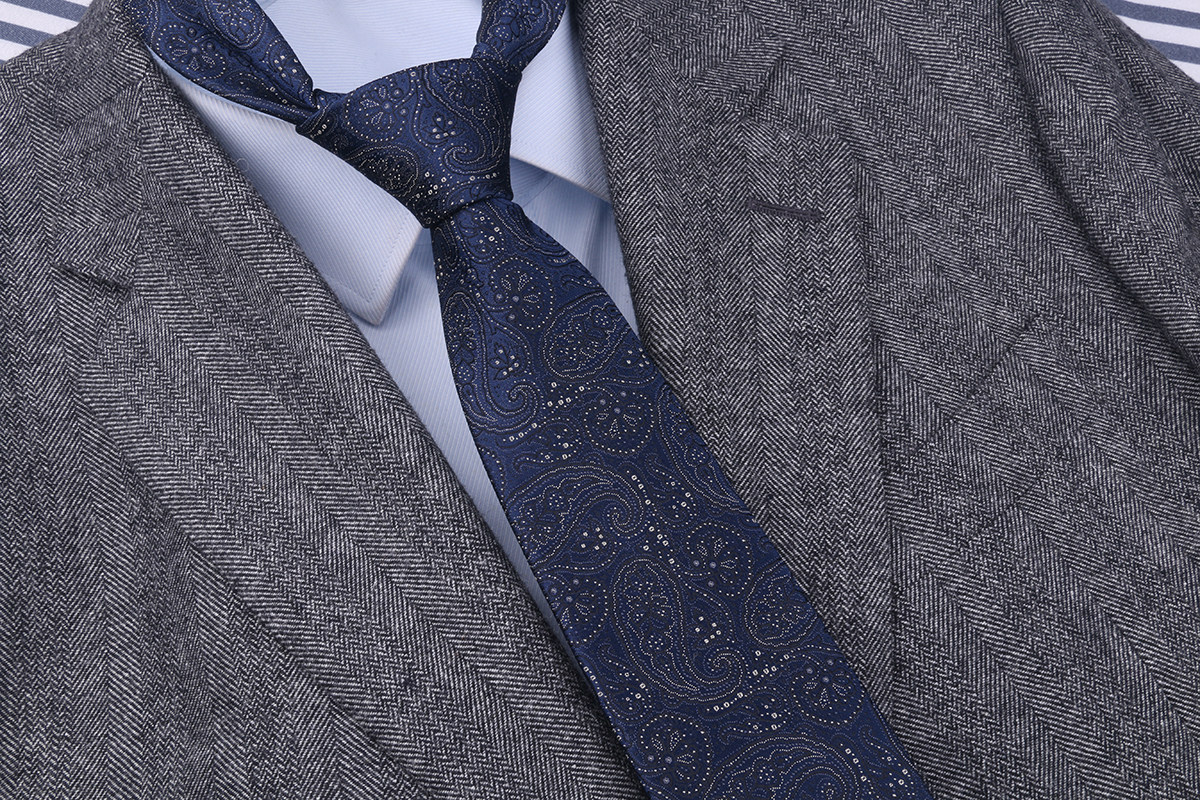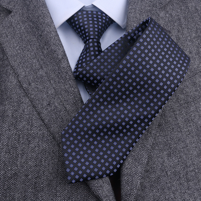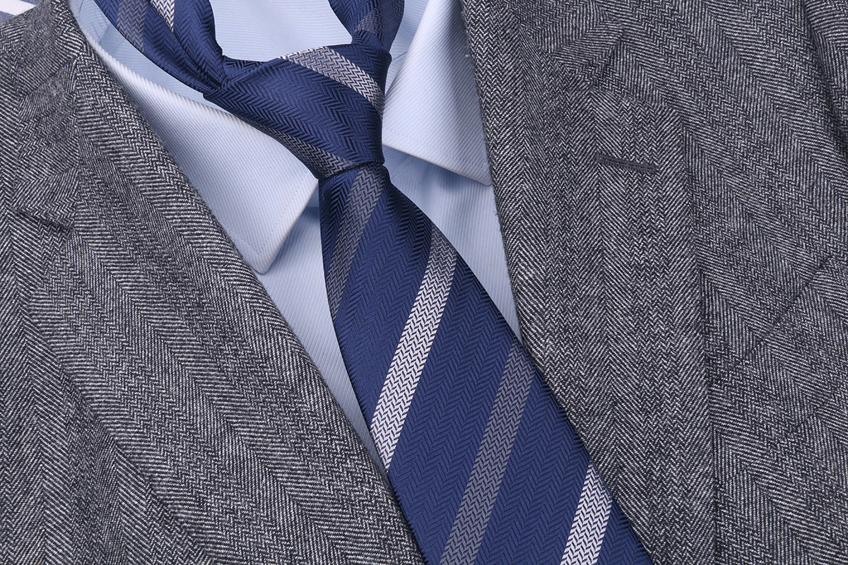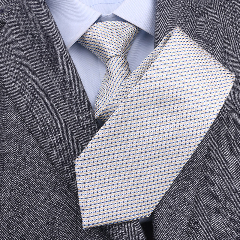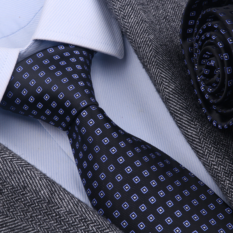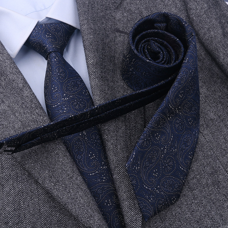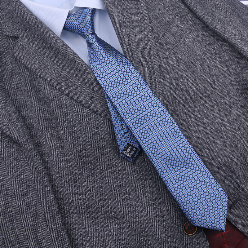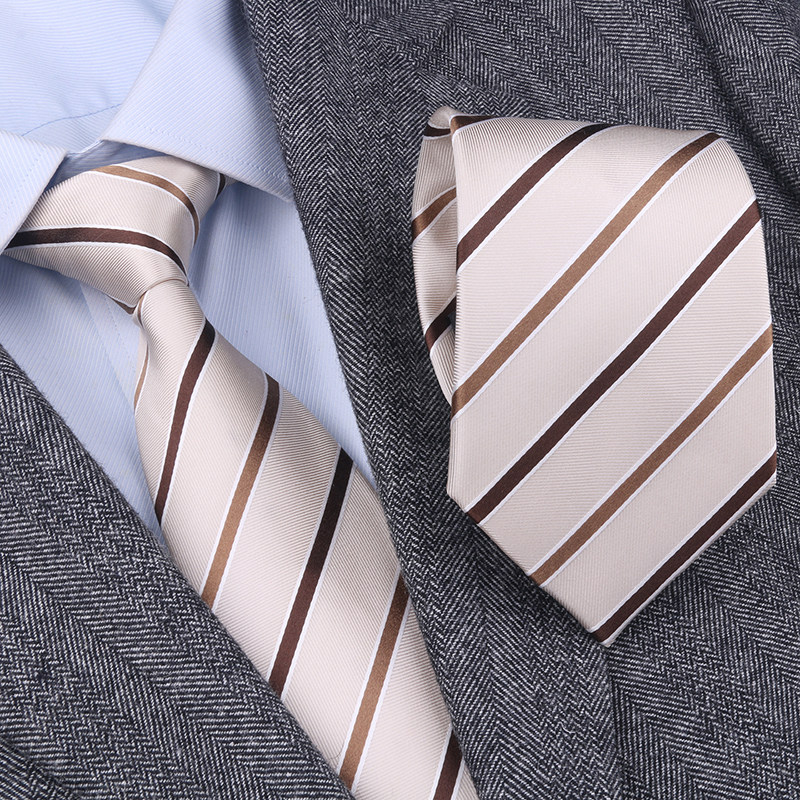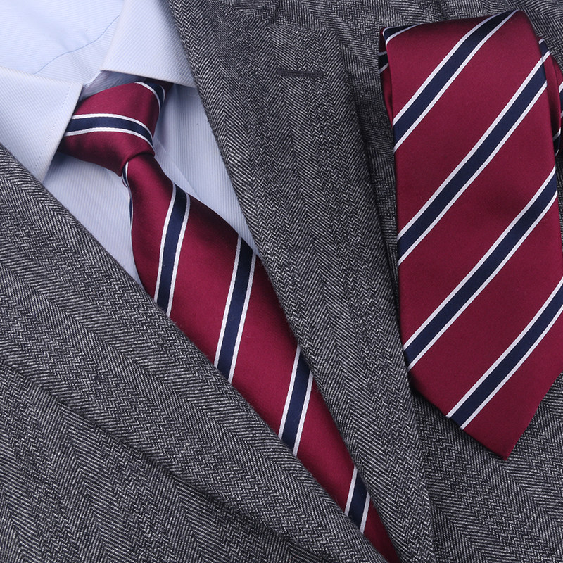 Mulberry Silk Tie for Men, Formal Business Zipper Tie, Wedding Blue Striped 8cm High-End Light Luxury Gift Box Set