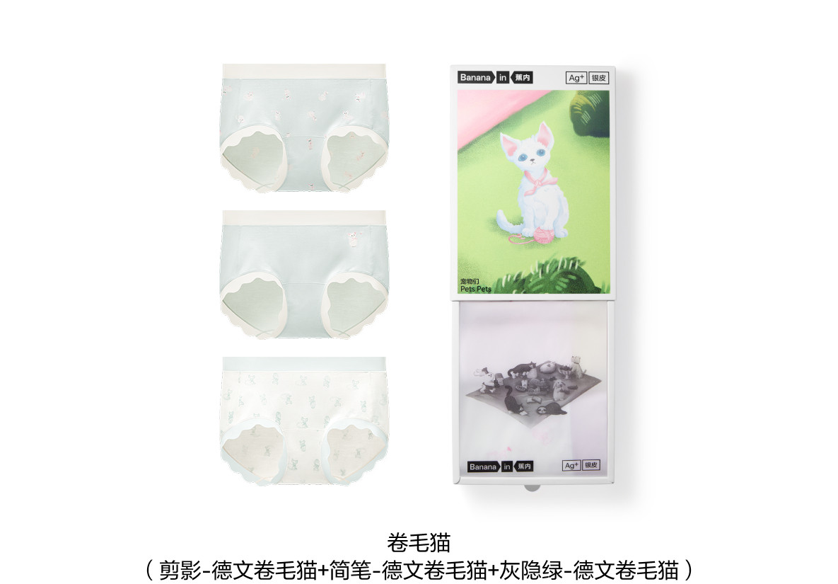 3 Pieces | Bananain Silver Leather 301C Women's Underwear Cute Print Modal Girls' Pure Cotton Breathable Crotch Briefs