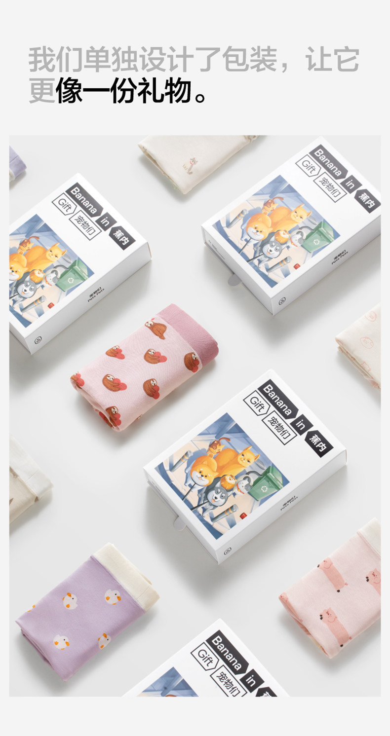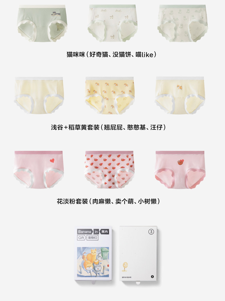3 Pieces | Jiao Nei Silver Skin 301Color Cute Printed Women's Underwear Modal Girls' Pure Cotton Breathable Crotch Briefs