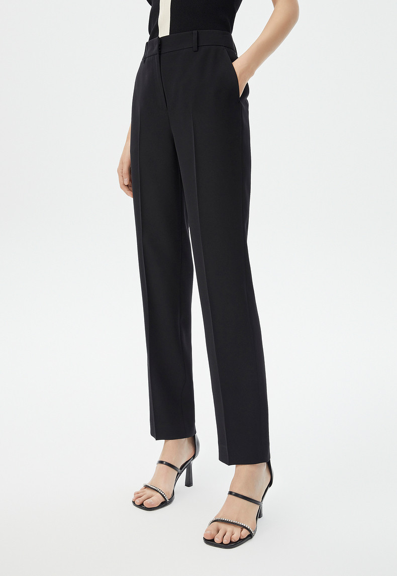 Langzi Black Elegant High-Waisted Straight-Leg Slim-Fit Professional Suit Pants, Slimming Summer New Work Formal Pants for Women