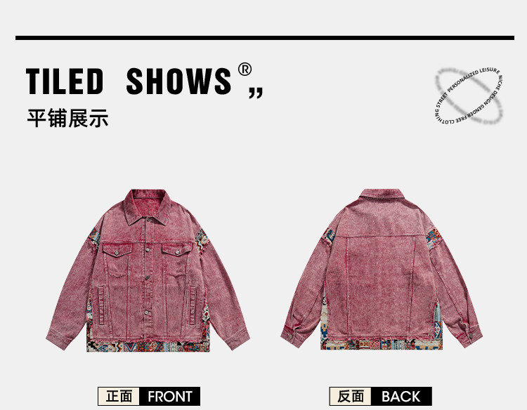 Swinging Pink Cheeks Tagd Designer Brand National Trend Retro Ethnic Style Patchwork Niche Denim Jacket for Men and Women