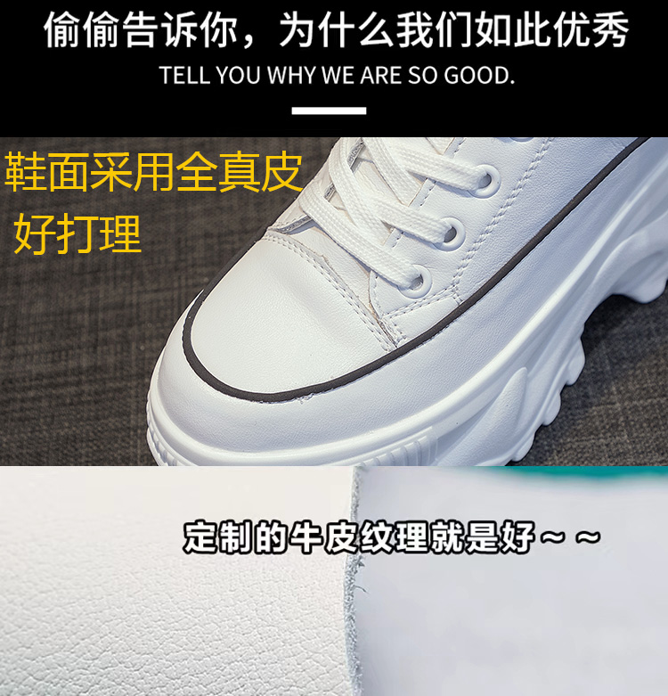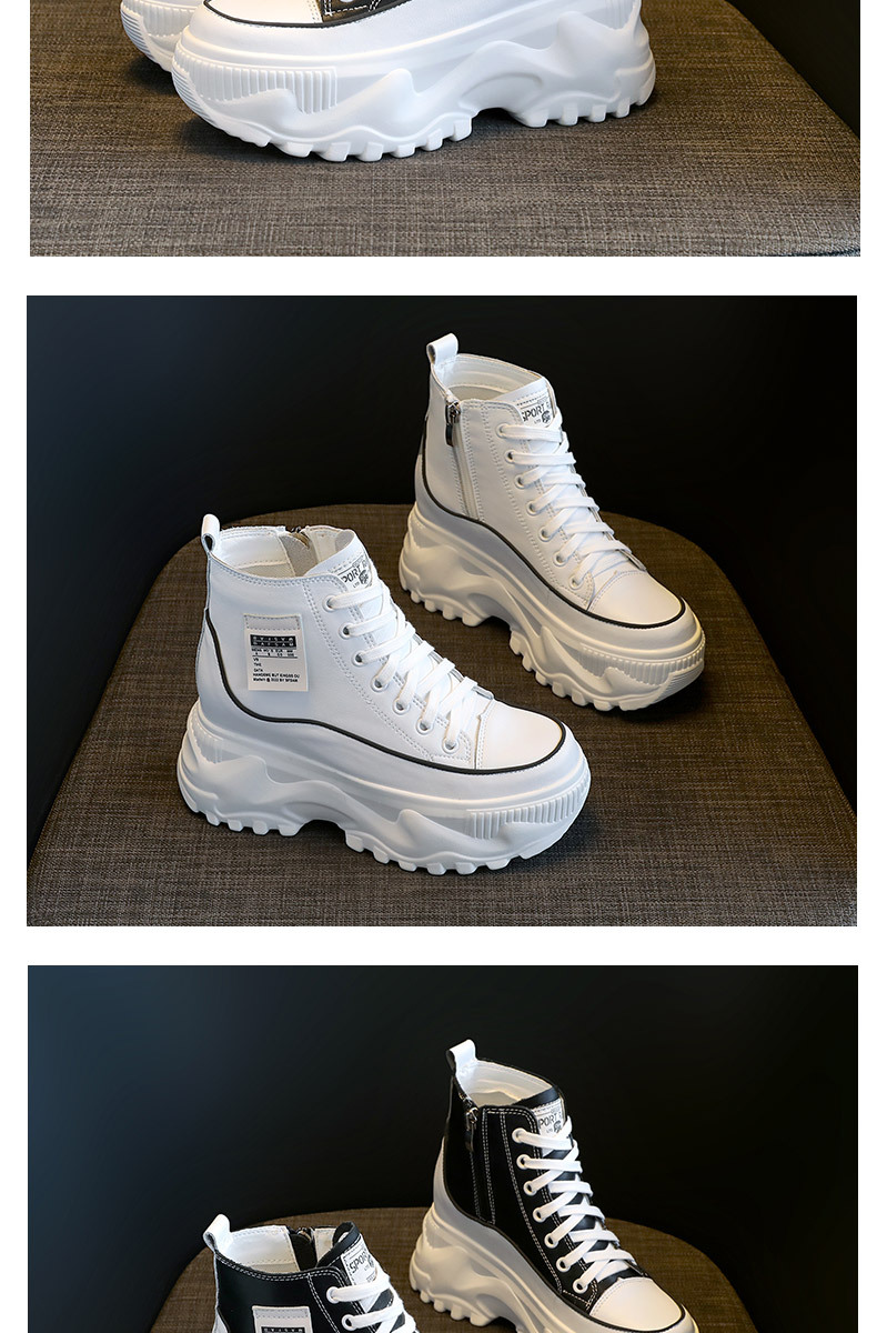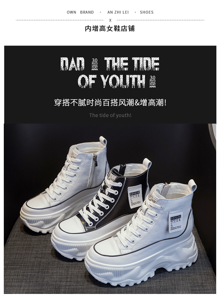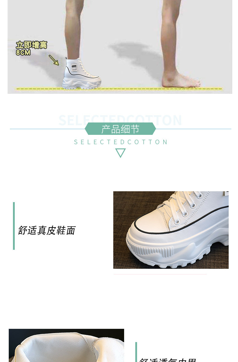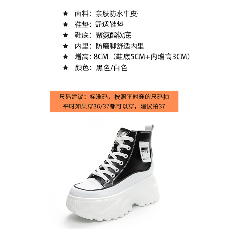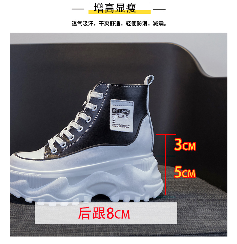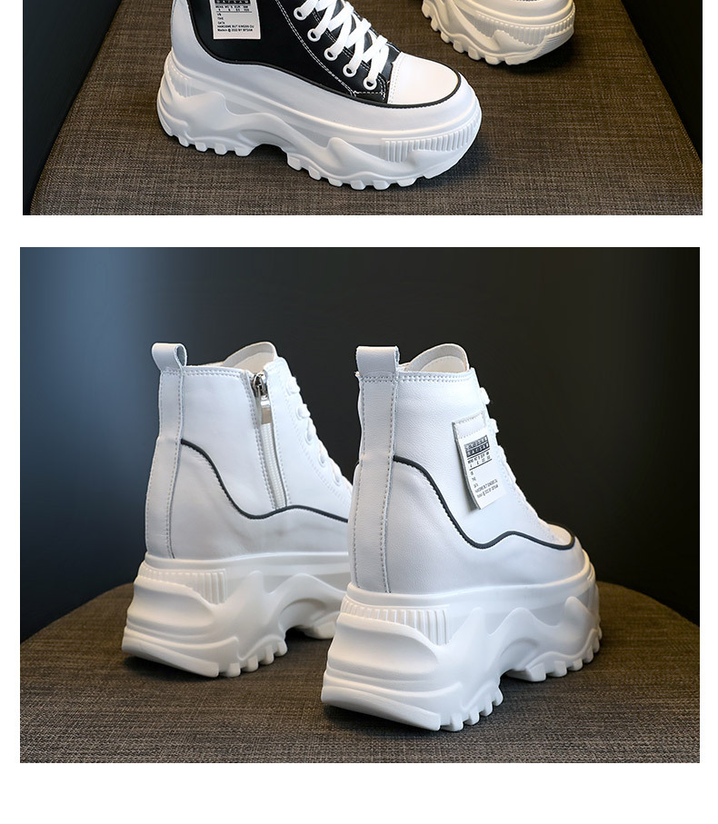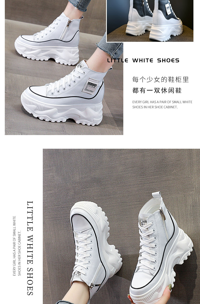 High-Top Shoes with Thick Velvet Lining, 8cm Thick Sole, Genuine Leather White Sneakers for Women, 2025 Autumn and Winter New Style, Height-Increasing Dad Casual Shoes