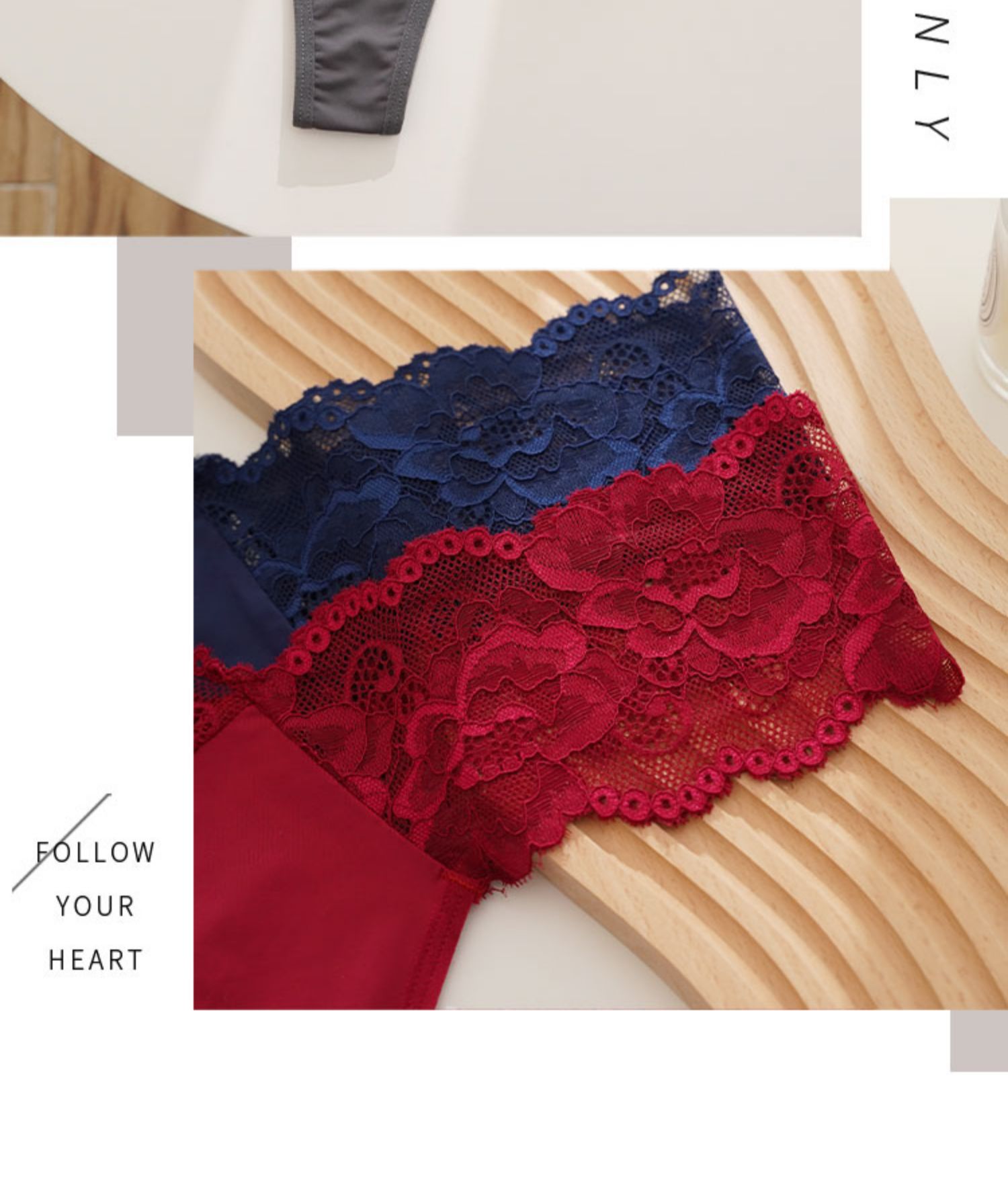 Plus-Size European and American Style Sexy Lace Seamless Ice Silk Comfortable One-Piece Invisible Low-Waist High-Elastic Sports Peach Butt T-Pants