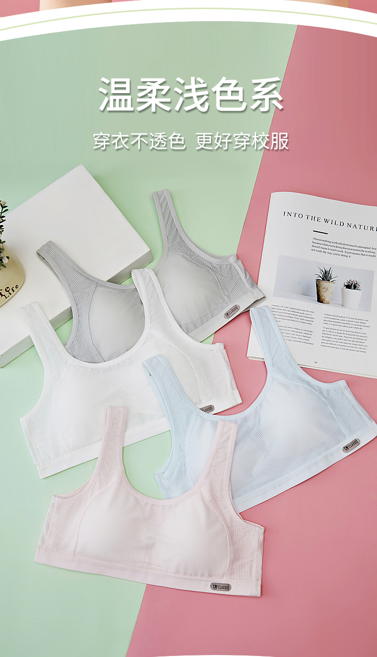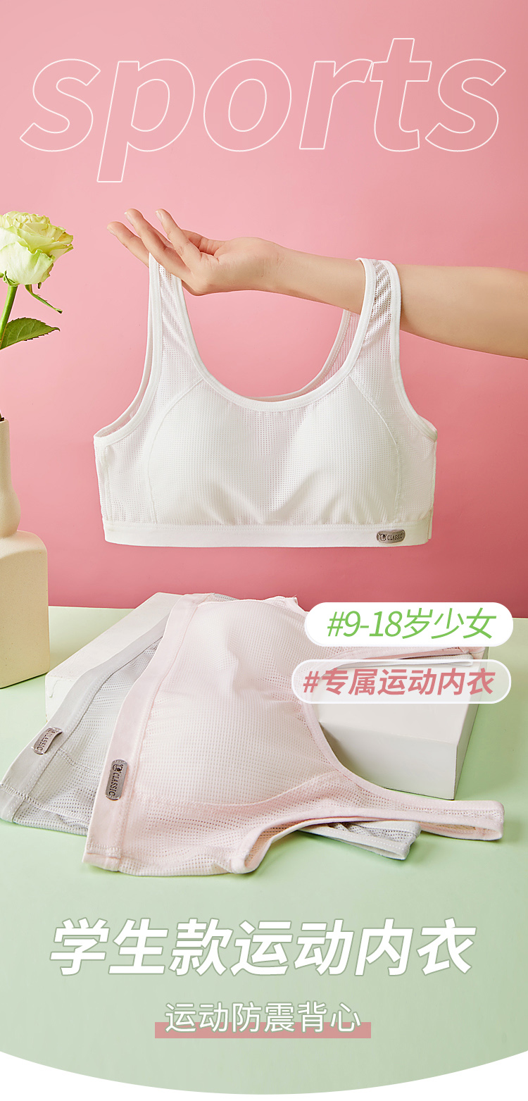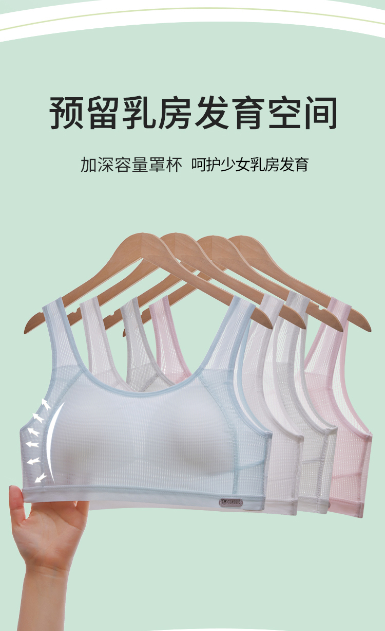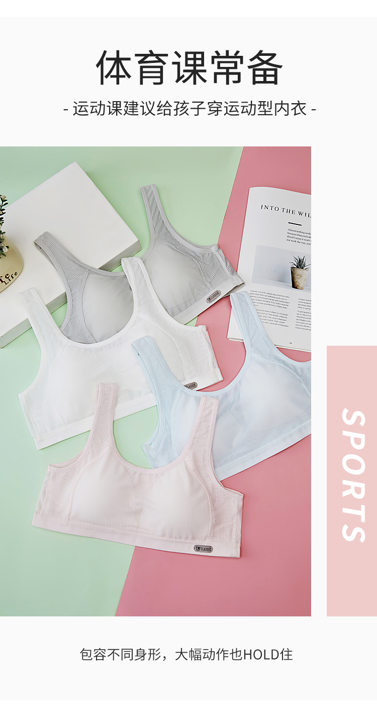 Summer Thin Girls' Underwear, Sports Vest for Middle and High School Students, Development Period, Older Children, Puberty Stage Two and Three Bra