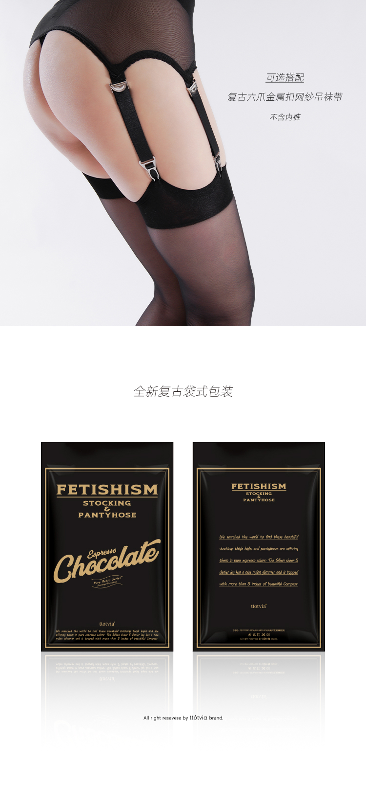 Ttotvias913 Retro Sexy Garter Stockings with Gold Trim, Chocolate European and American Style Garter Belt Long Stockings
