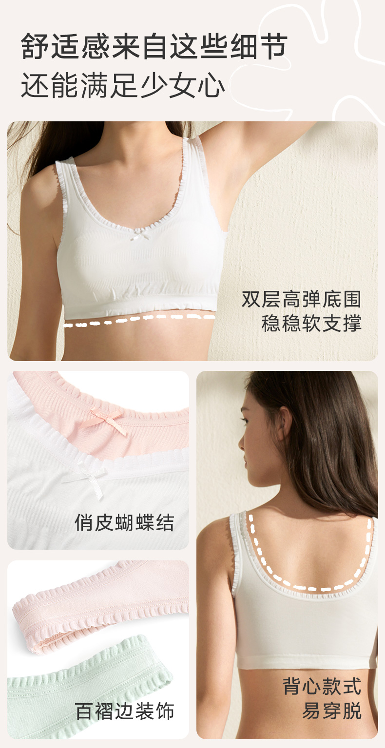Stage Two | Maniform Student Vest-Style Underwear for Girls in Adolescence, Comfortable Anti-Bump Bra for Junior High School Students