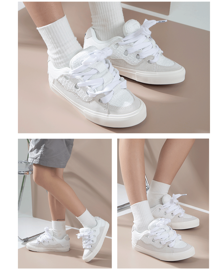 Ollieskate Bread Shoes Swan White Cream Suede Autumn and Winter Bake Unisex National Trend Skateboard Shoes