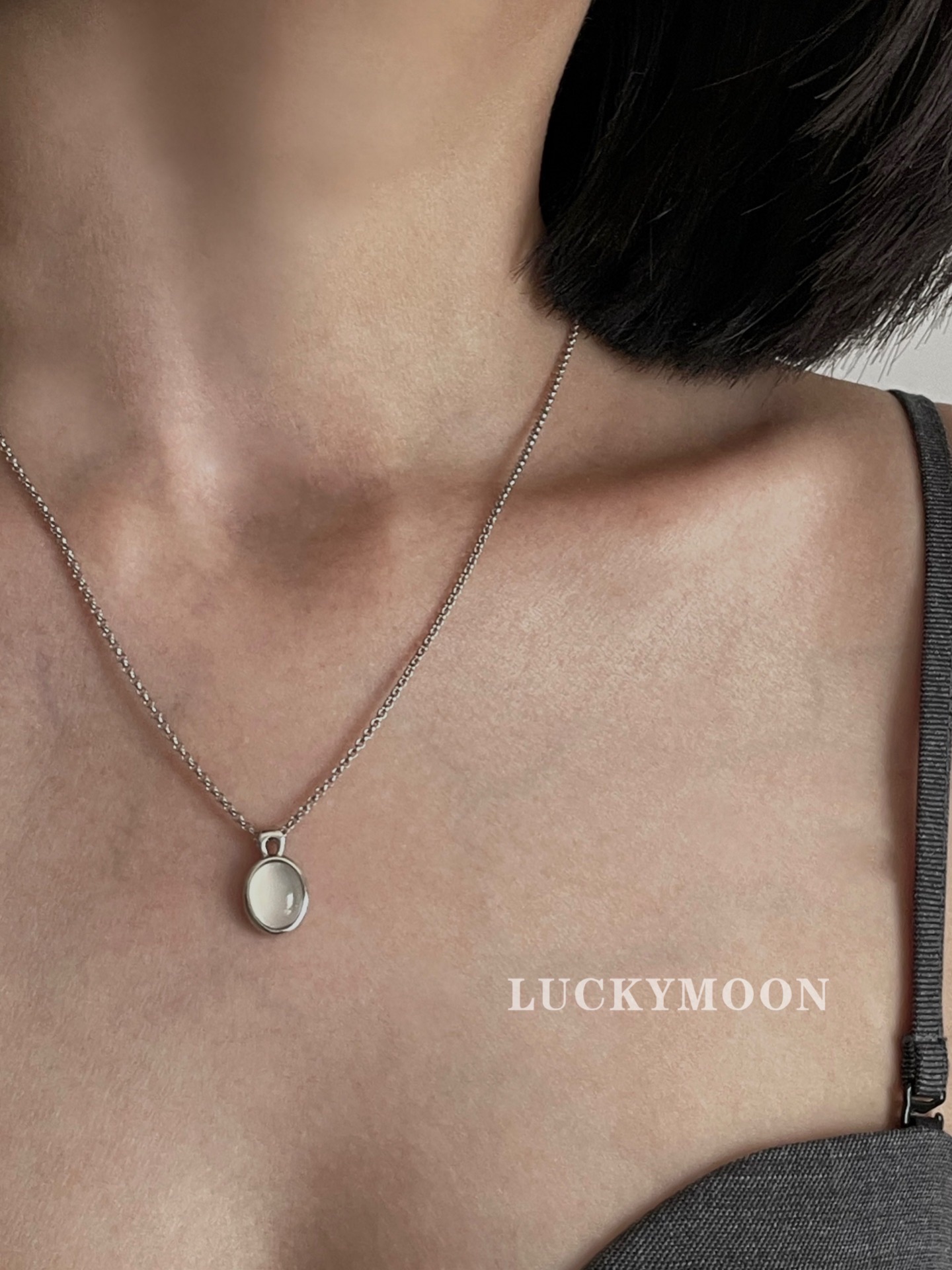 Luckymoon Elegant French Oval Black and White Agate Necklace All-Over S925 Sterling Silver N051