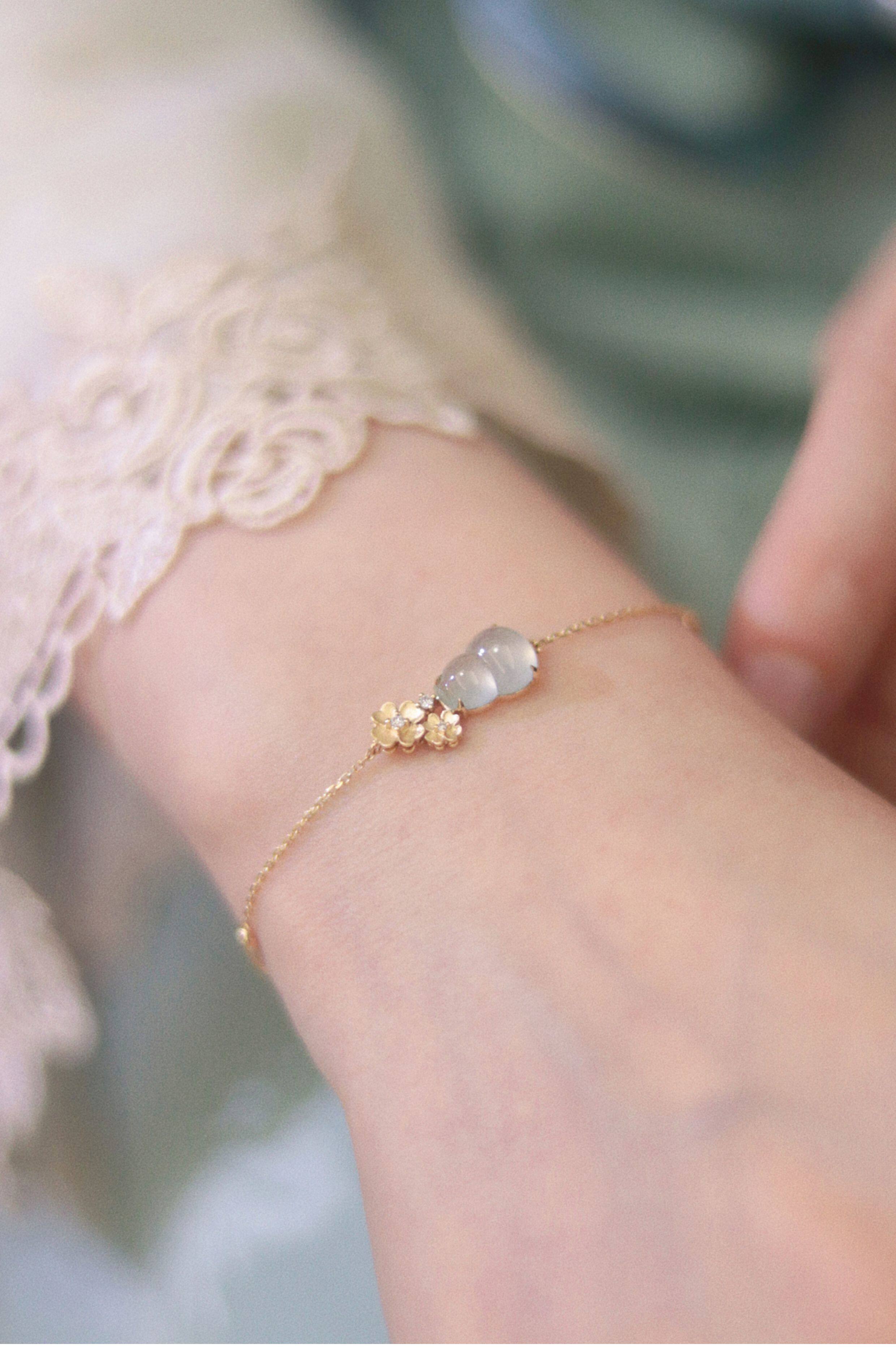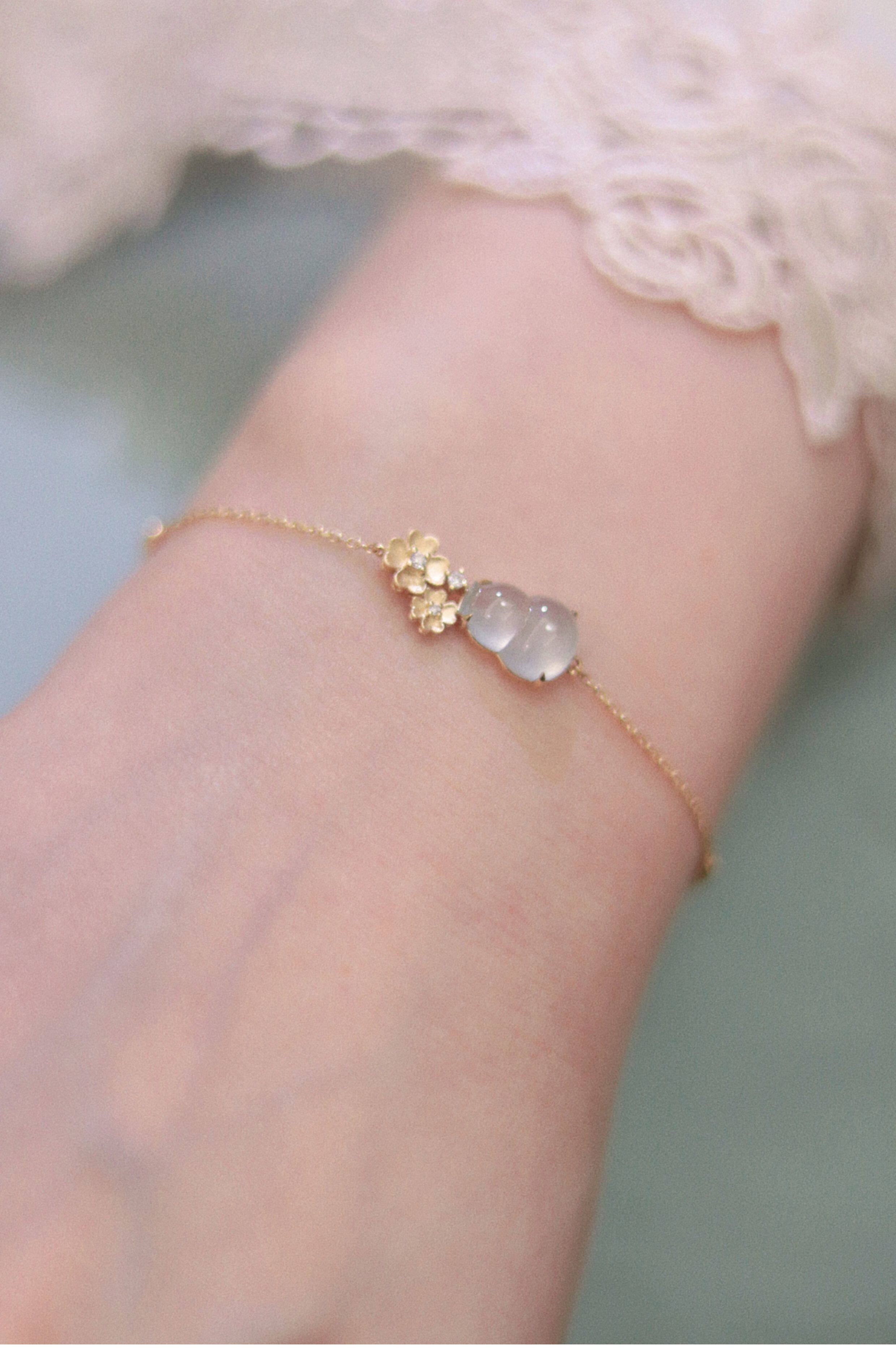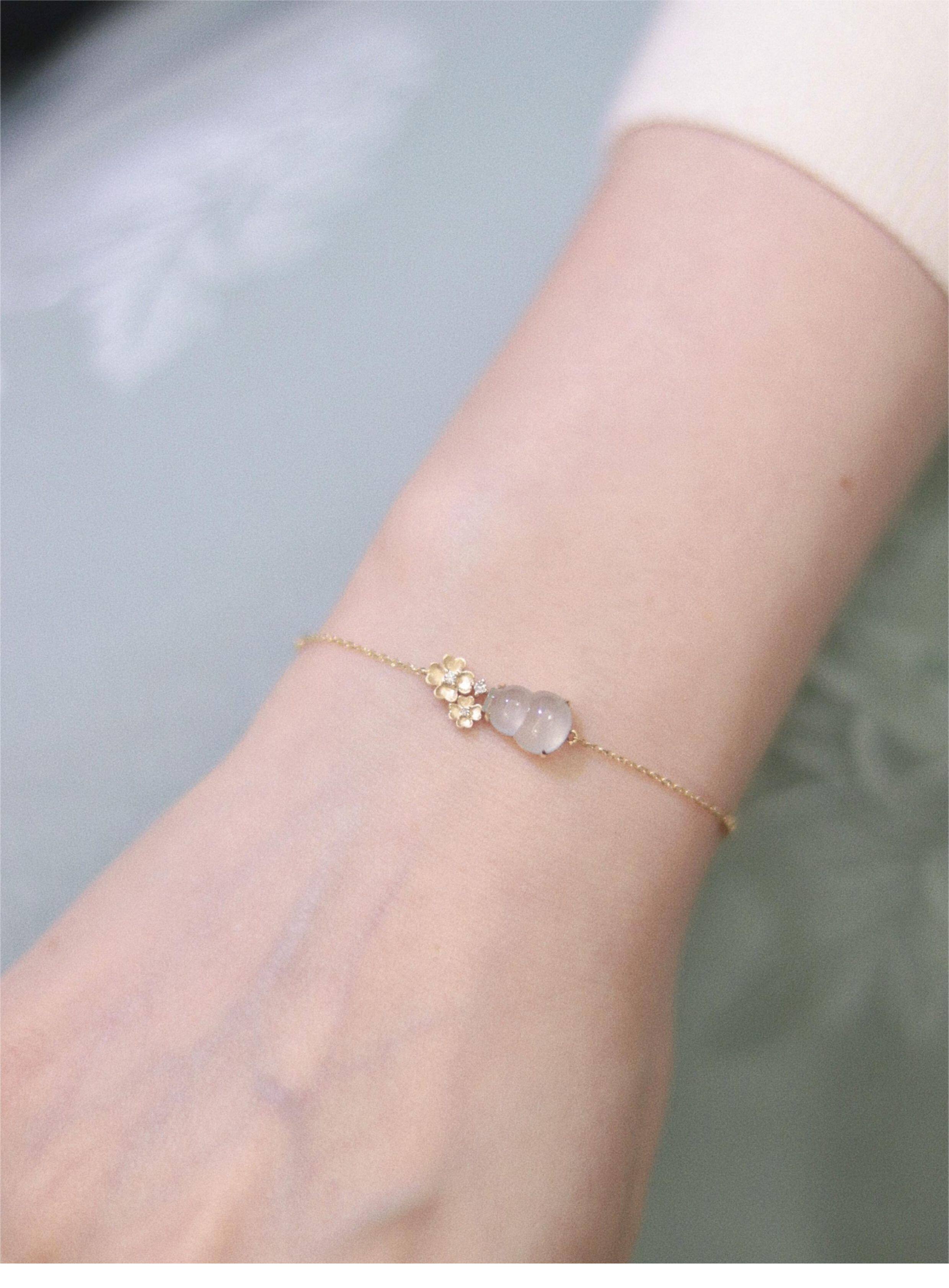 Floral Jade Gourd Bracelet Natural Ice Type Burmese Grade a 18K Gold Inlaid Bracelet with Beautiful Colors