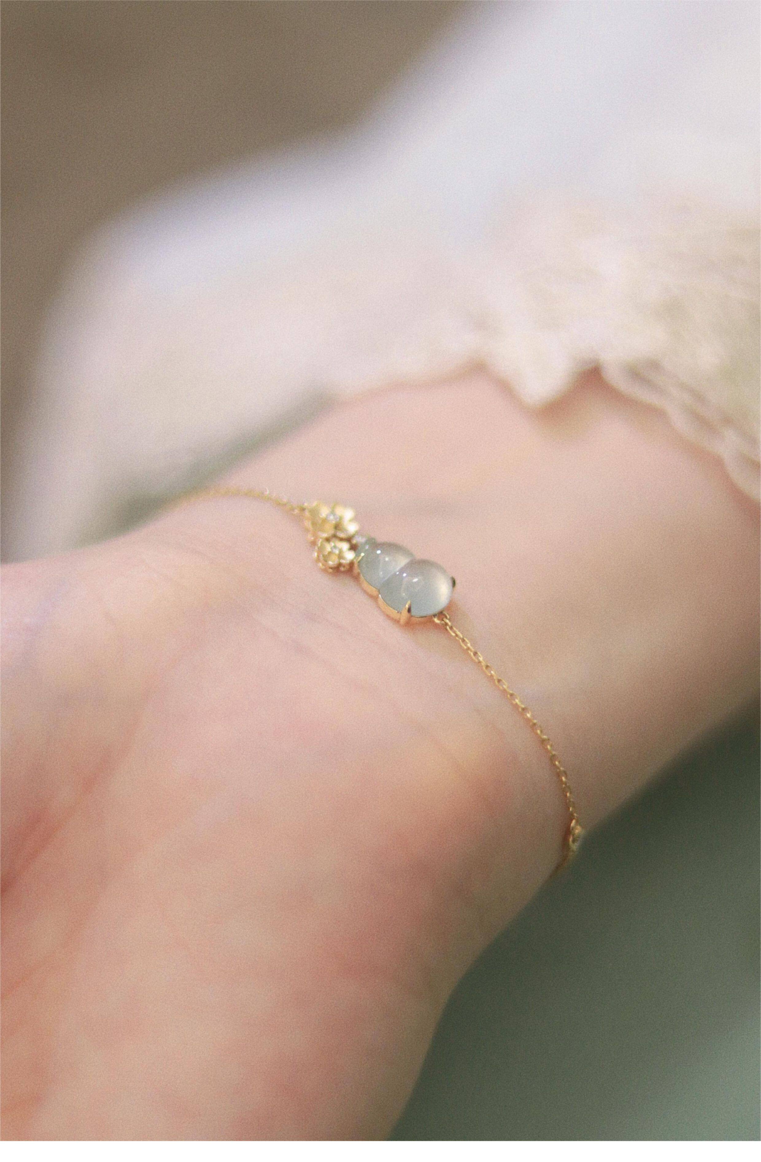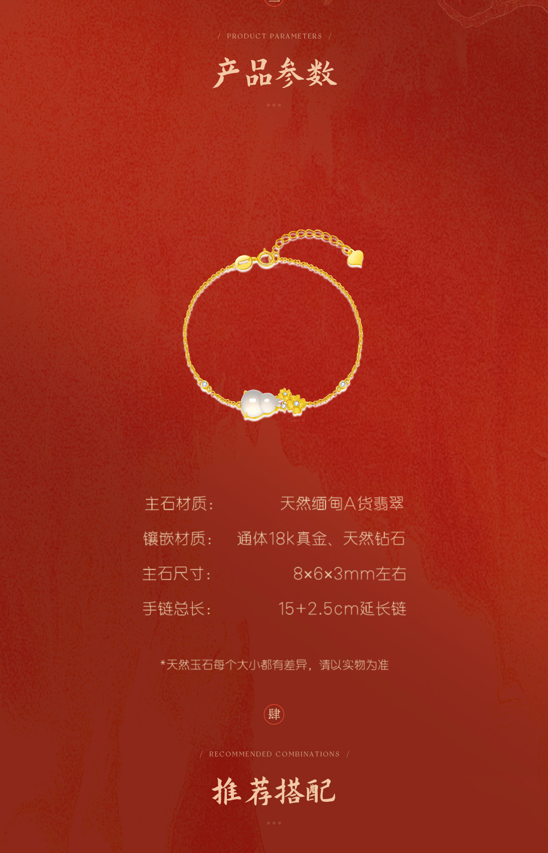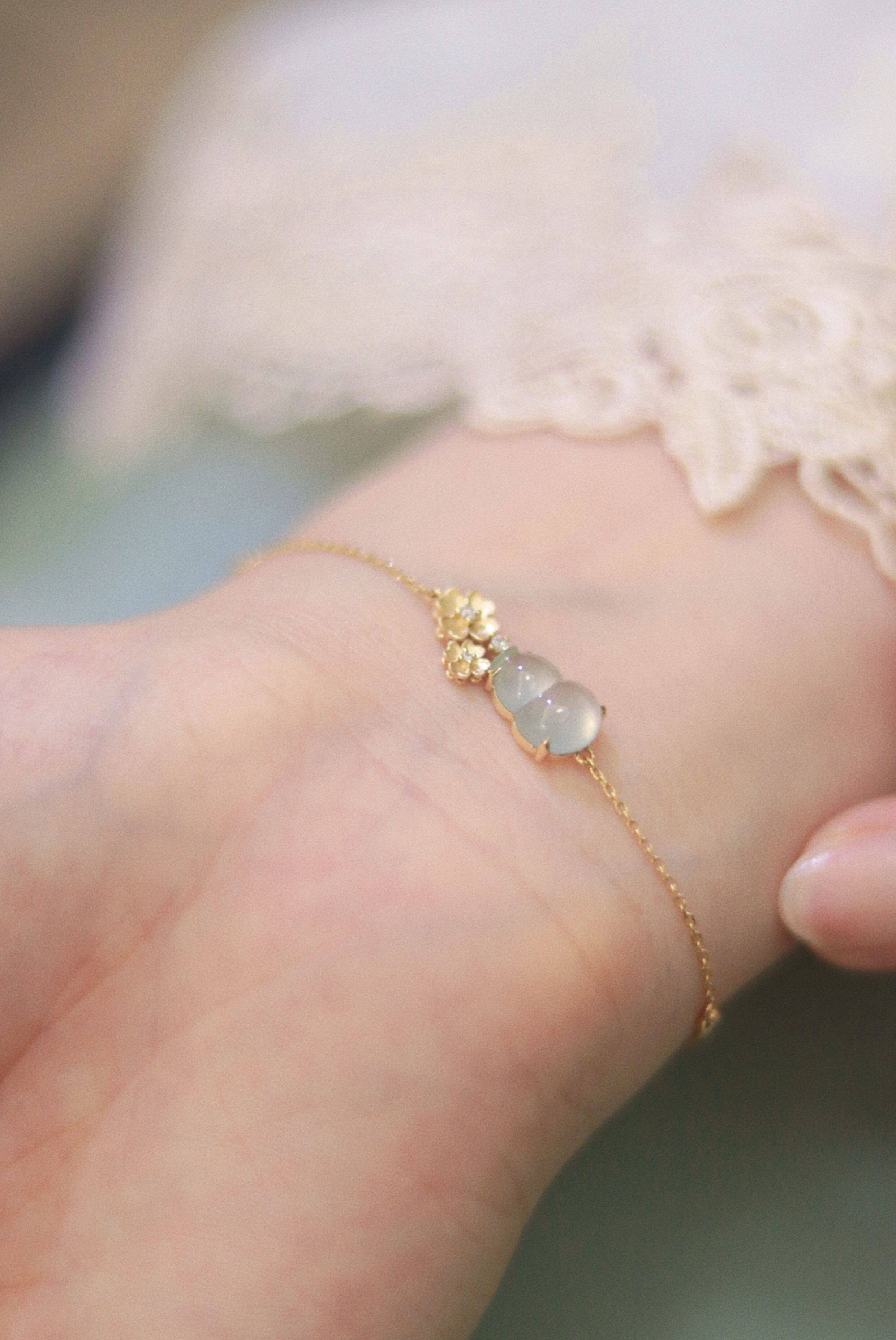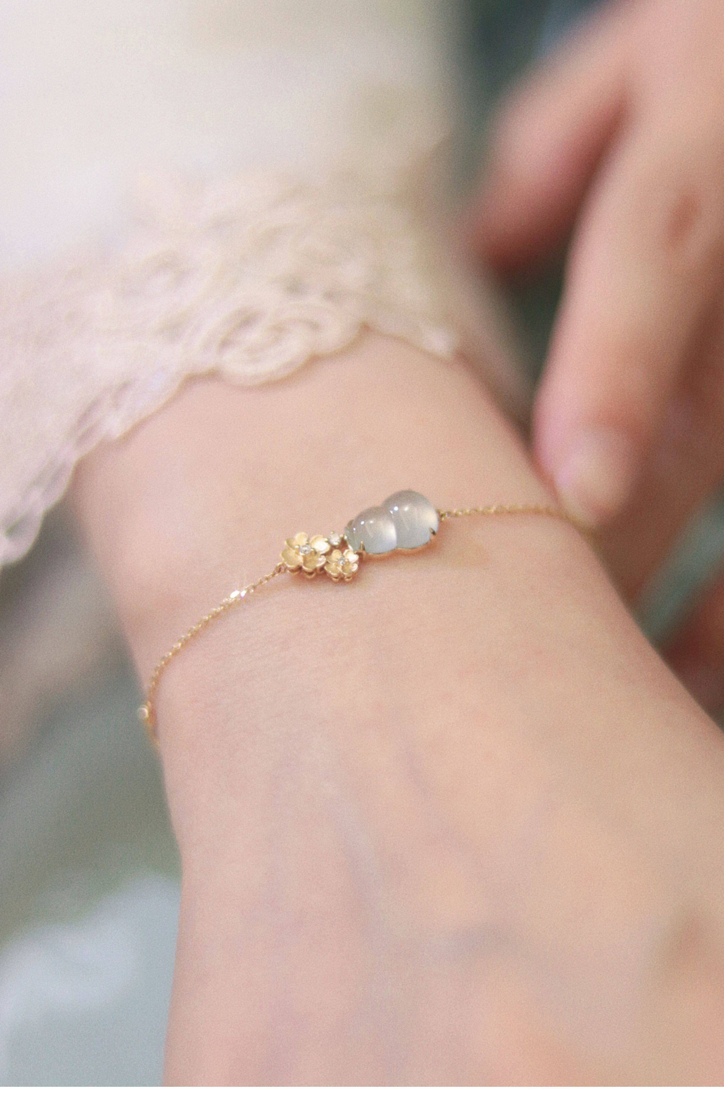 Floral Jade Gourd Bracelet Natural Ice Type Burmese Grade a 18K Gold Inlaid Bracelet with Beautiful Colors