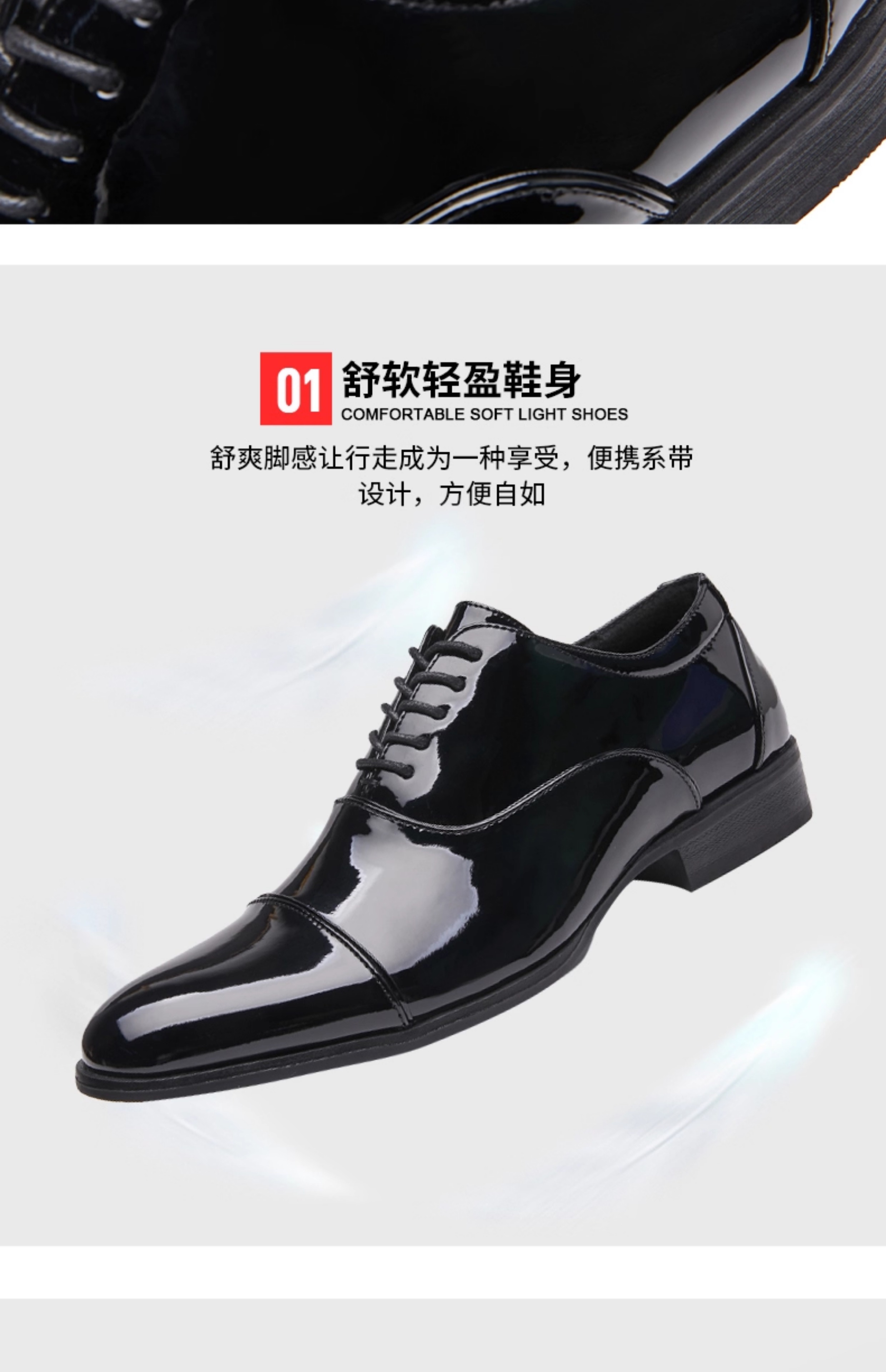 2025 British New Glossy Patent Leather Three-Joint Leather Shoes Men's Business Formal Oxford Shoes Pointed Toe Wedding Laces