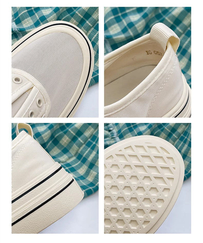 Hong Kong Mesh Breathable Canvas Loafers for Women 2026 Autumn New Flat Fashion Versatile Sneakers Casual White Shoes
