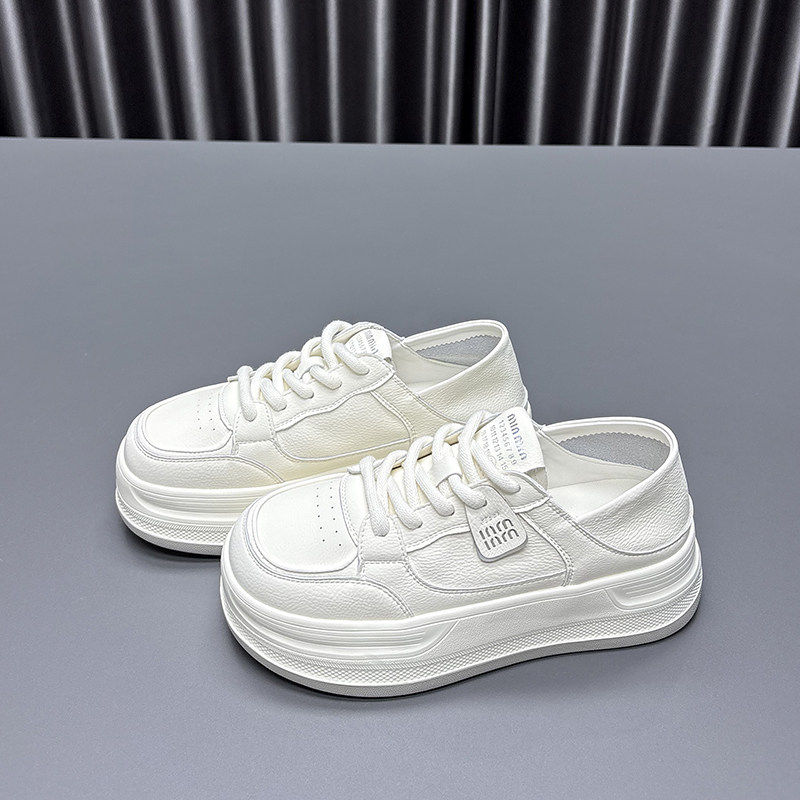 Hong Kong White Sneakers for Women, 2026 Spring and Autumn Models, Slip-On, Two-Way Wear, Lazy Sneakers, Genuine Leather, Versatile Casual Canvas Shoes