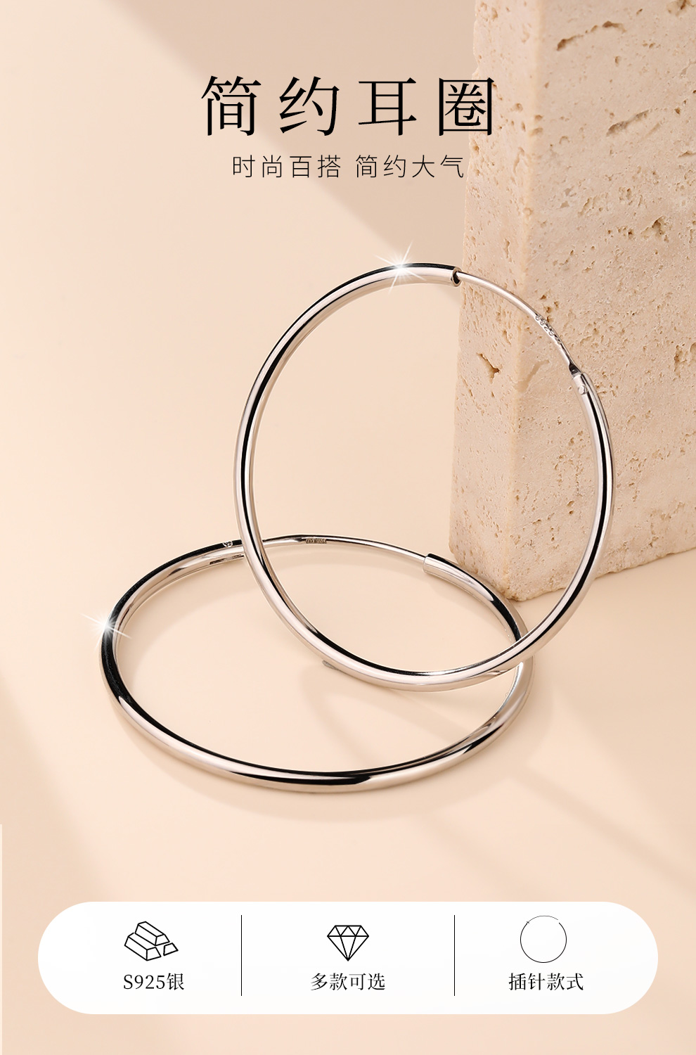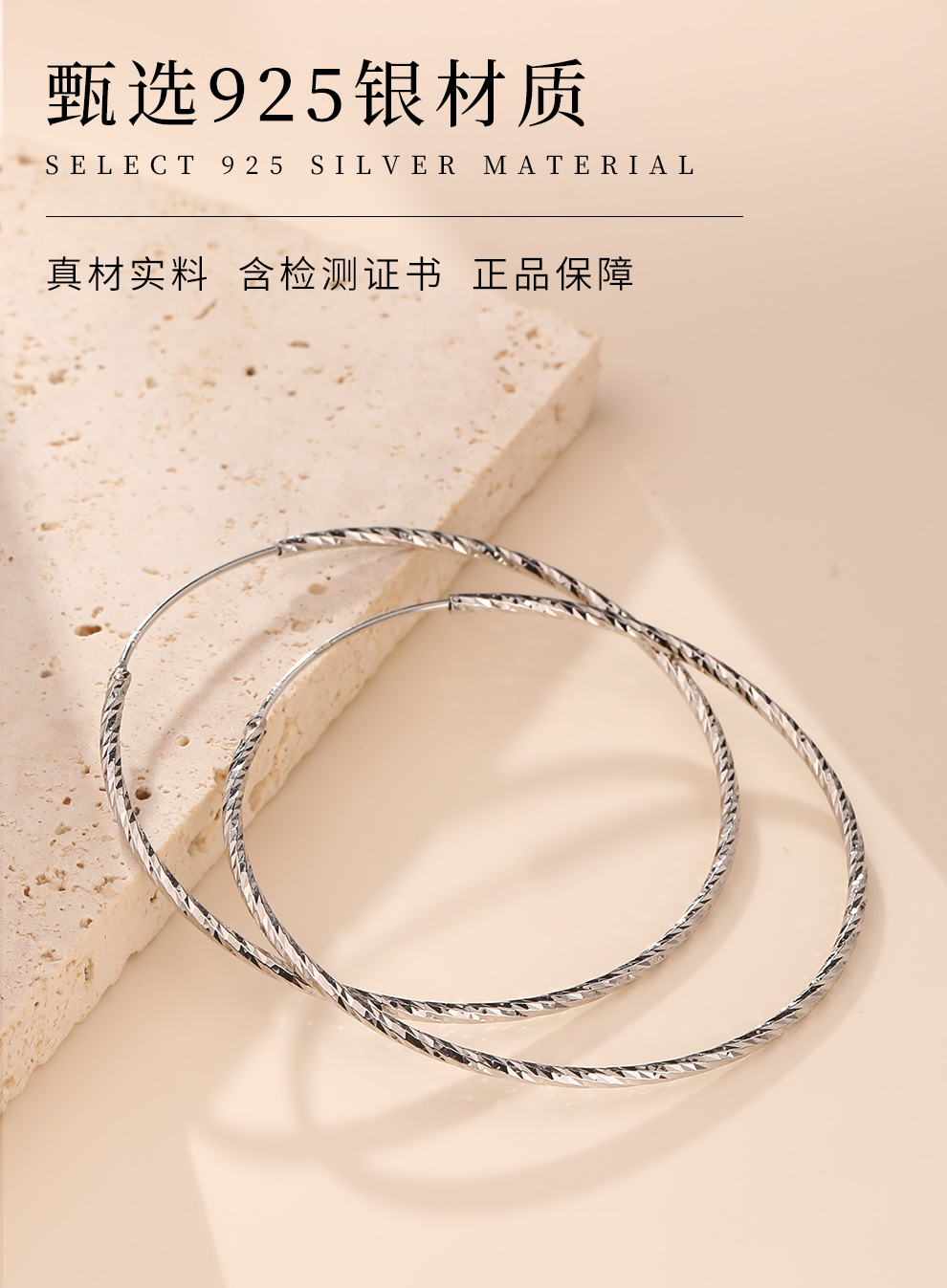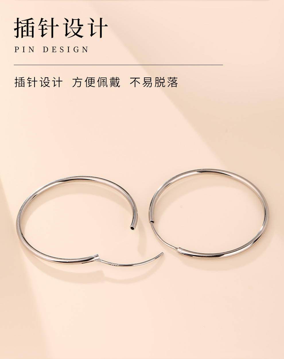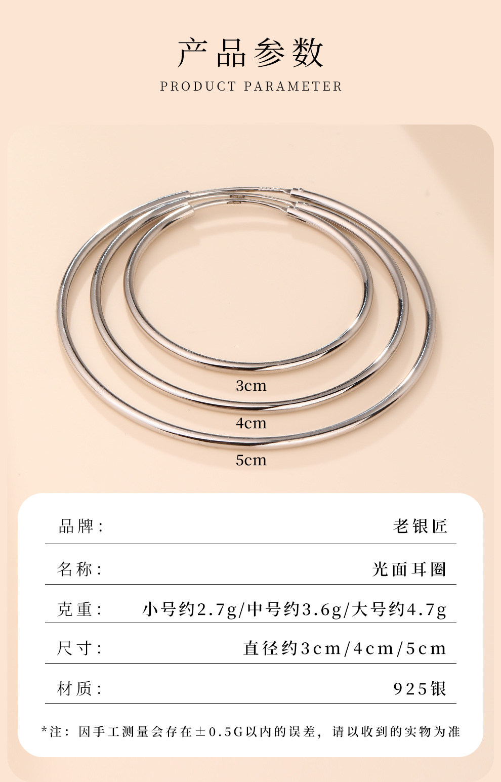 Old Silversmith Smooth Hoop Earrings S925 Silver Large Hoop Earrings for Women Simple Plain Hoops Qixi Festival Gift Silver Jewelry