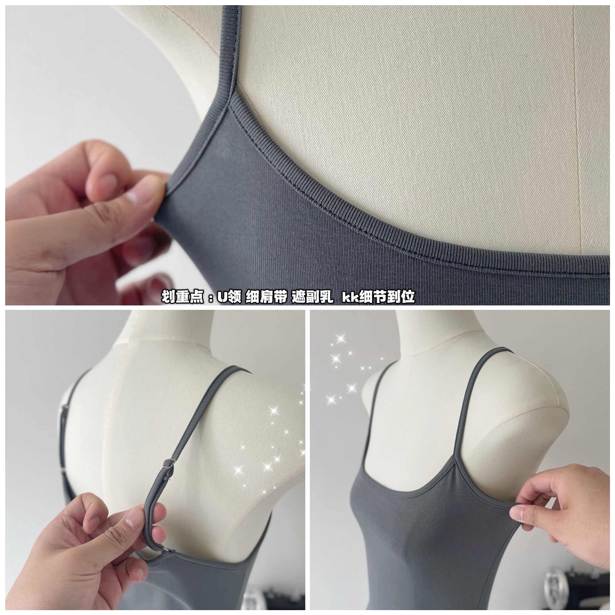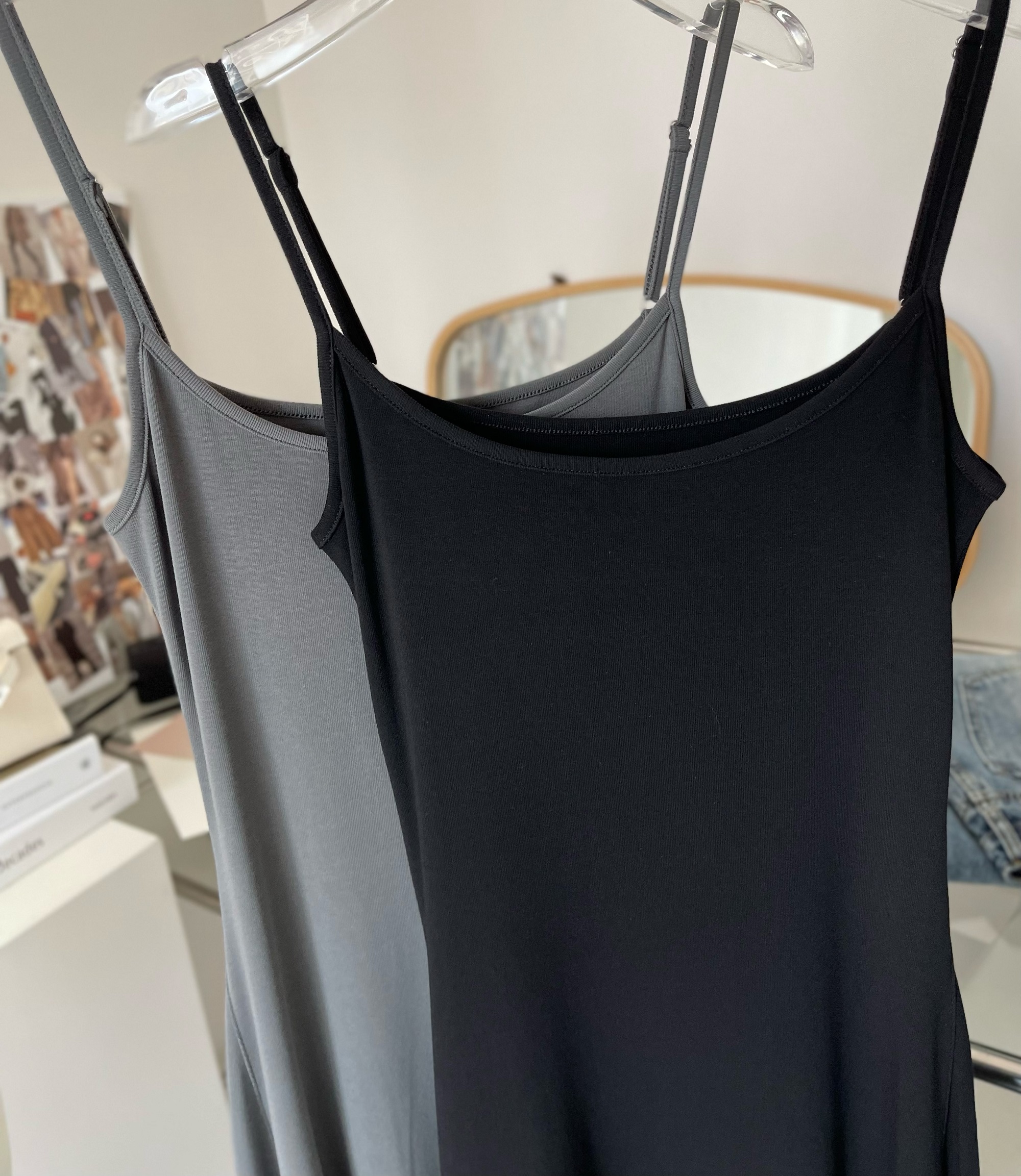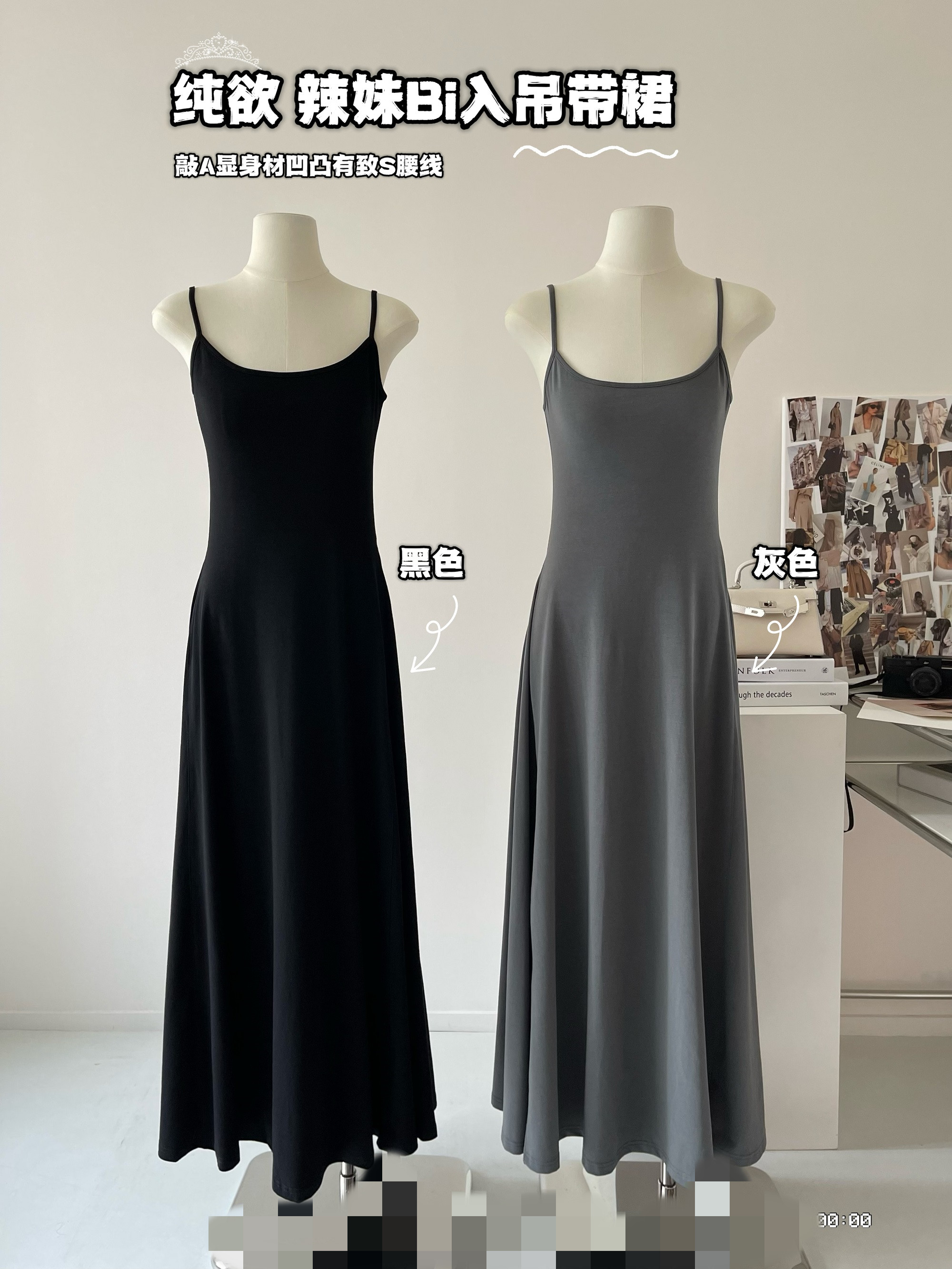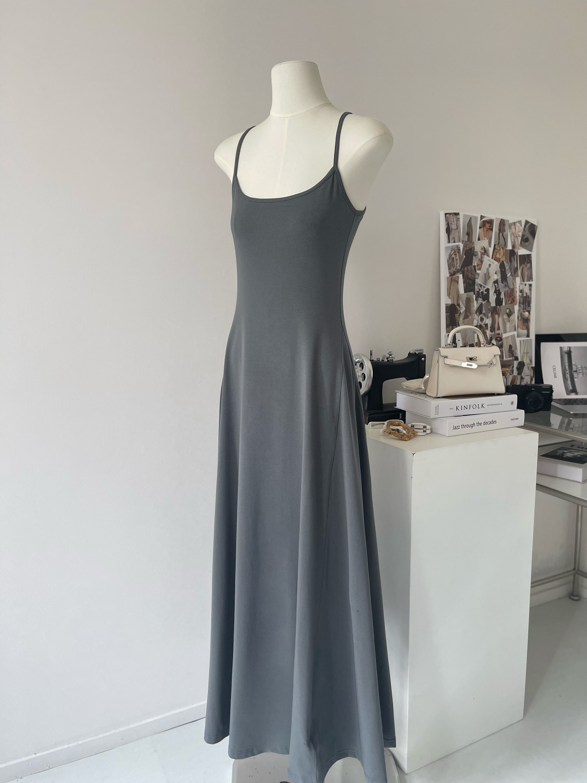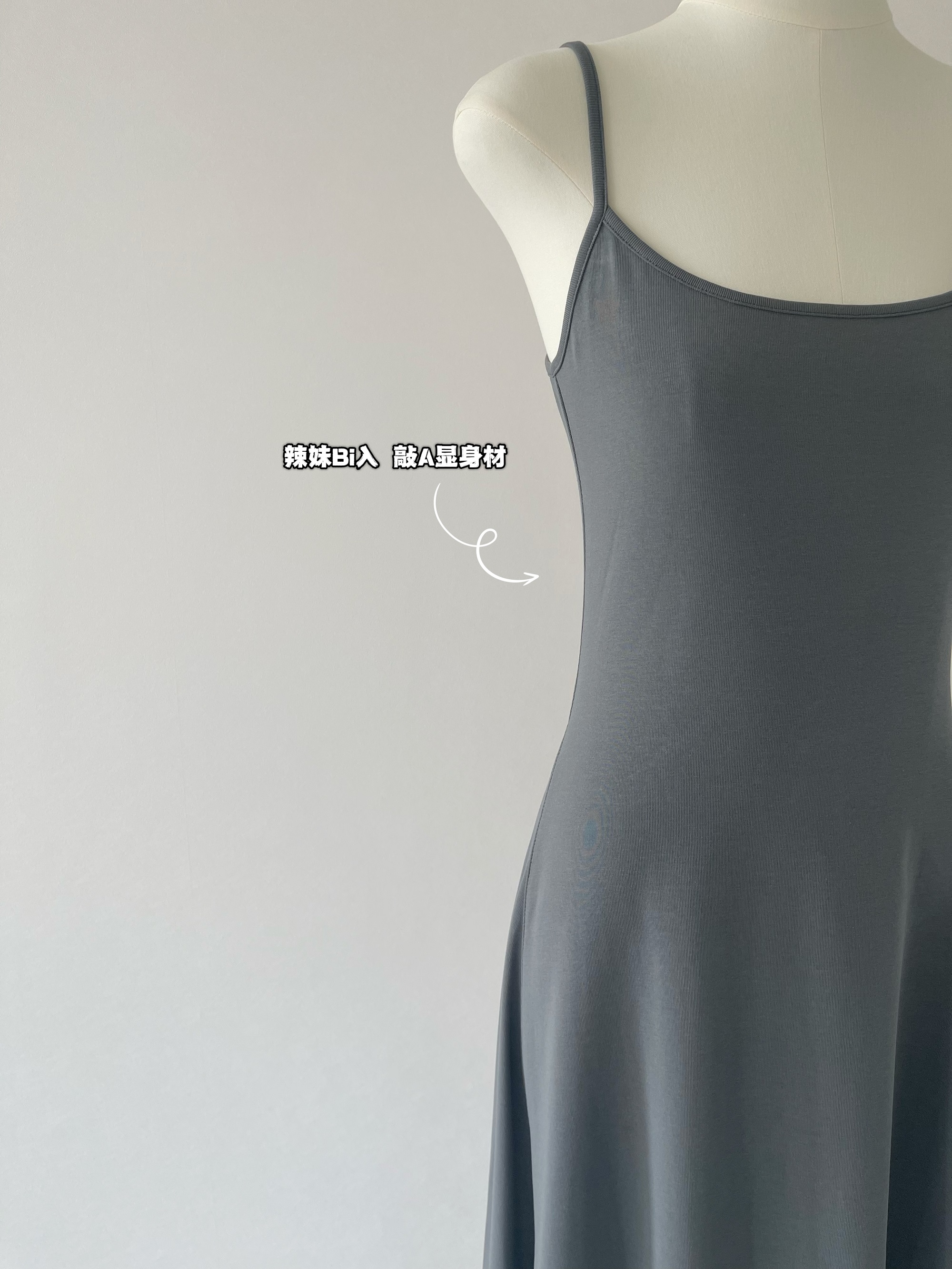 Peach LAOSHU Dance Student Black and Gray Simple Waist-Cinching Slimming U-Neck Elegant Long Spaghetti Strap Dress for Women