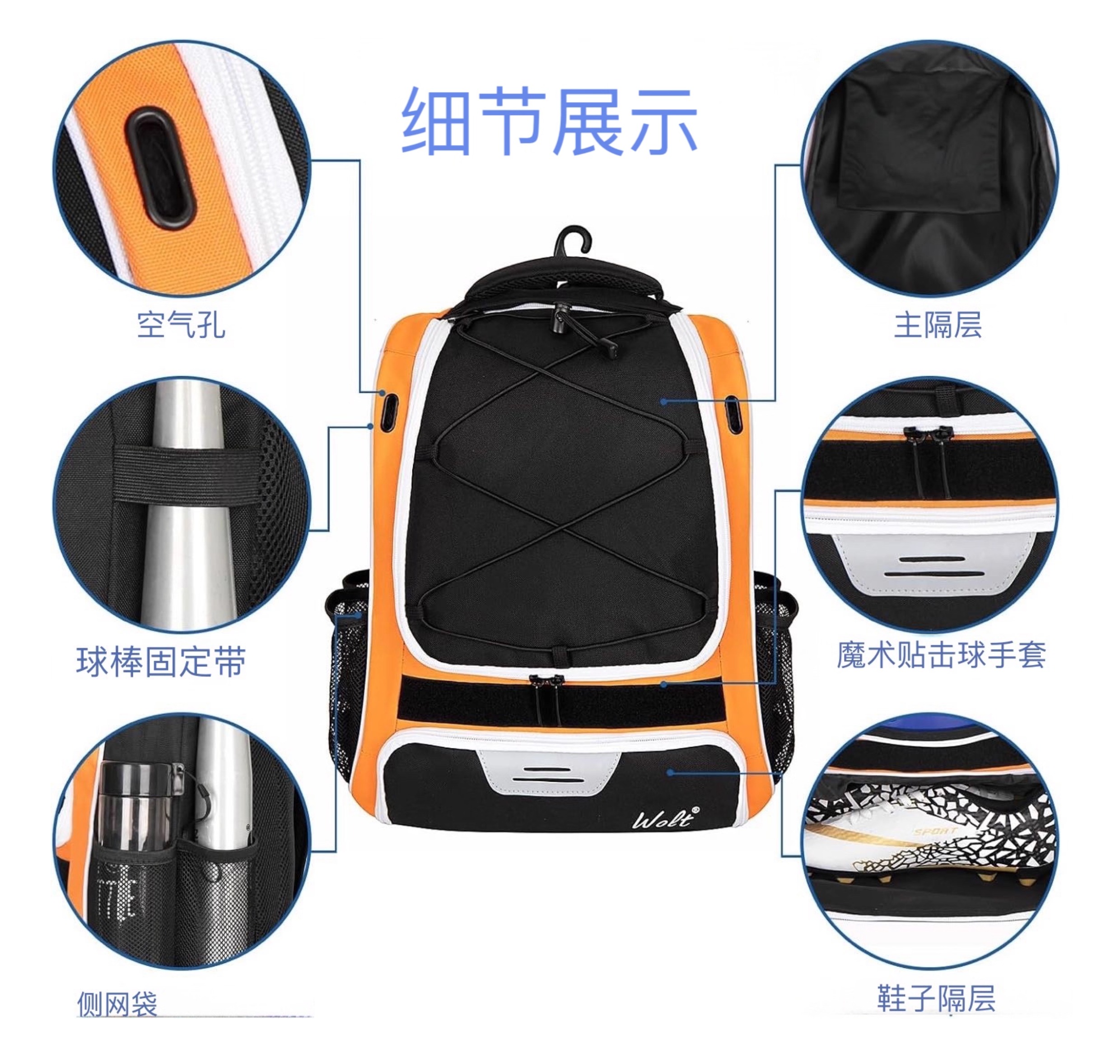 Cross-Border American Baseball Backpack, Outdoor Softball Equipment Training Storage Bag for Teenagers, Adults, Men and Women