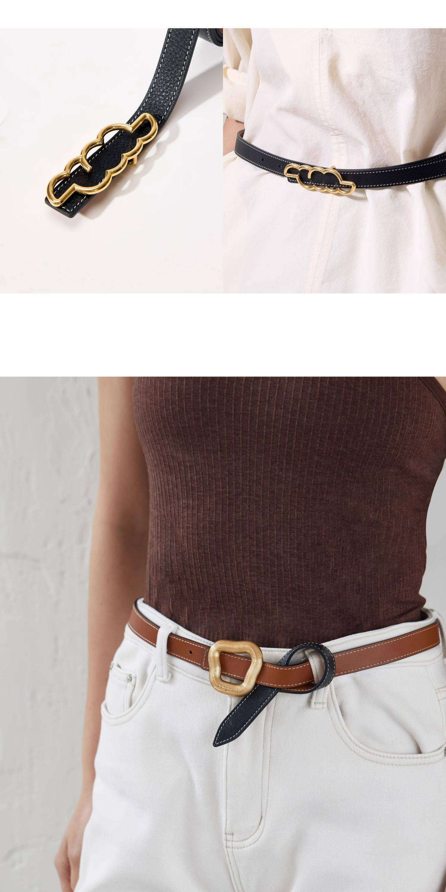 Songmont Women's Belt, Double-Sided, Freely Combinable with Pants, Designer New Model, Top Layer Cowhide Decorative Belt