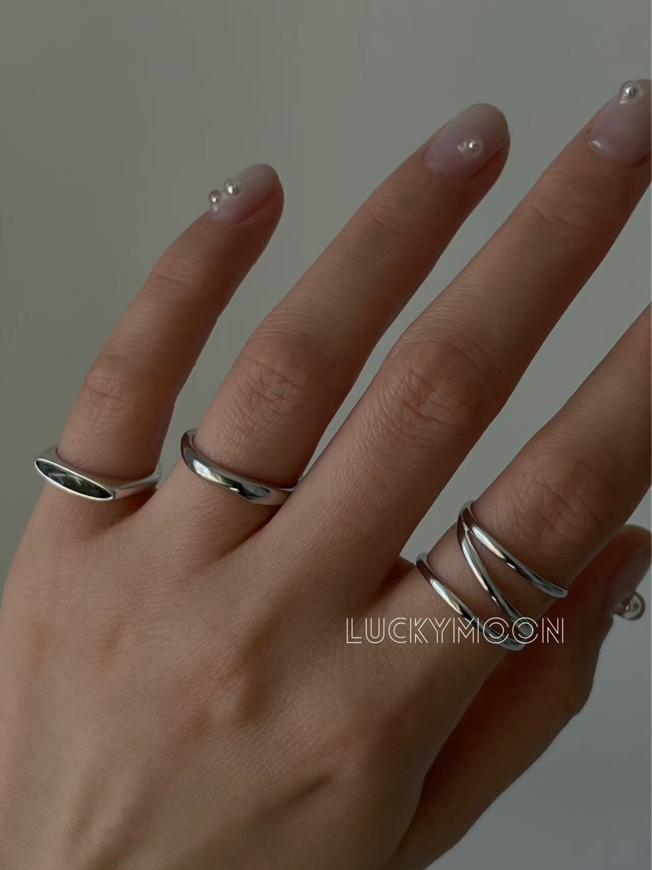 Luckymoon Irregular Multi-Line Ring S925 All-Over Sterling Silver Adjustable Opening R061