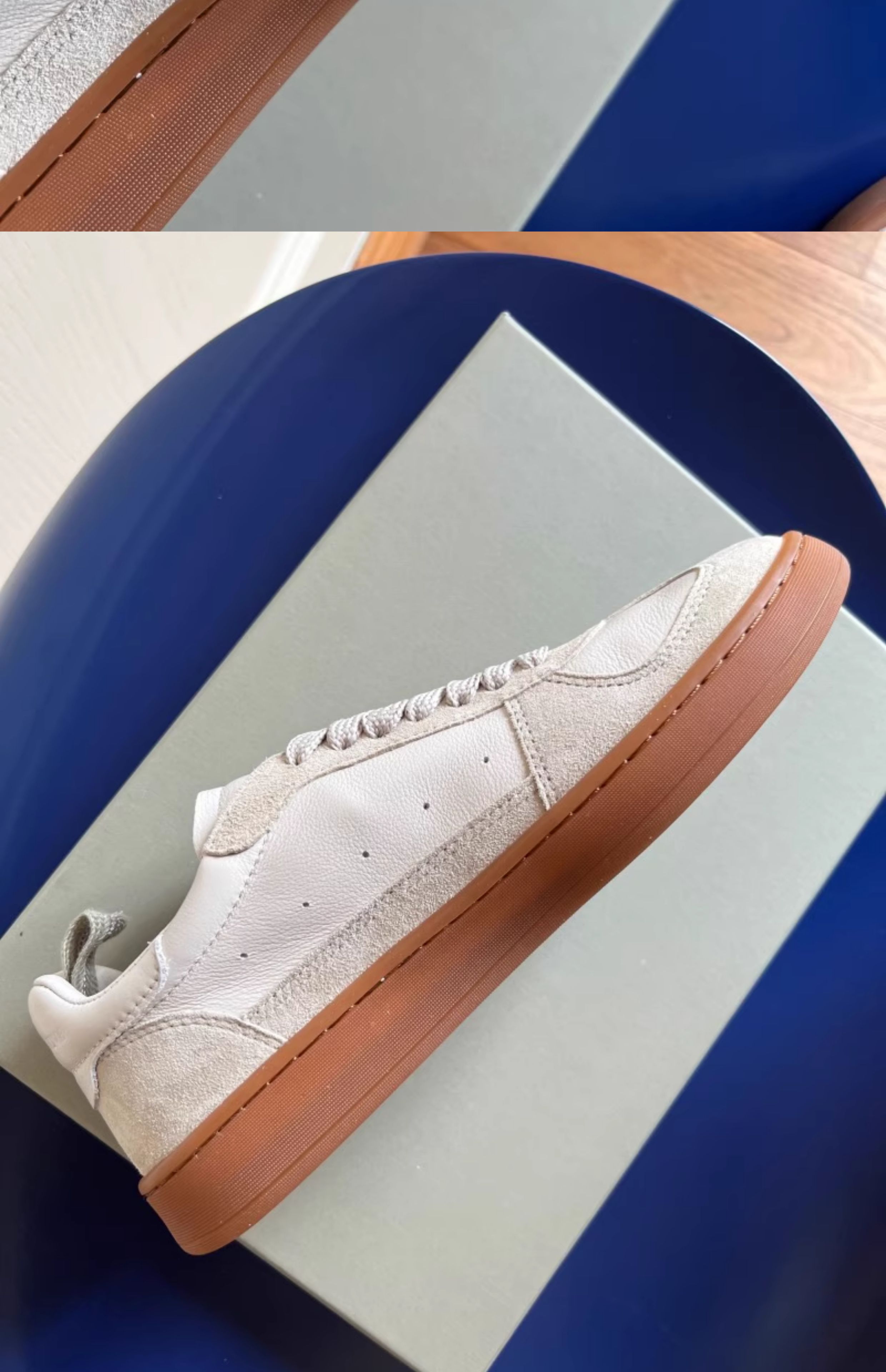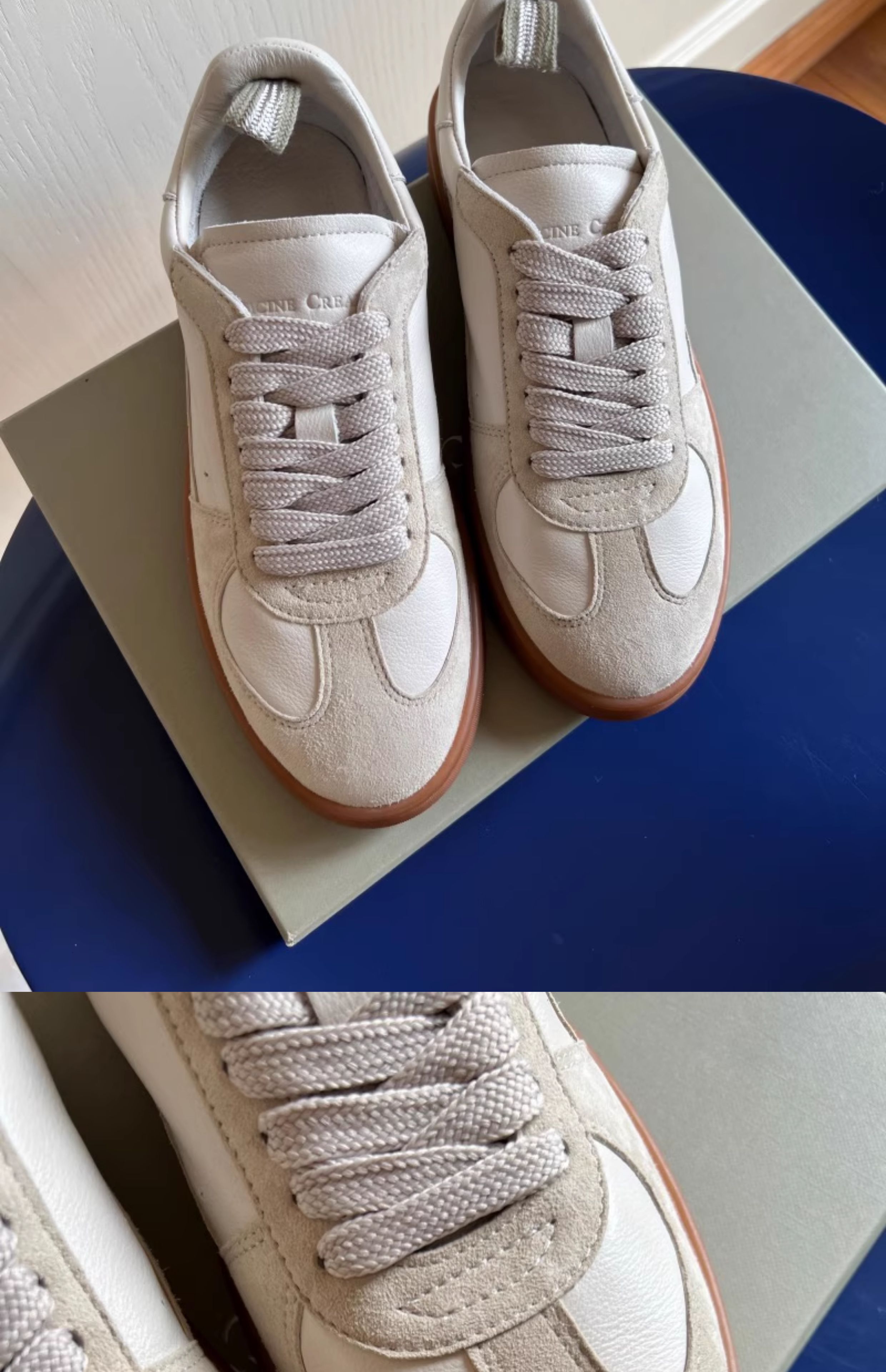 No Break-In Period! Comfortable! Italian Handmade Shoes, Off-Duty Training Shoes, Full Leather Color-Blocked Casual Sneakers, Retro