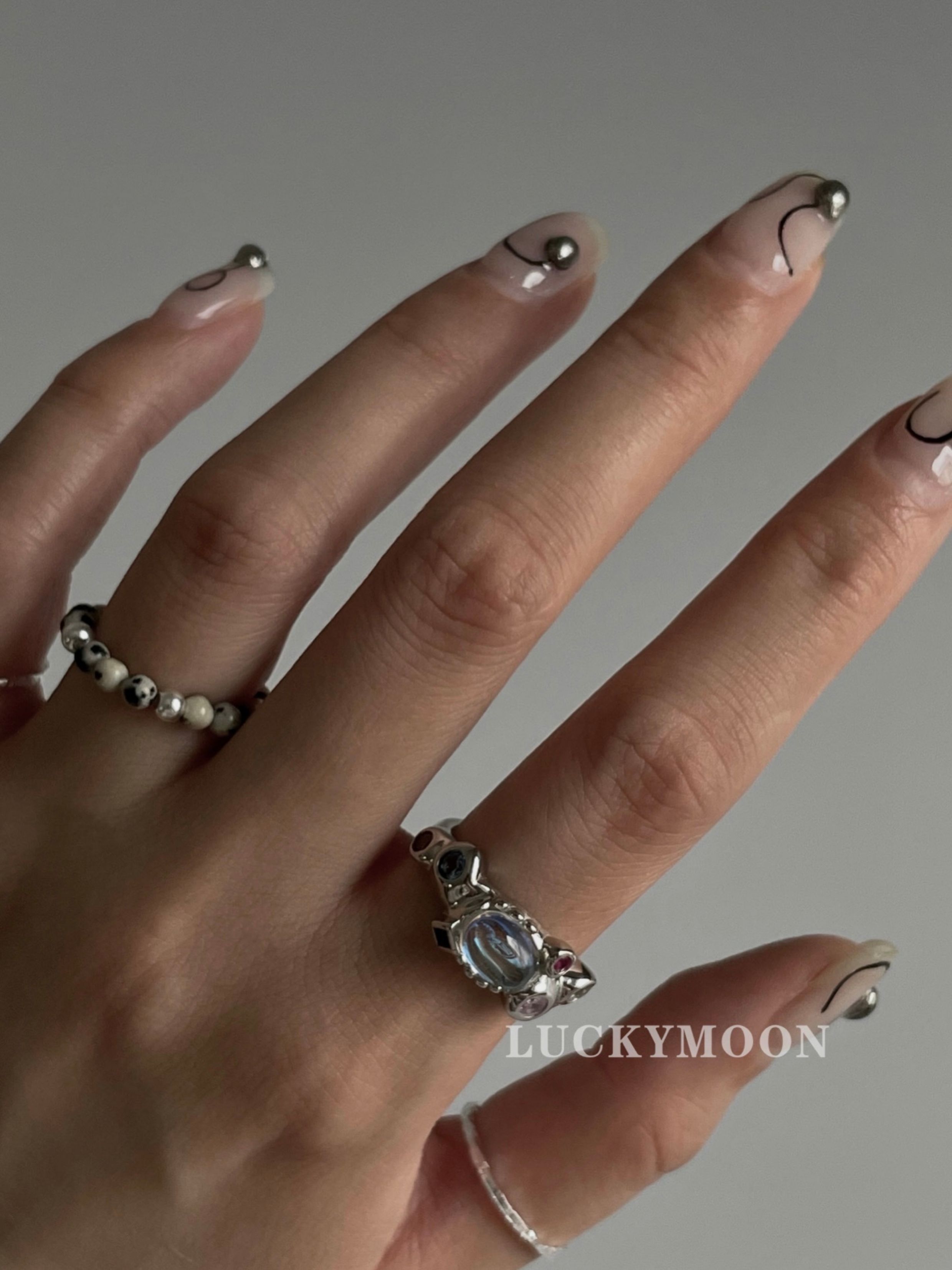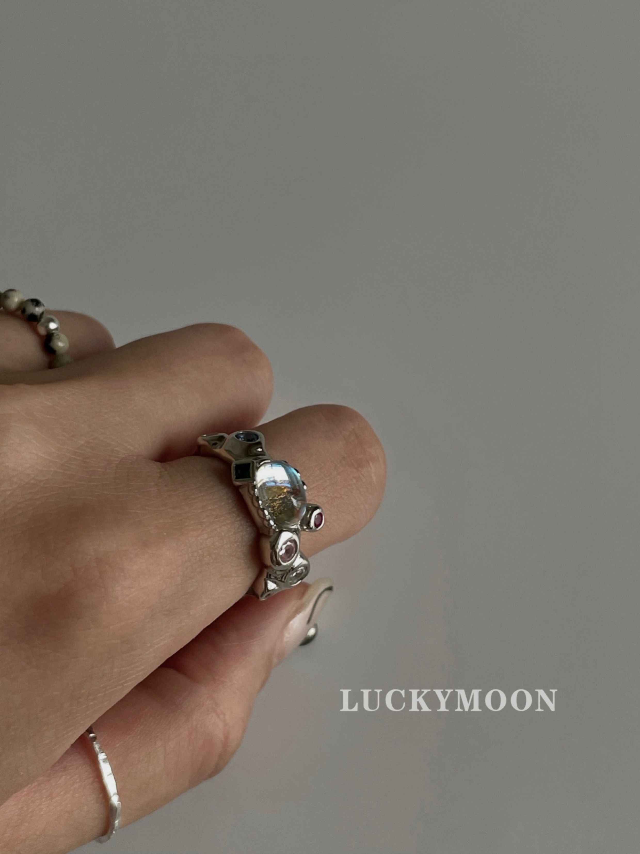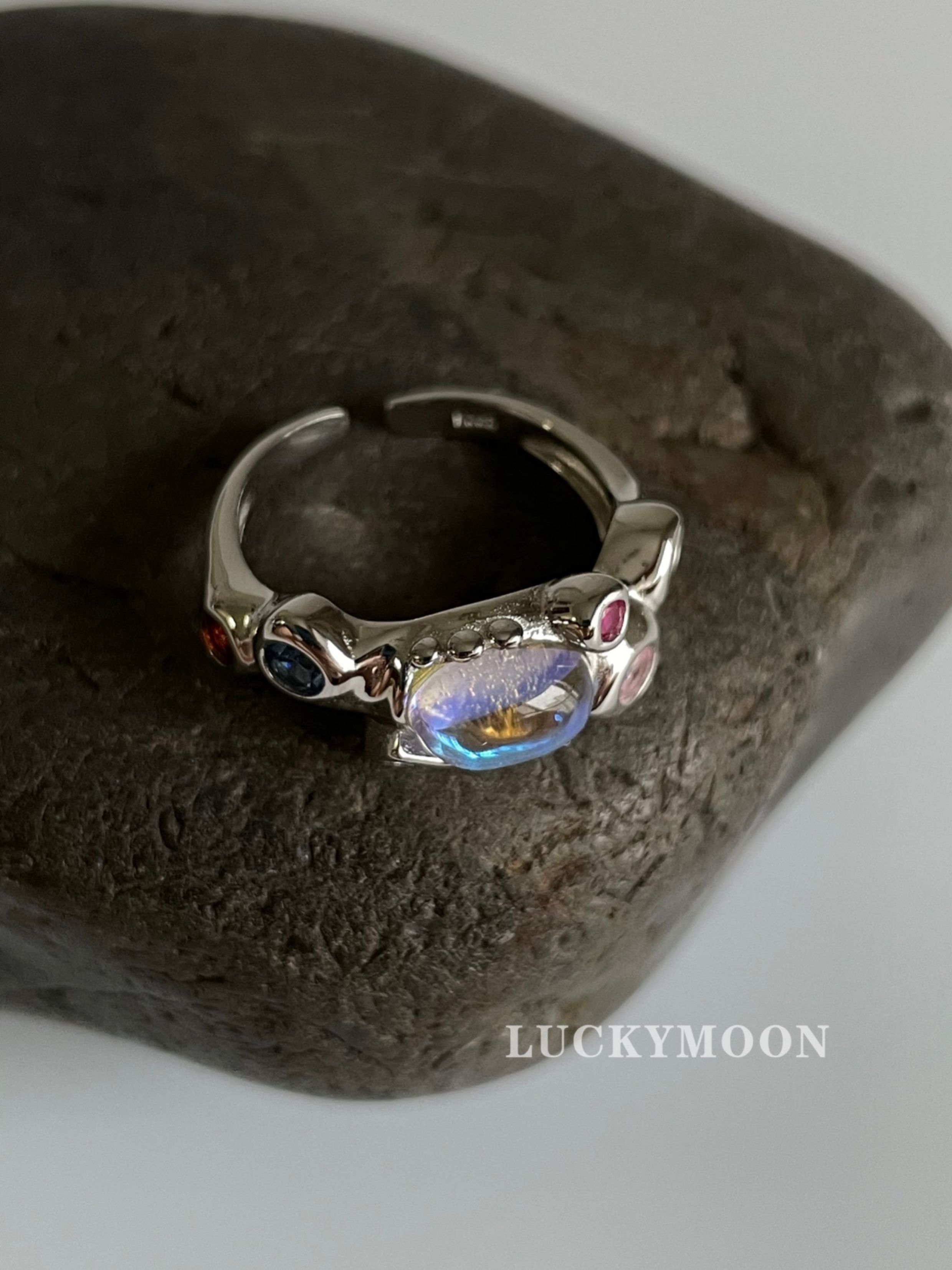 Luckymoon Chinese Valentine's Day Gift Colorful Zircon Moonstone Same Style Ring S925 All-Over Sterling Silver R005