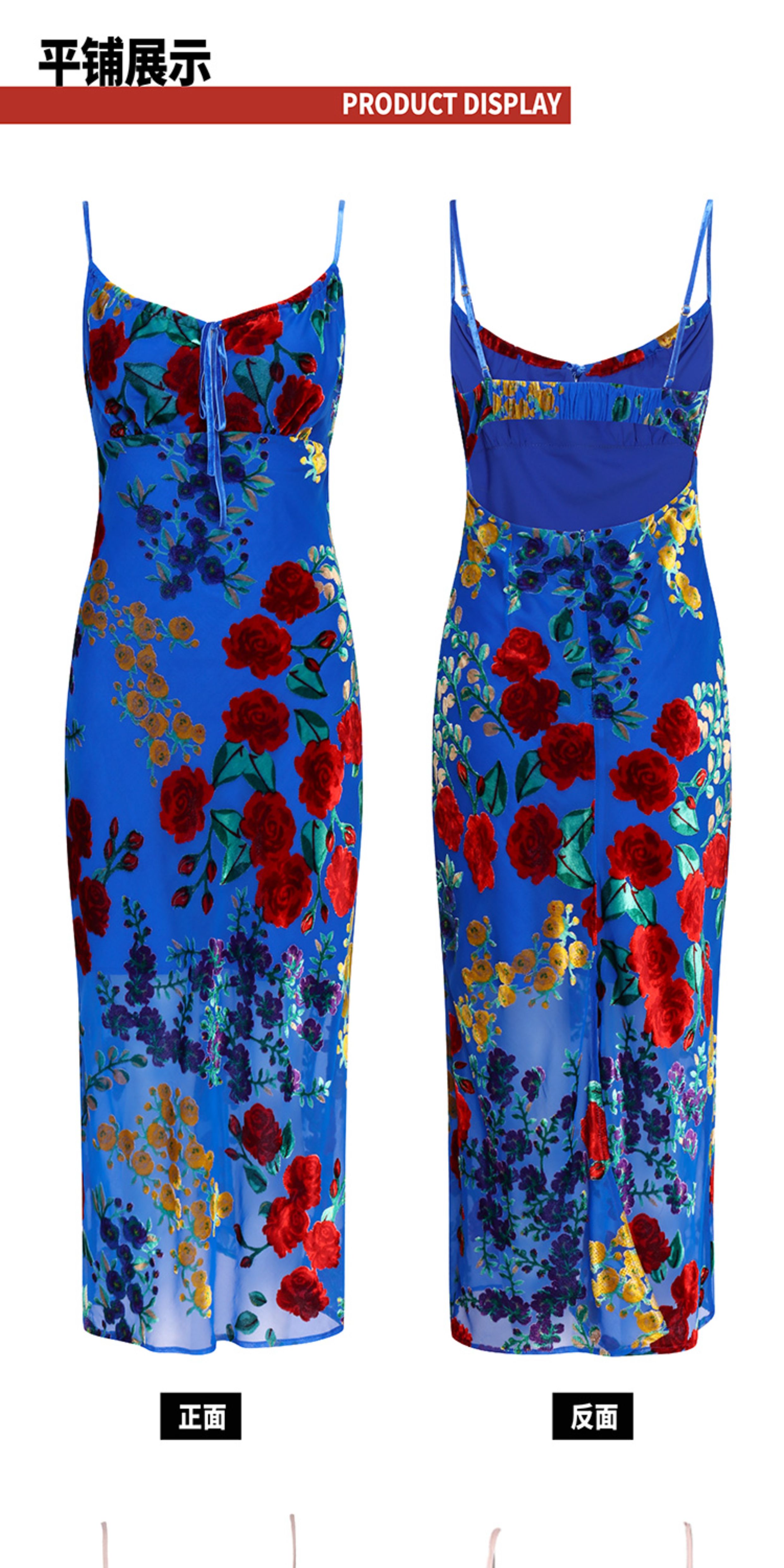 Tr She Hot Fatal Woman Blue Pink Velvet Burnt Cherry Retro Suspender Hot Girl Slim Dress