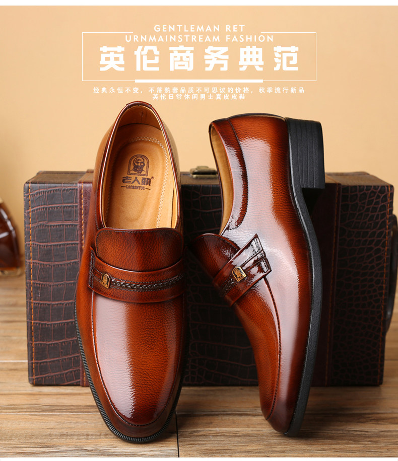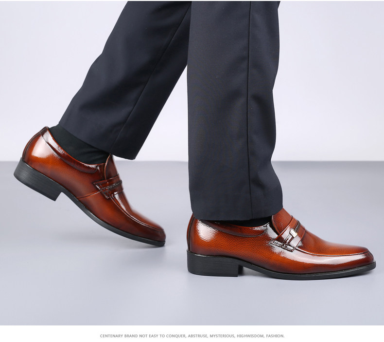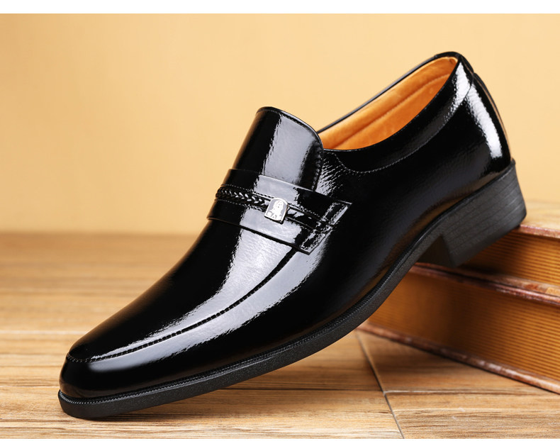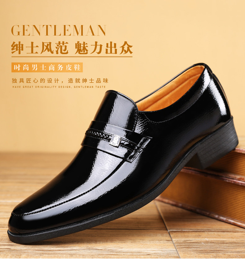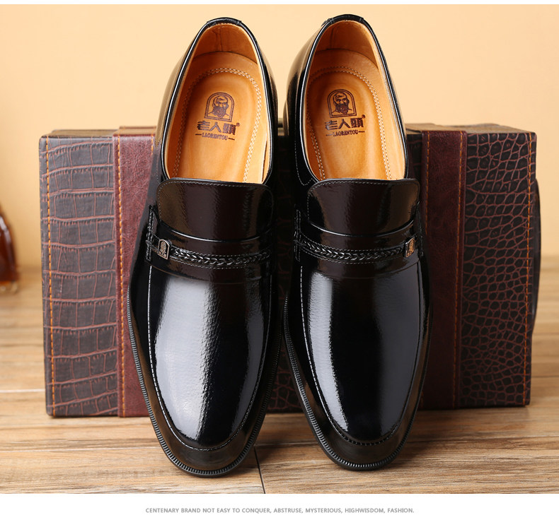 Elderly Men's Formal Leather Shoes, Genuine Leather, 2026 Spring New Style, Business Casual Patent Leather Slip-On Men's Shoes