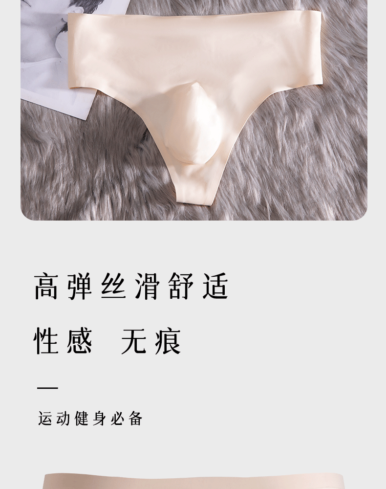 European and American Style Seamless High-Waisted Ice Silk Underwear for Men, 3D Molded, Sexy New Transparent Sports Fitness Shorts