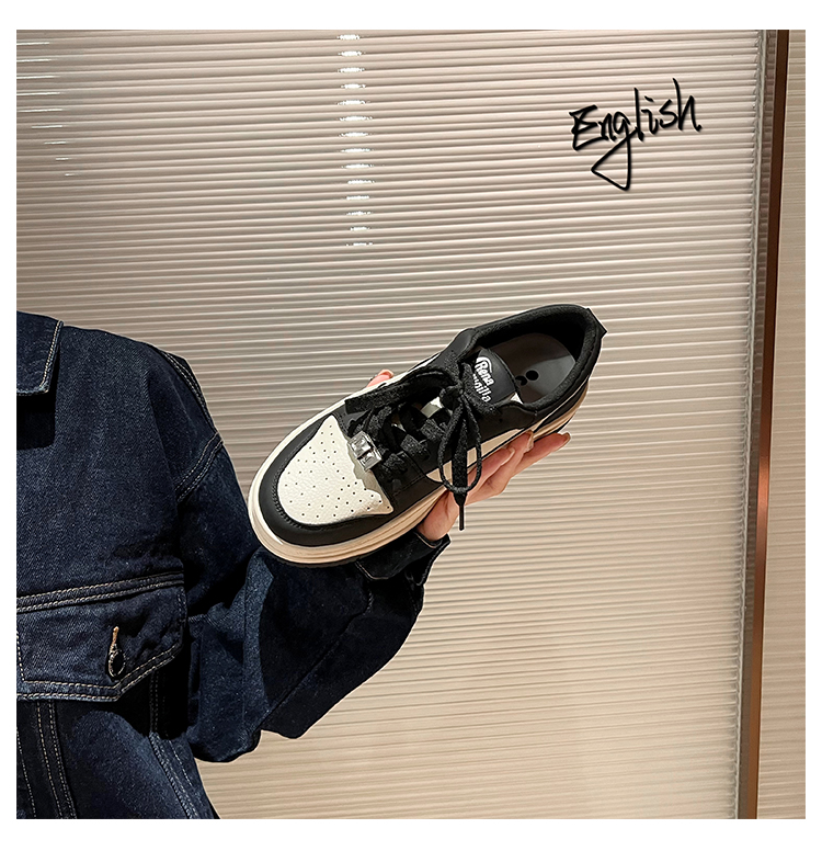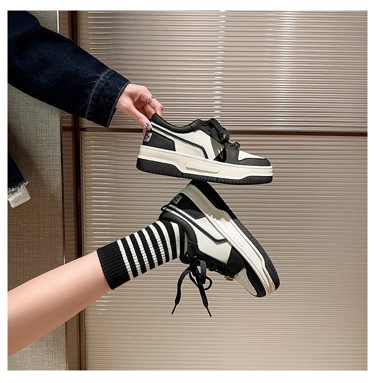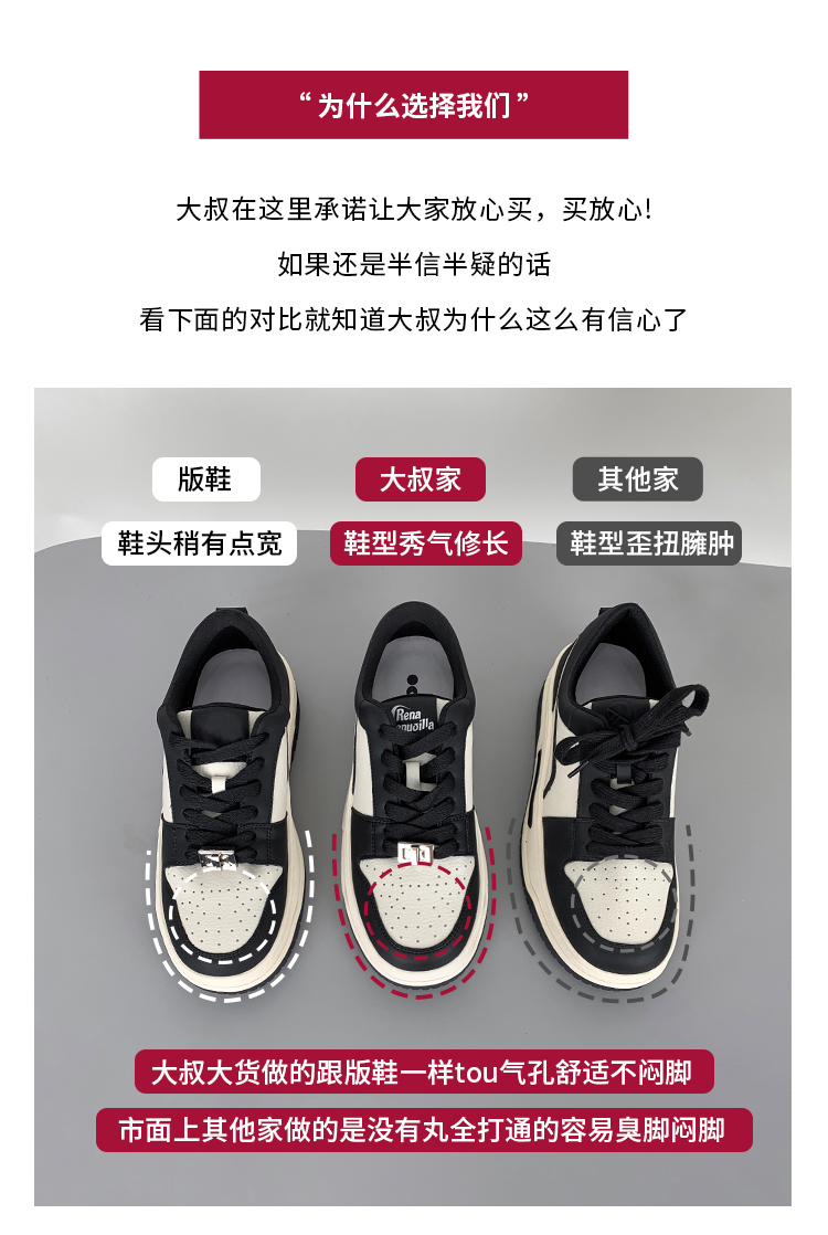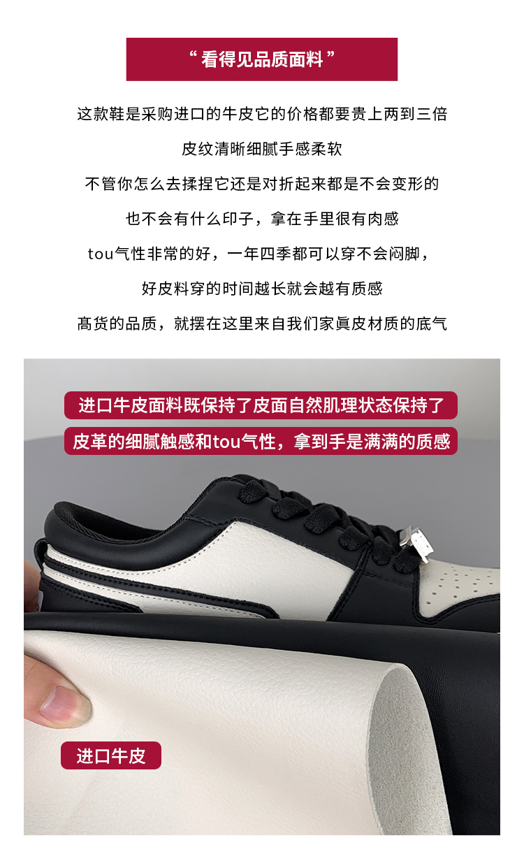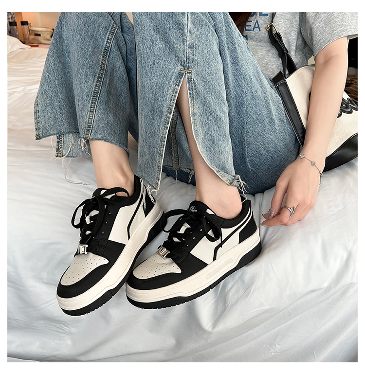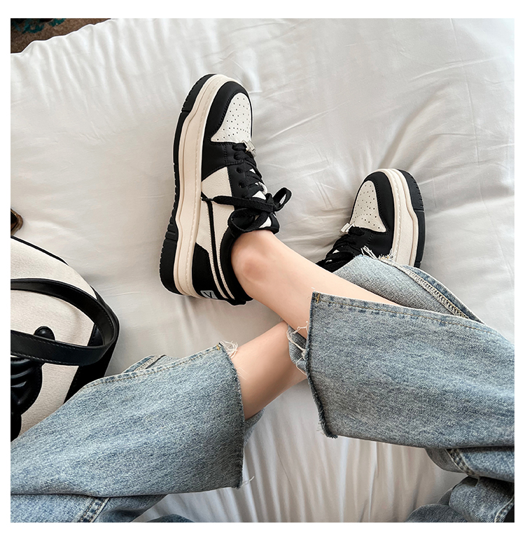 Handmade Cowhide ~ Uncle's Genuine Leather Thick-Soled Casual White Shoes for Women, Fleece-Lined for Autumn and Winter, Black and White Sports Panda Sneakers