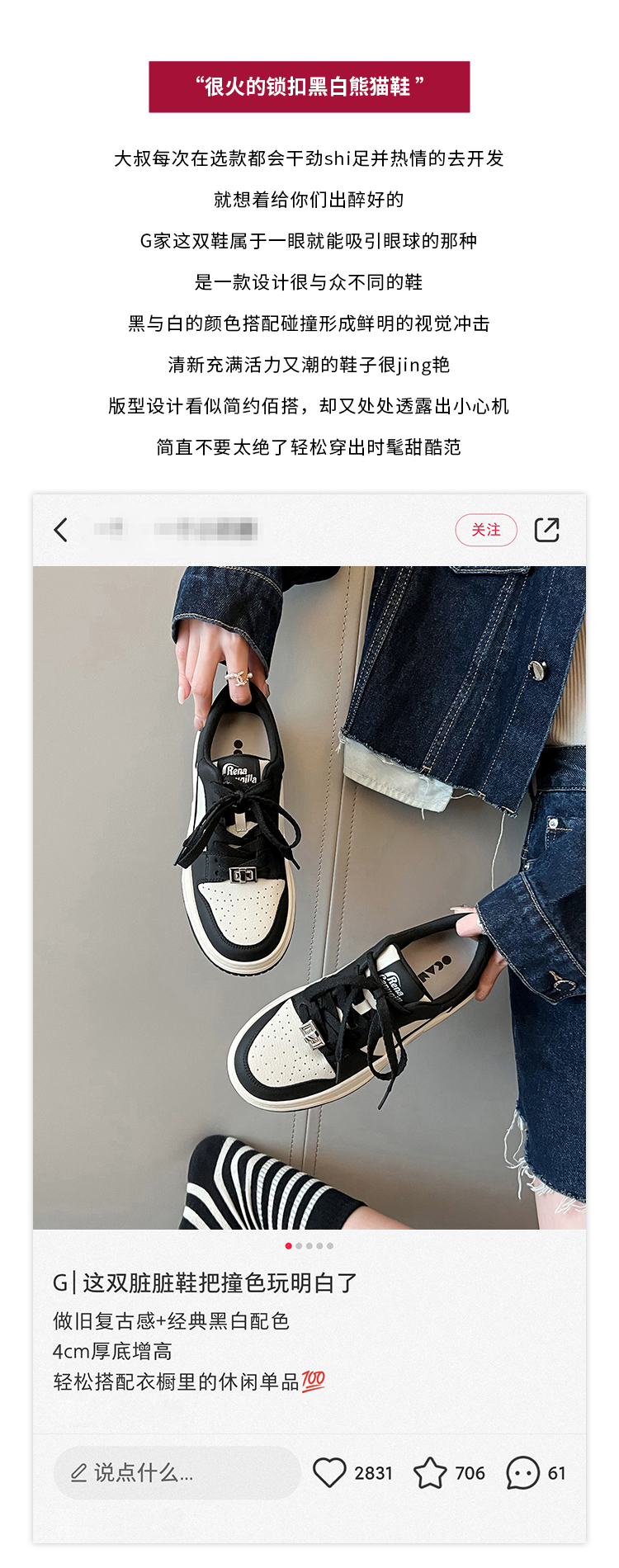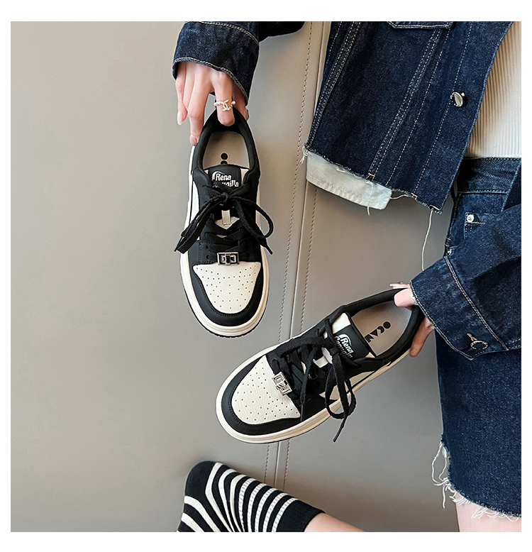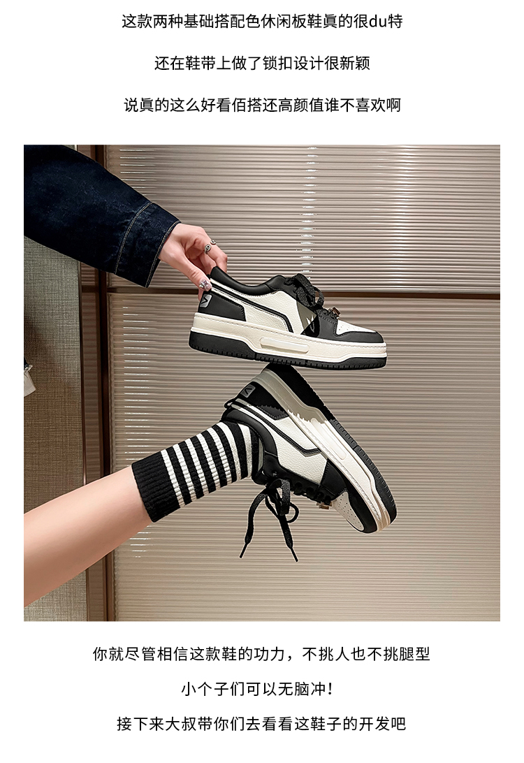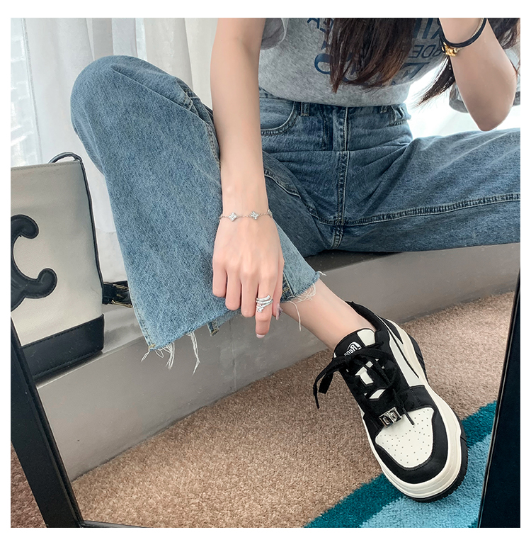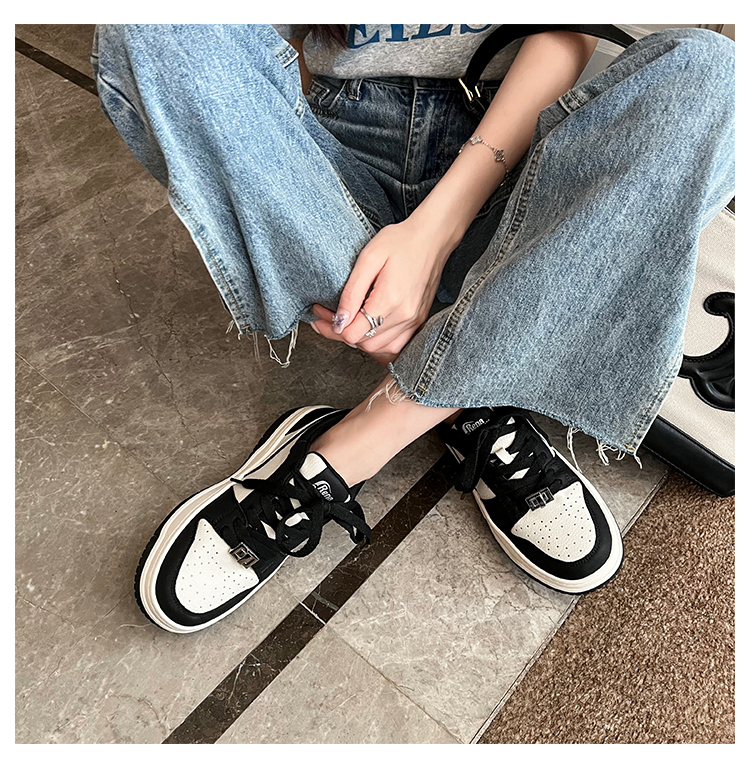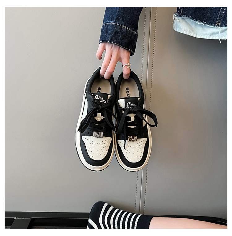 Handmade Cowhide ~ Uncle's Genuine Leather Thick-Soled Casual White Shoes for Women, Fleece-Lined for Autumn and Winter, Black and White Sports Panda Sneakers