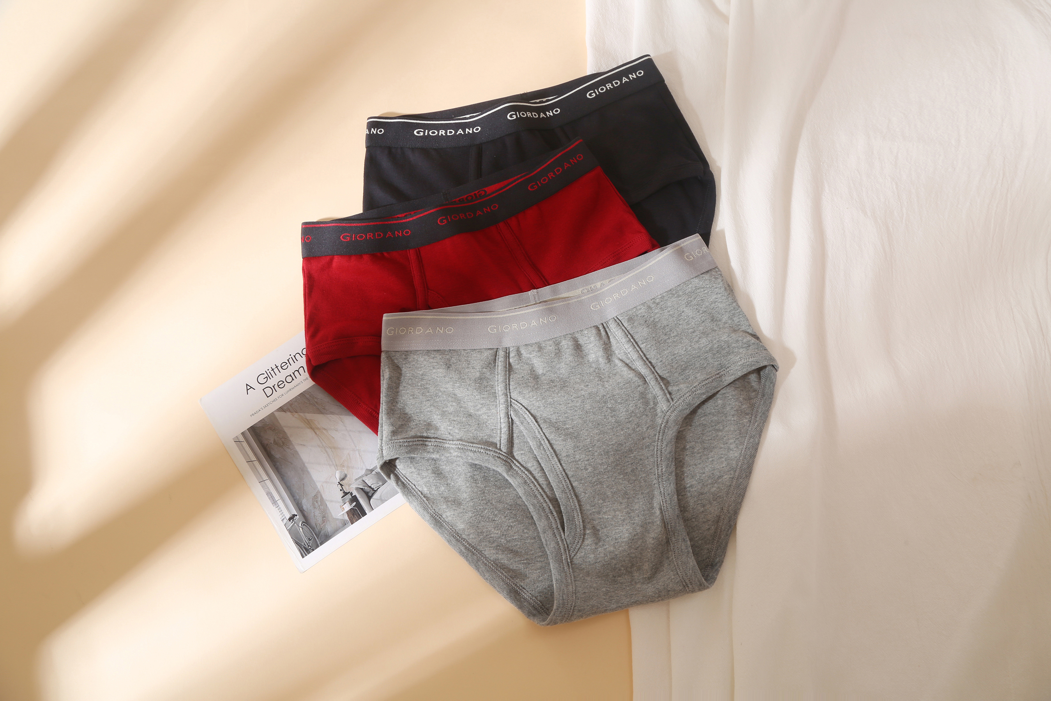 Authentic Giordano Men's Briefs, All-Cotton, Comfortable, Wide Elastic Waistband, Men's Underwear, 3-Pack