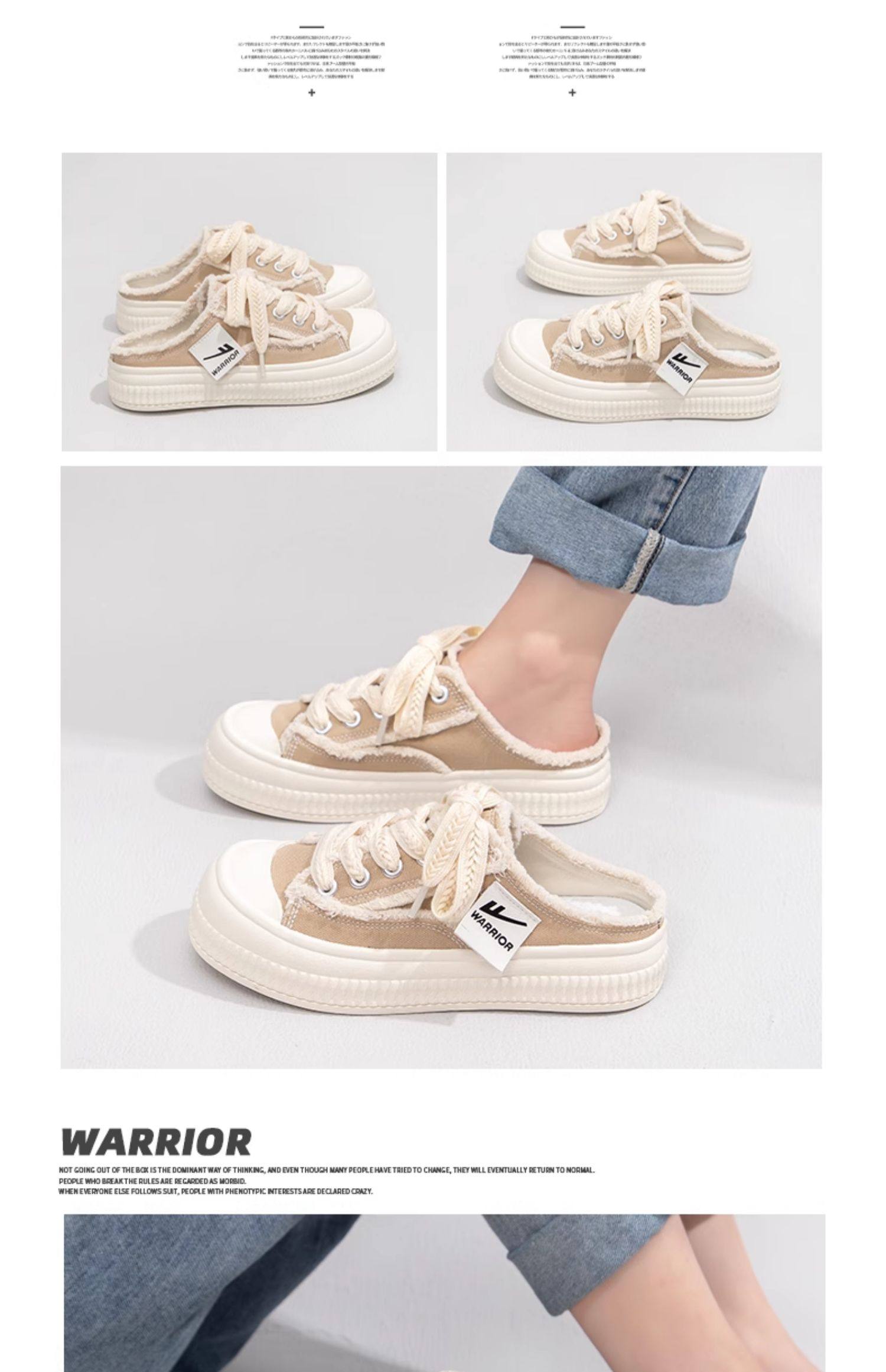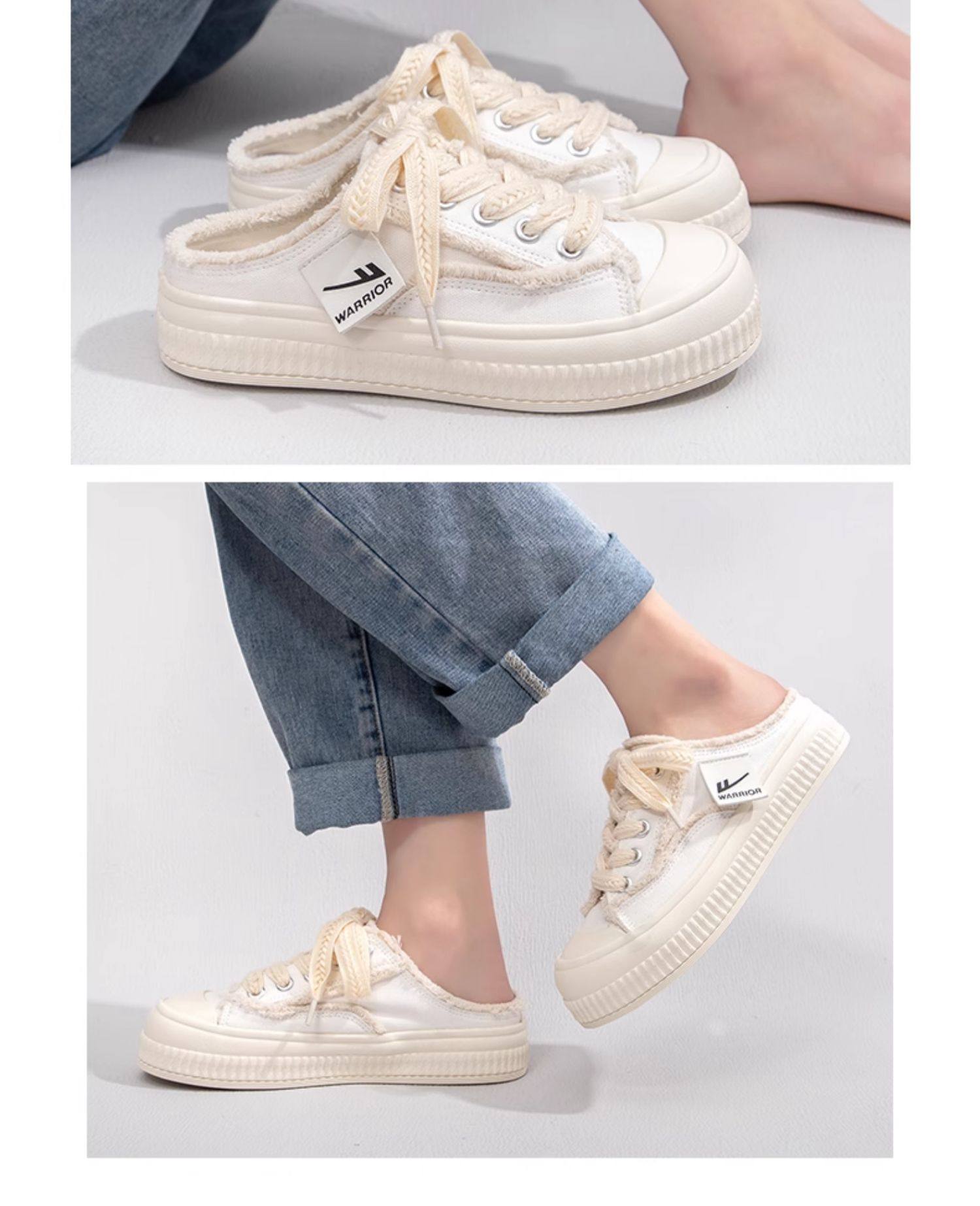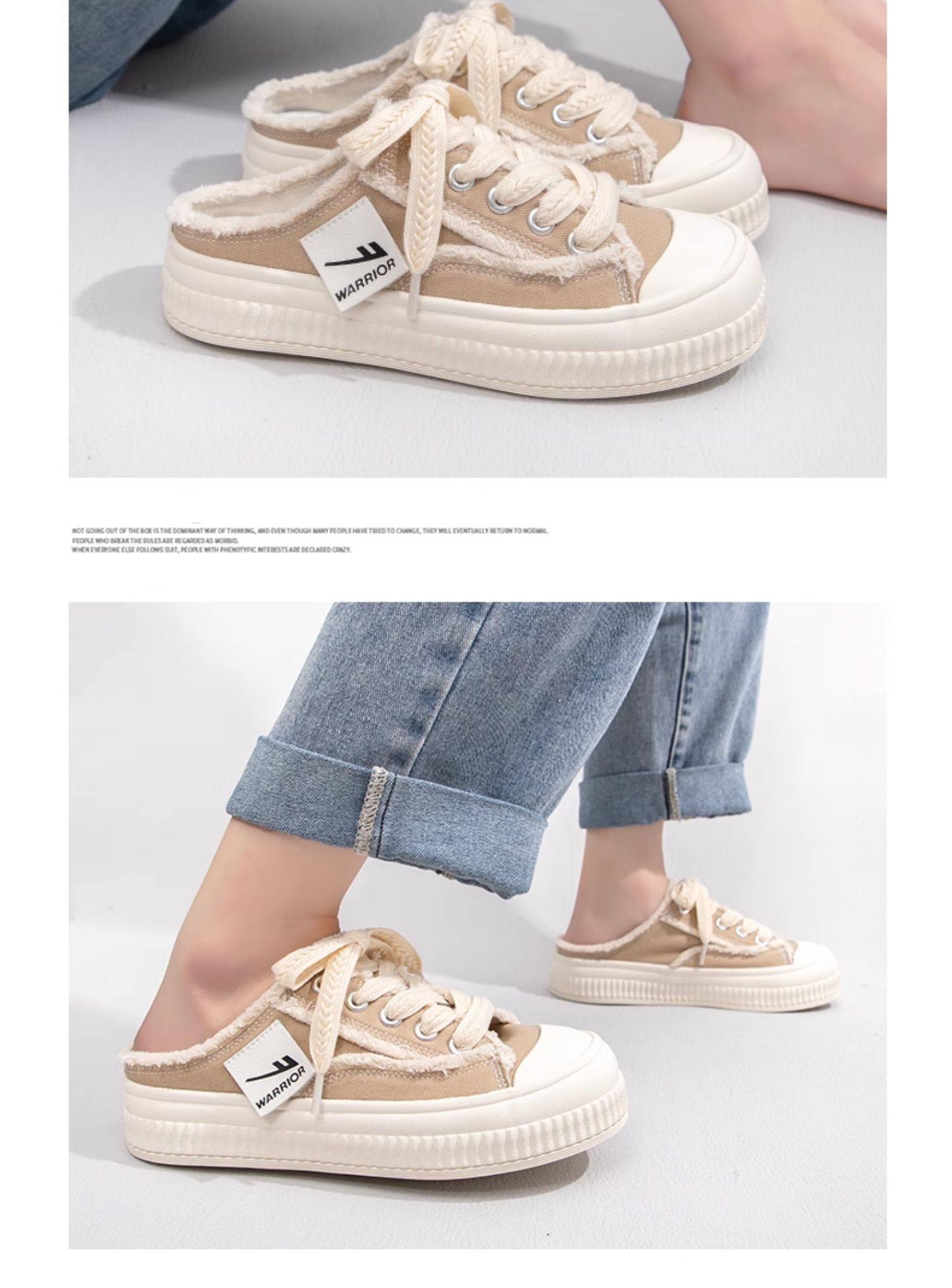 Pull-Back Canvas Shoes for Women 2026 New Spring Slip-On Closed-Toe Half-Slippers Thick-Soled Versatile Sneakers