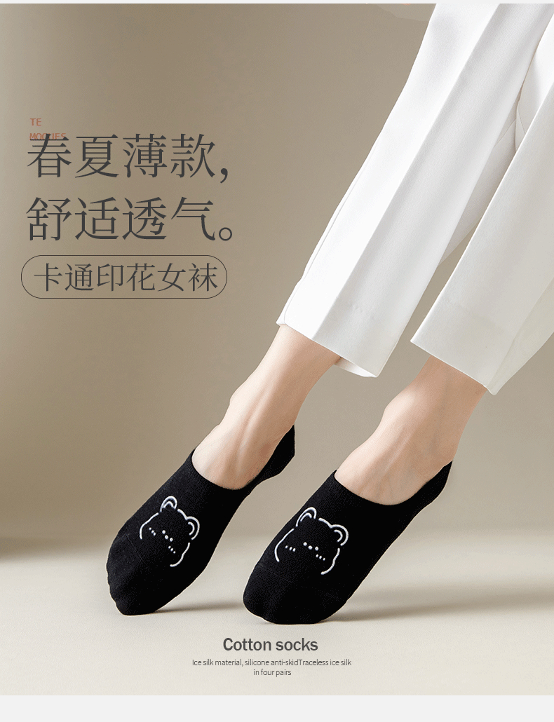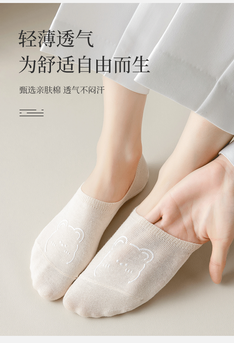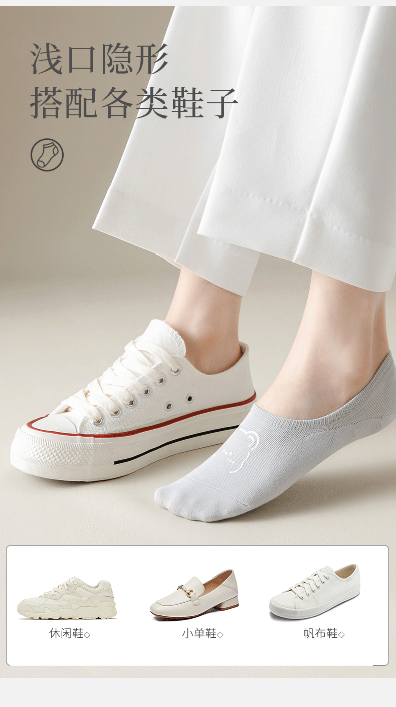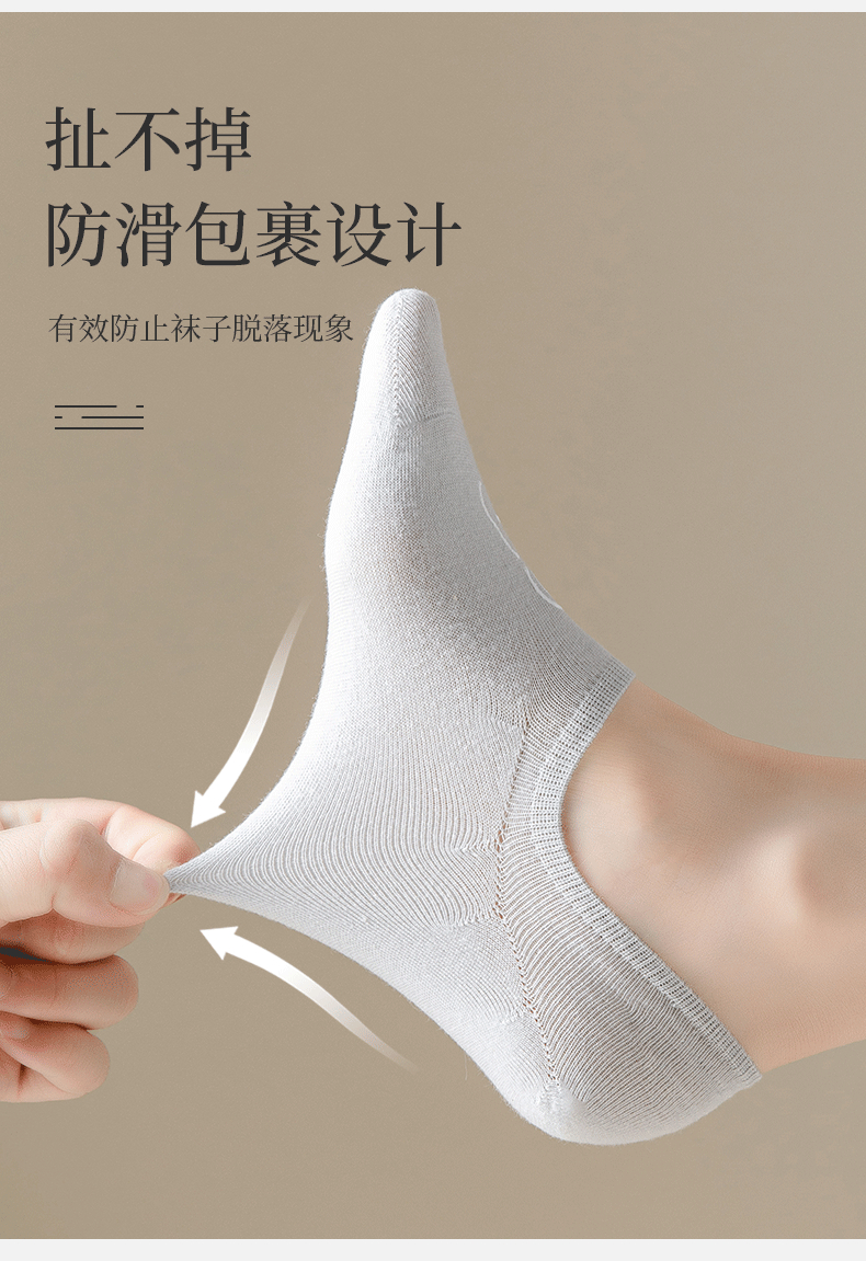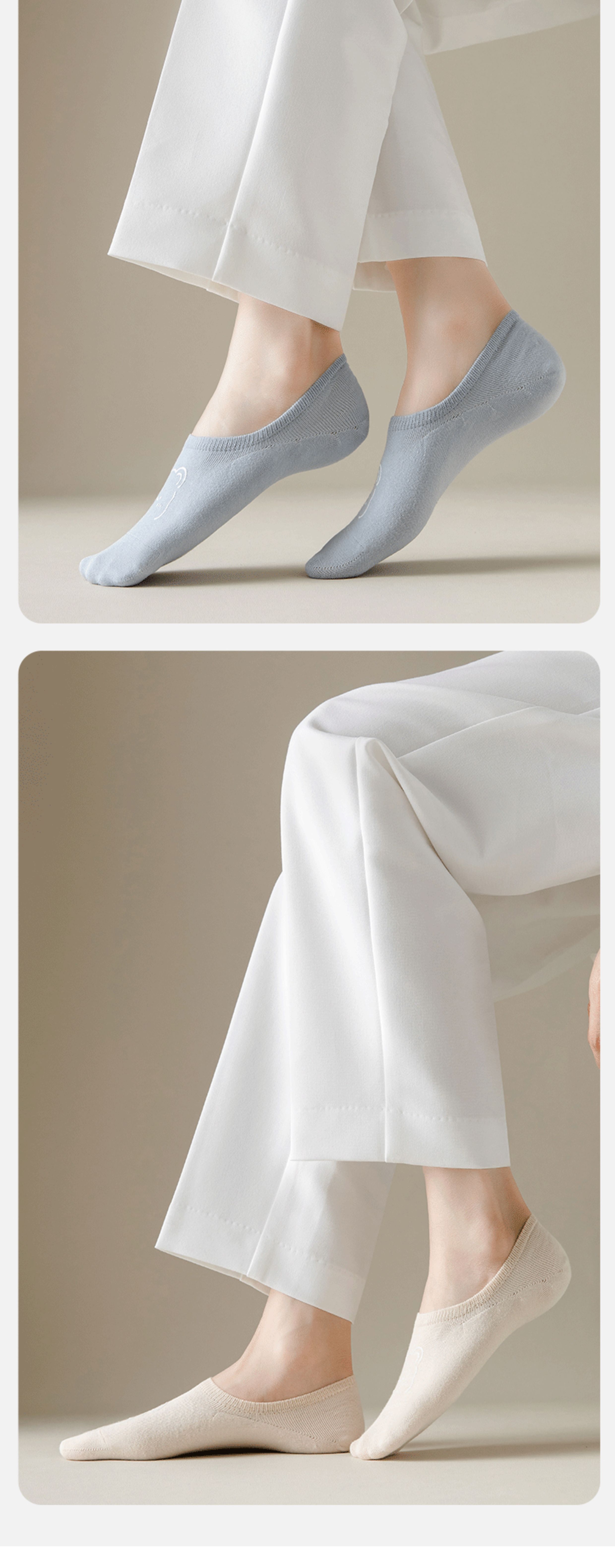 Women's Spring and Autumn Pure Cotton Non-Slip Invisible Short Socks, Anti-Foot Odor, White Low-Cut Boat Socks, Thin Silicone for Summer