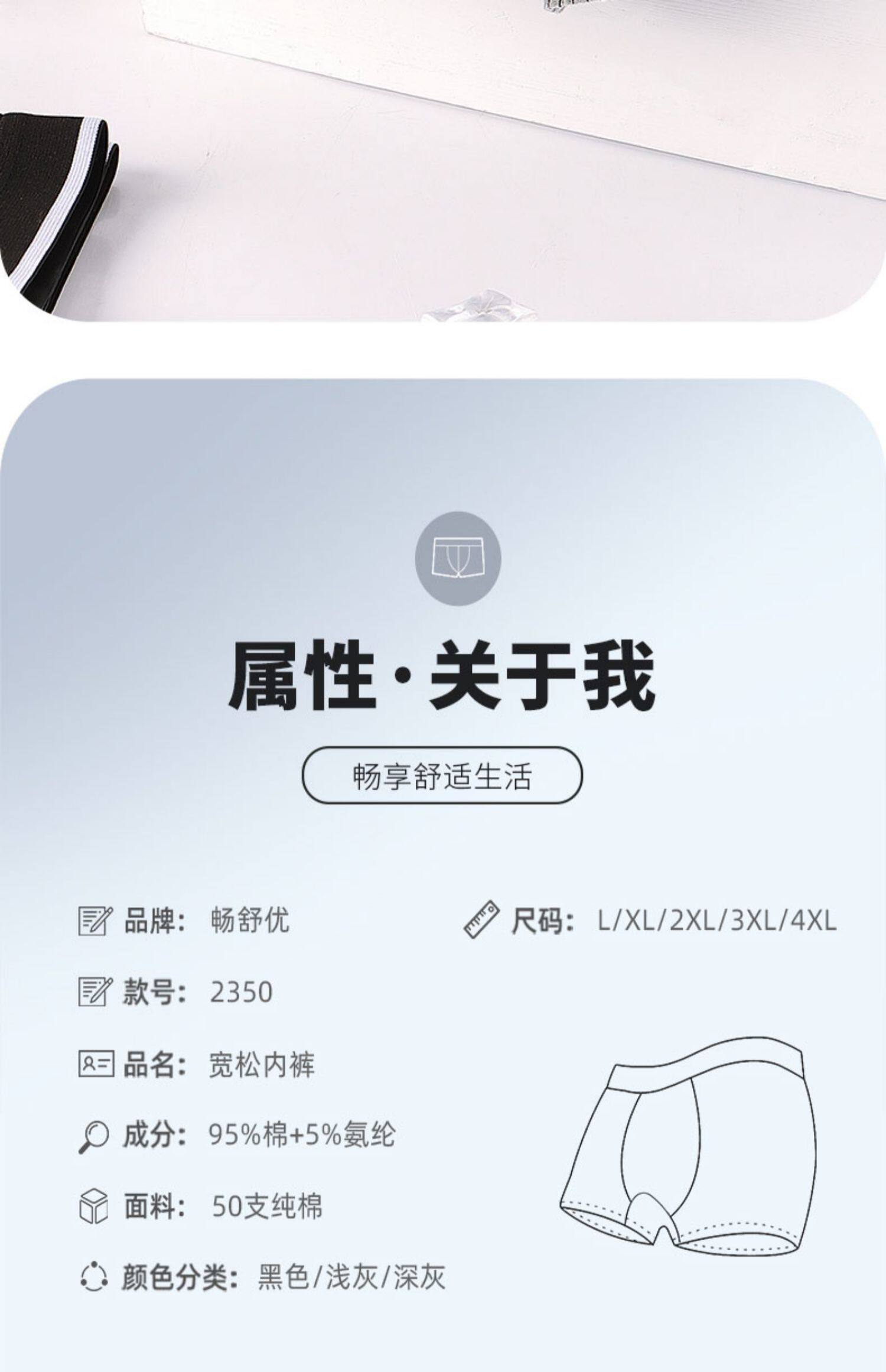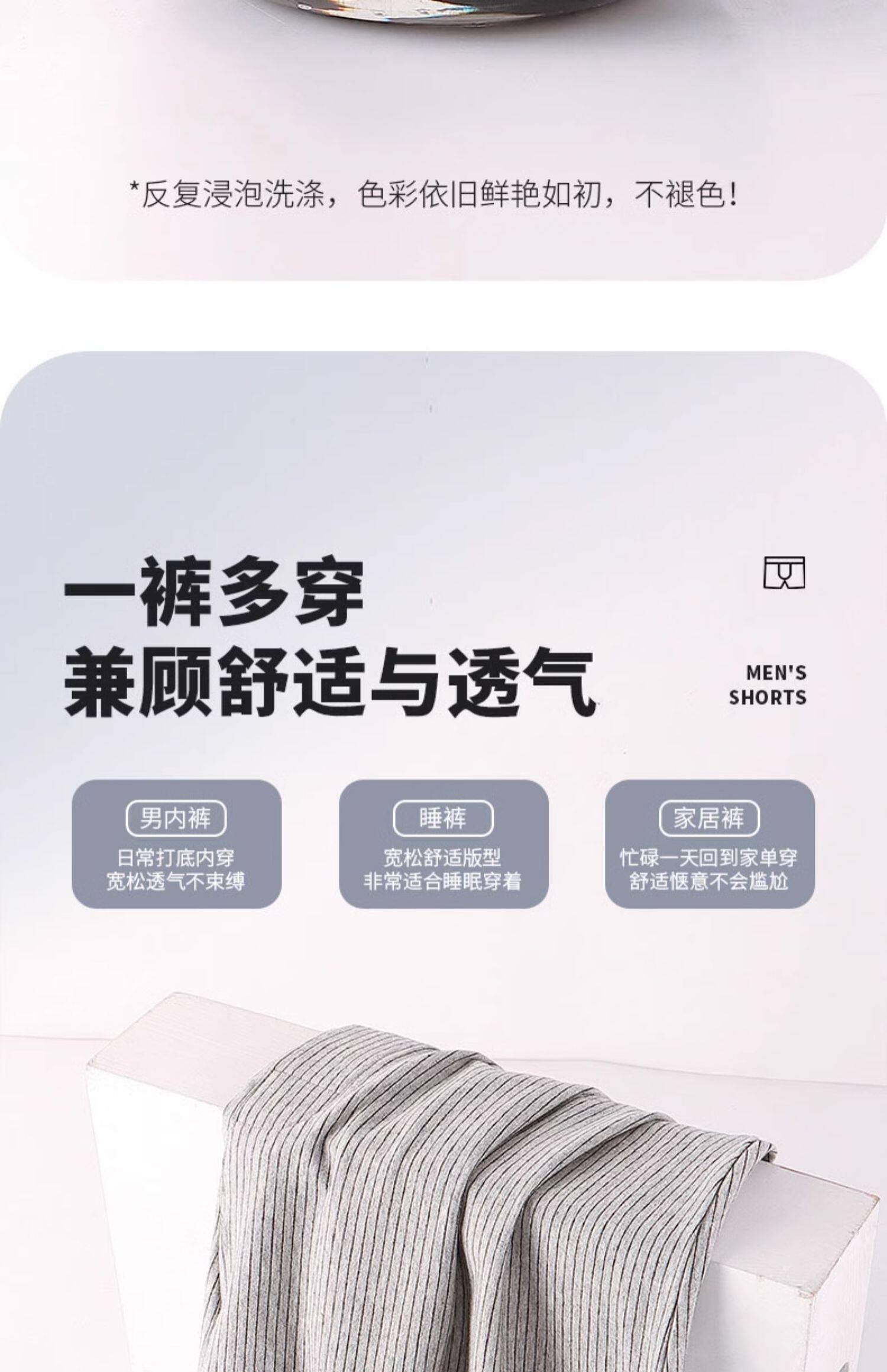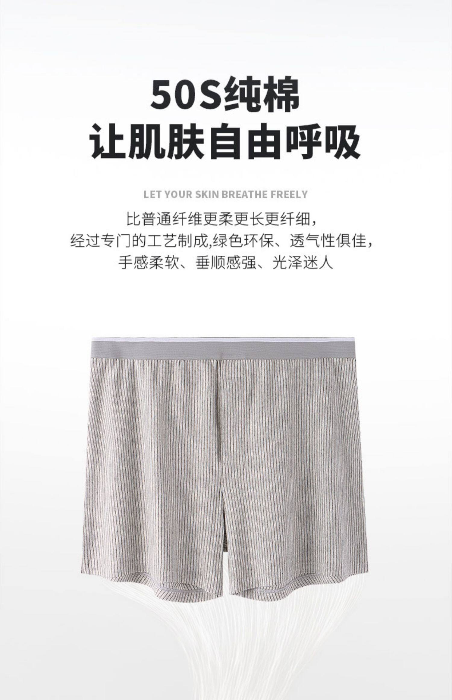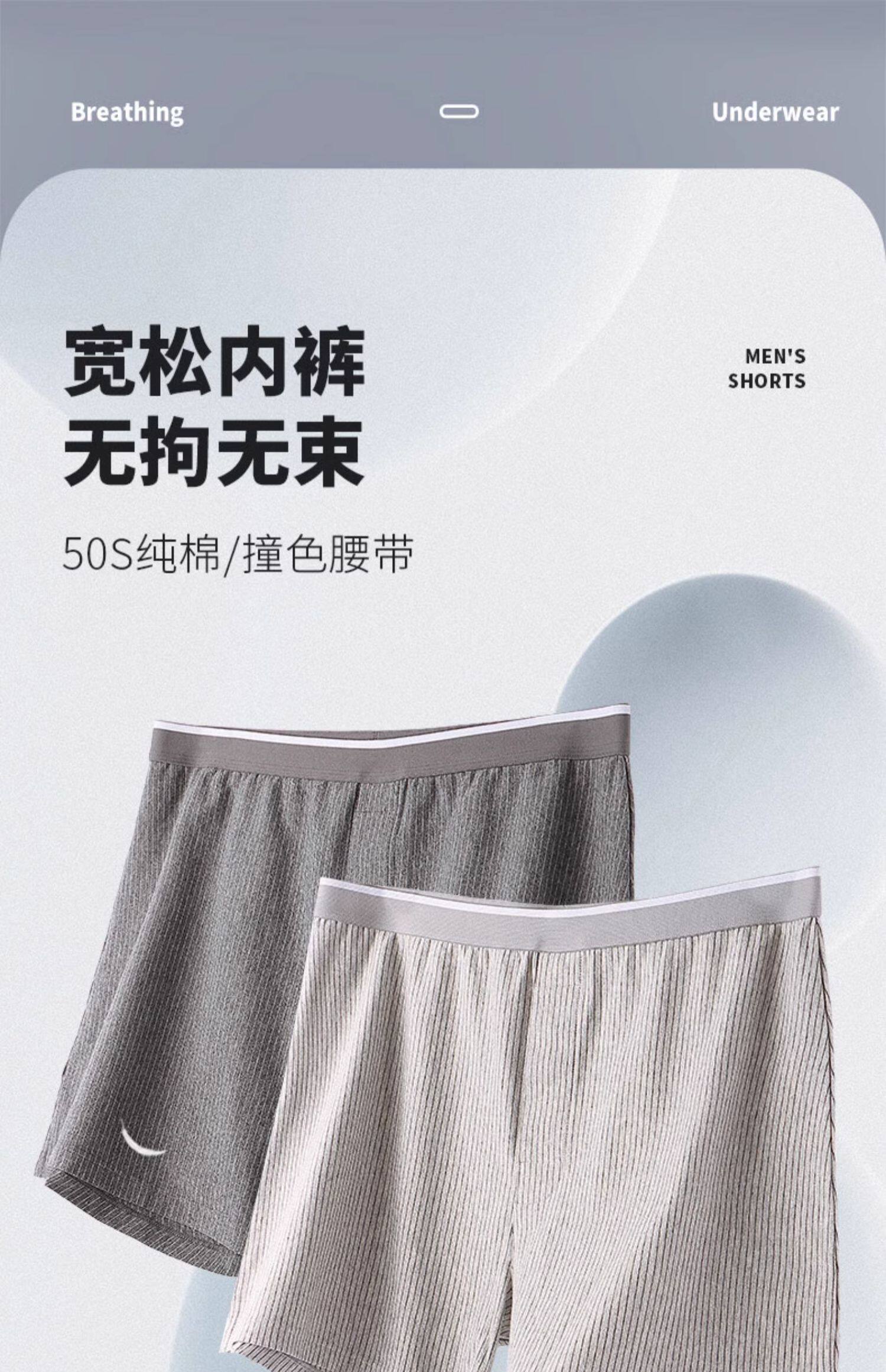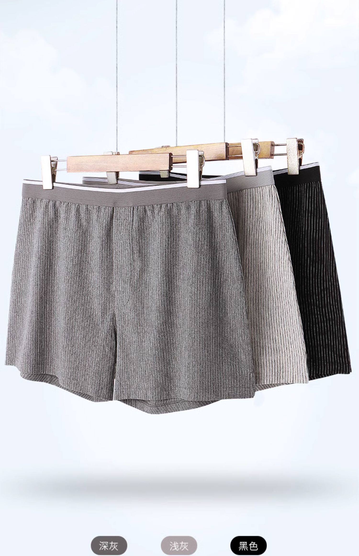 Men's Pure Cotton Boxer Briefs, Loose, Comfortable, Breathable, Striped, Large Size, Non-Binding, for Big and Tall Men