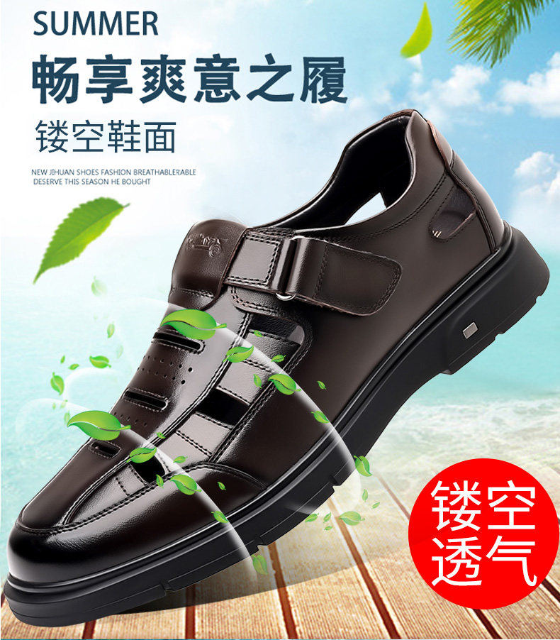 Vintage Leather Sandals for Men, Genuine Leather, Breathable for Summer, Hollow-Out Design, Versatile Business Casual Closed-Toe Leather Sandals for Men