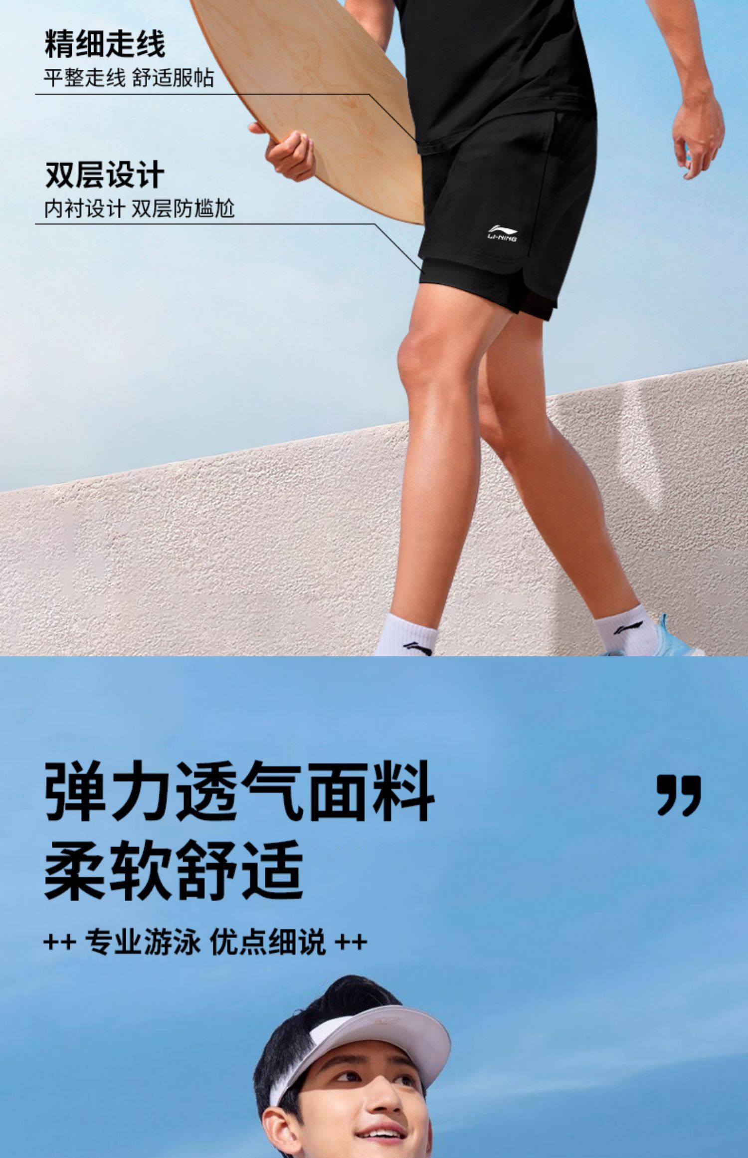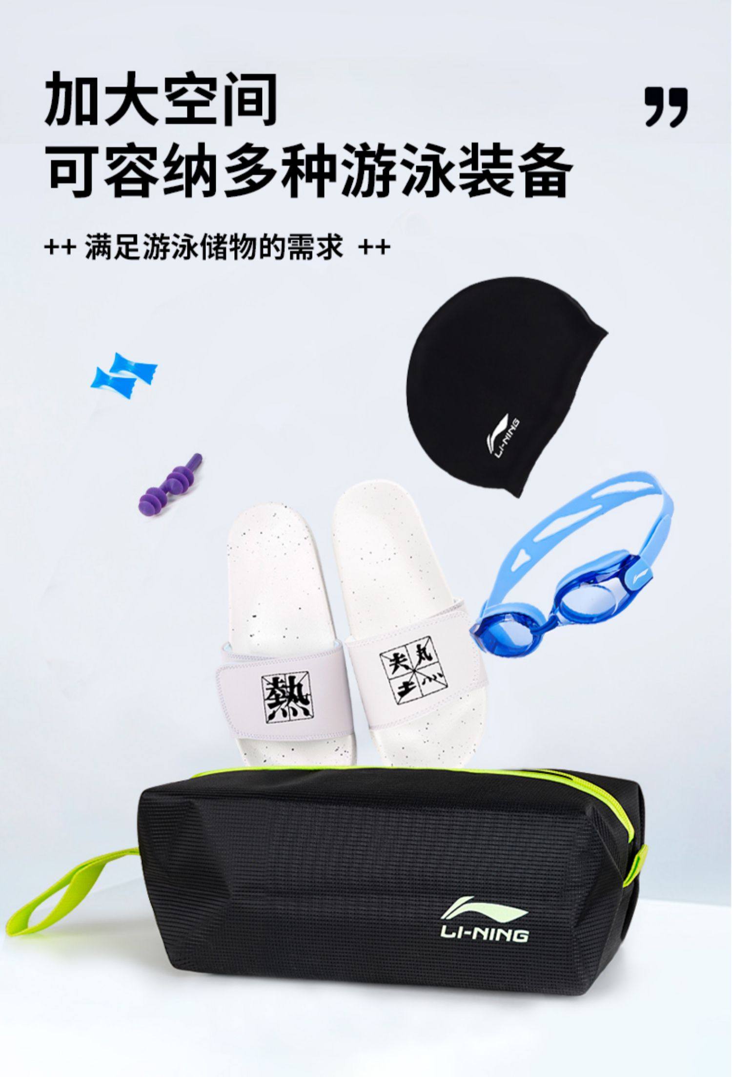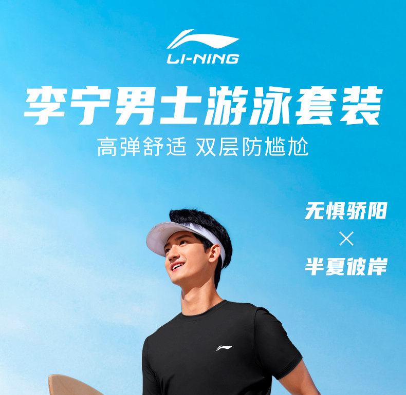 Li-Ning Swimming Gear for Men, Complete Set of Swimming Trunks, Swimming Cap, Swimming Goggles, Three-Piece Set, Men's Swimwear Set, Youth Anti-Embarrassment