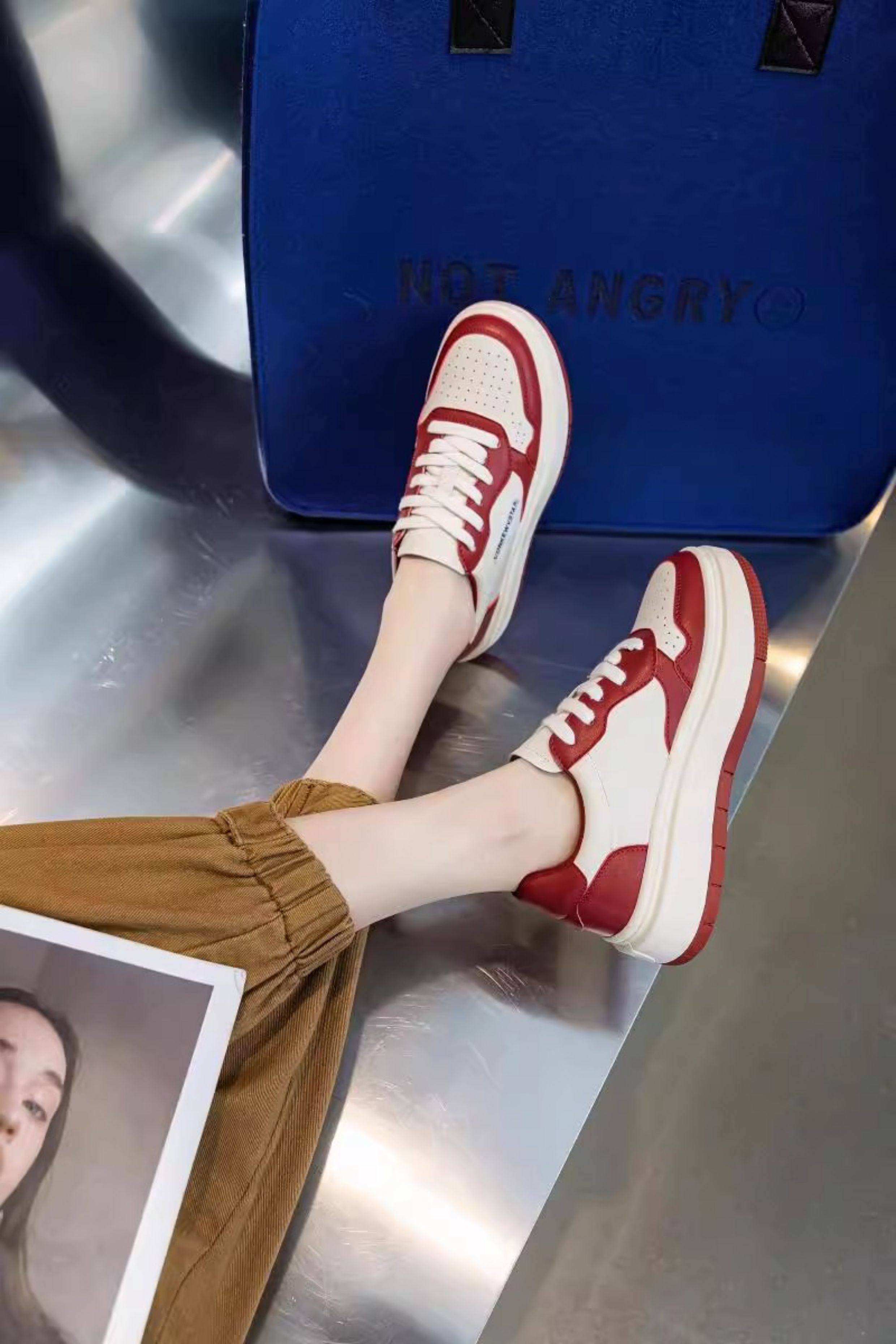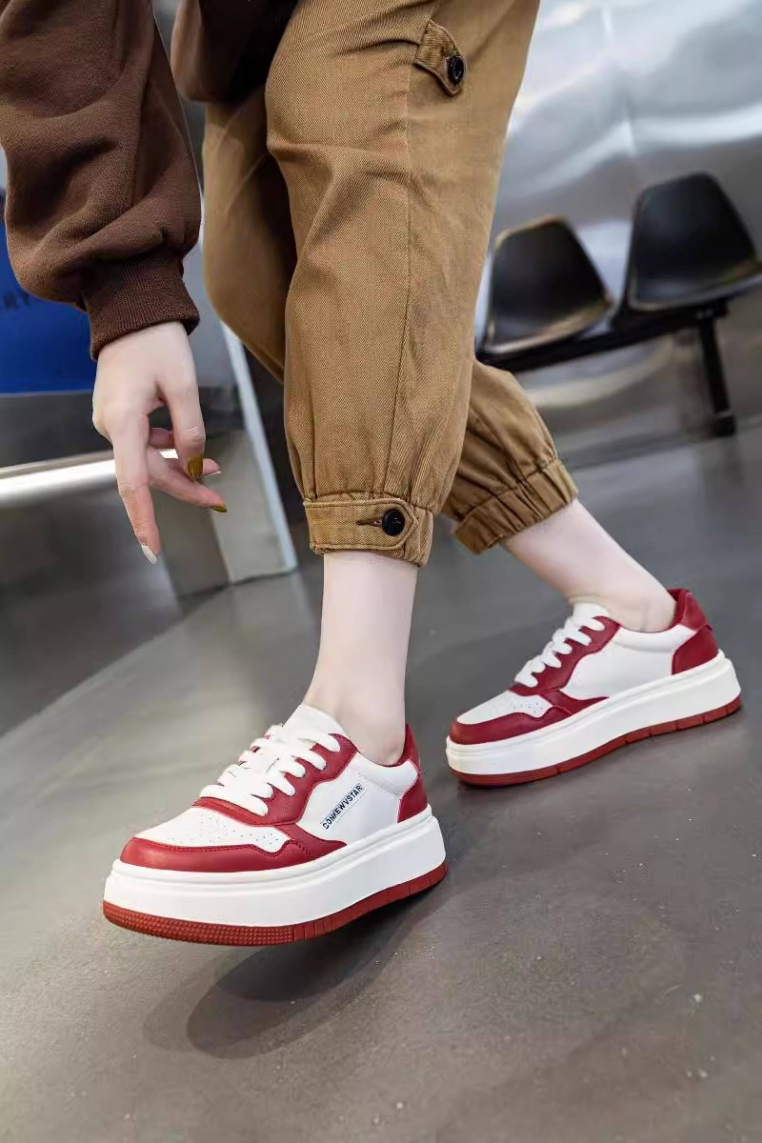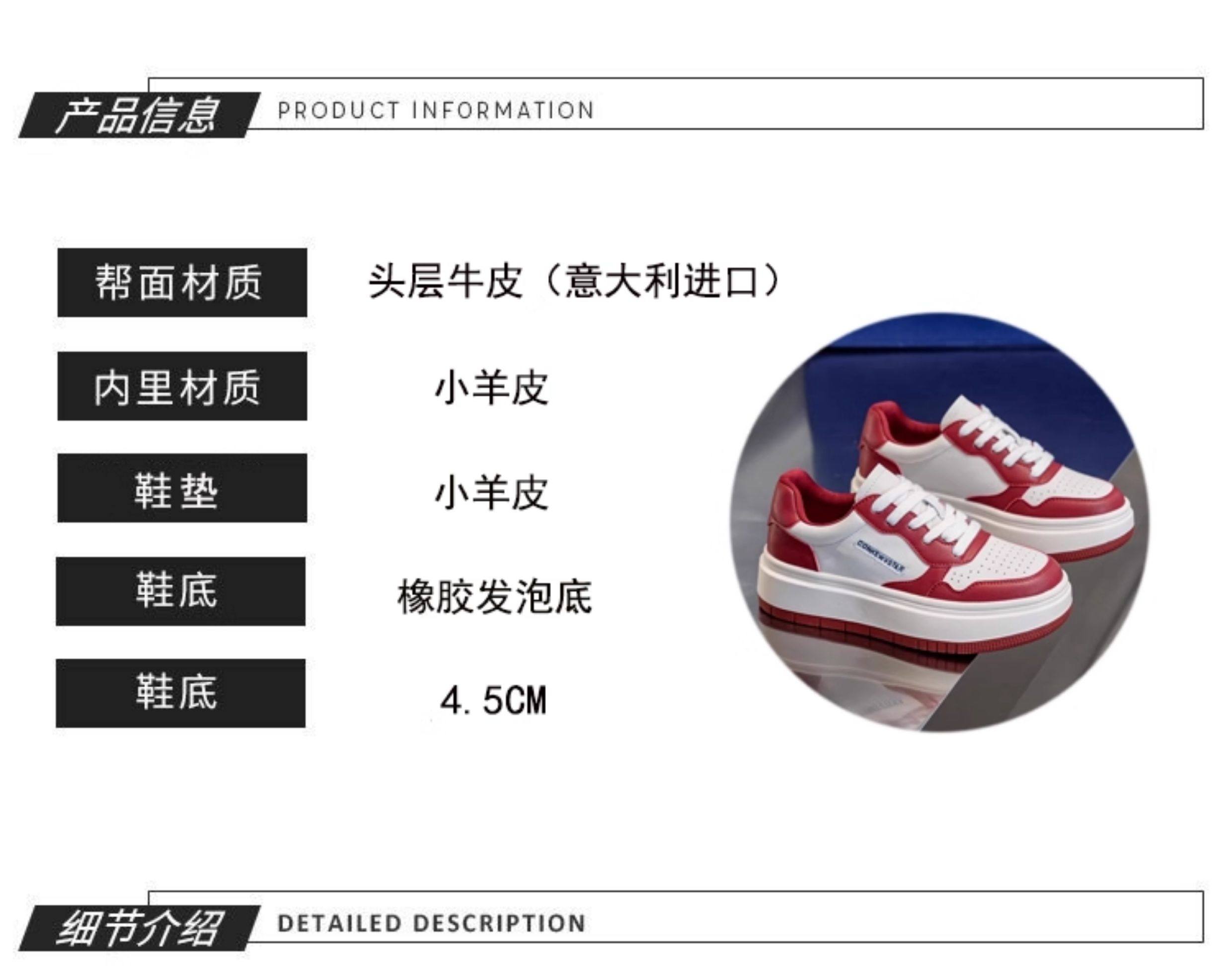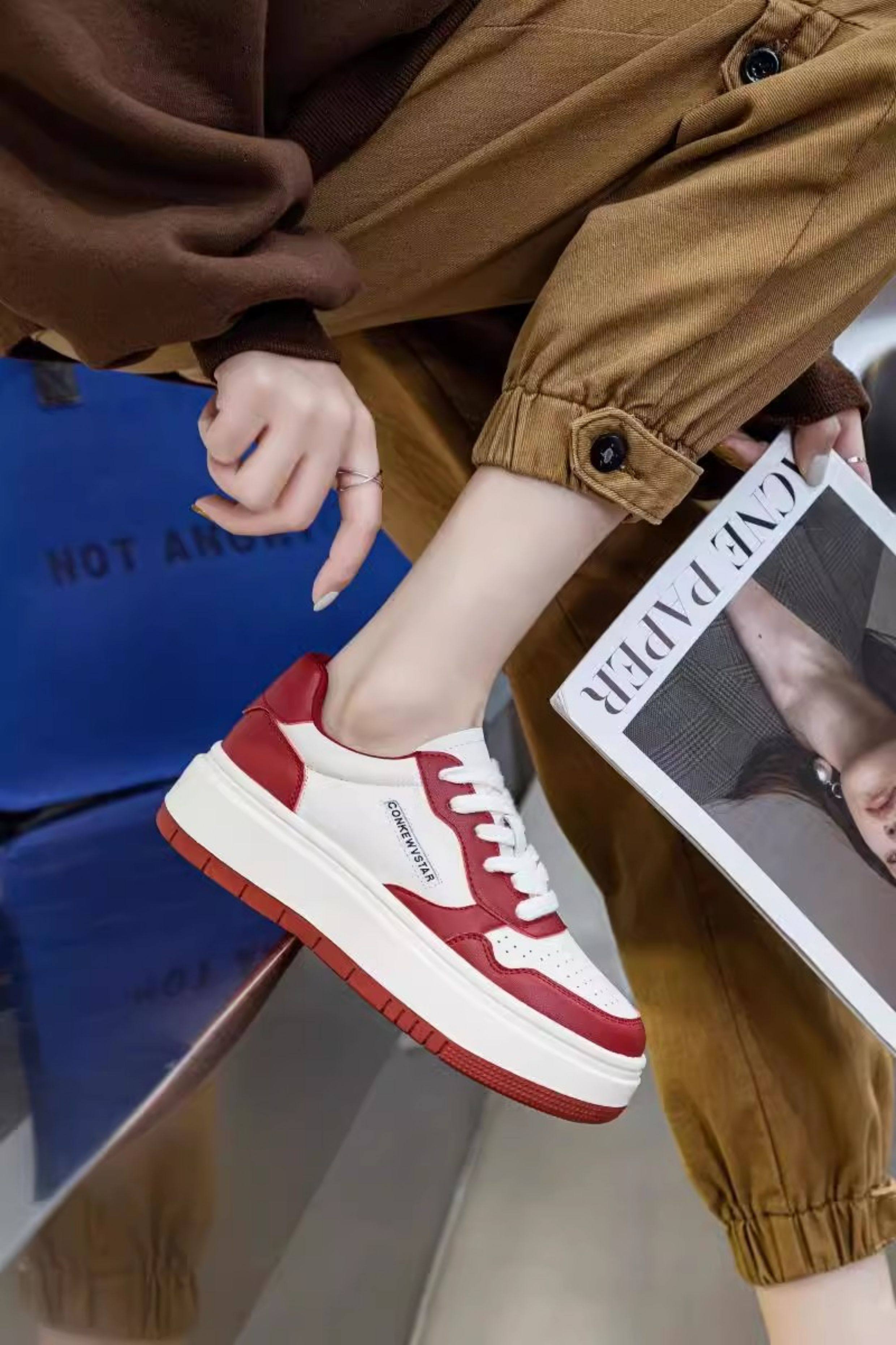 Hong Kong Thick-Soled Genuine Leather White Sneakers for Women 2025 Spring and Autumn New Korean Style Versatile Casual Sneakers Red Student Shoes Trendy