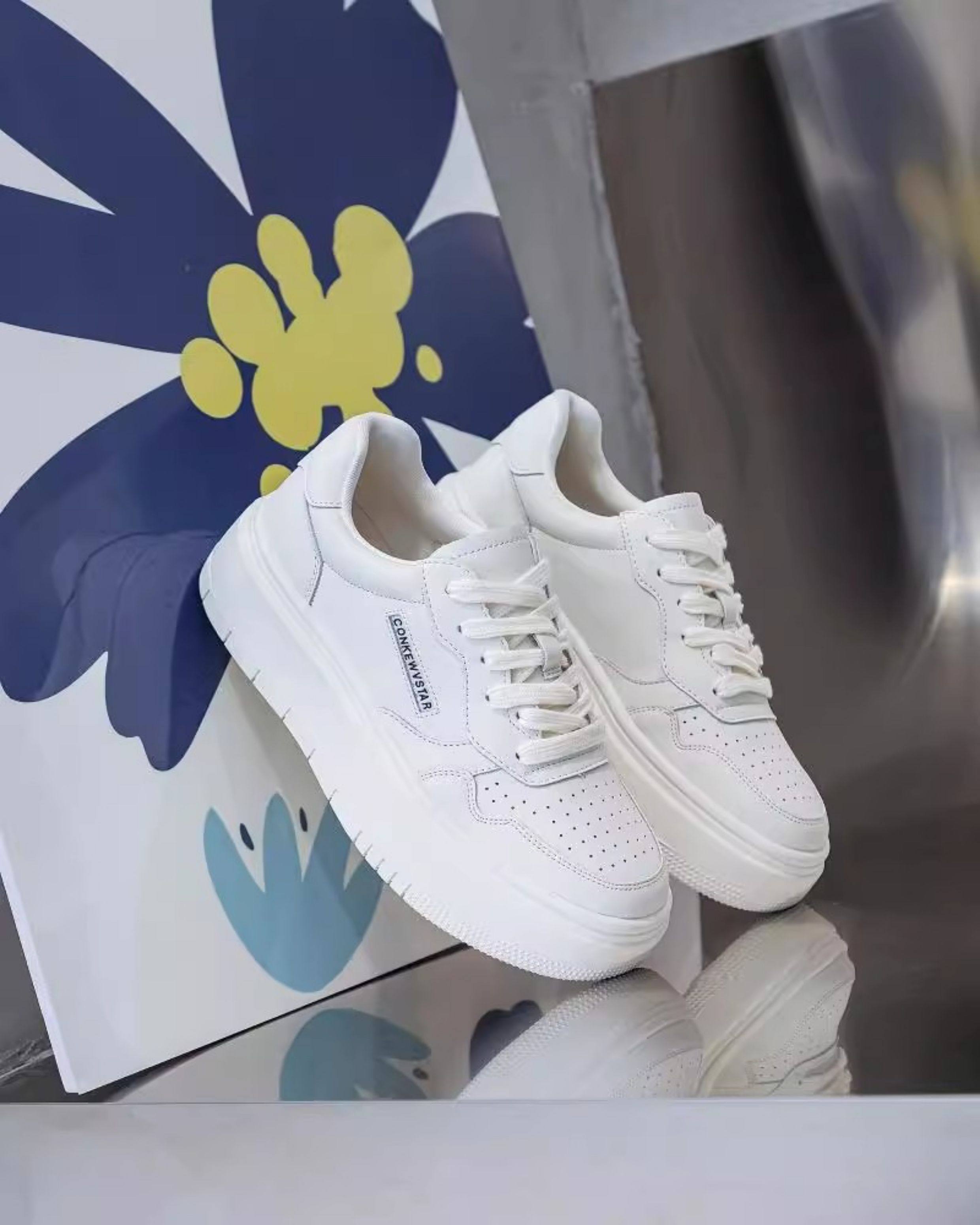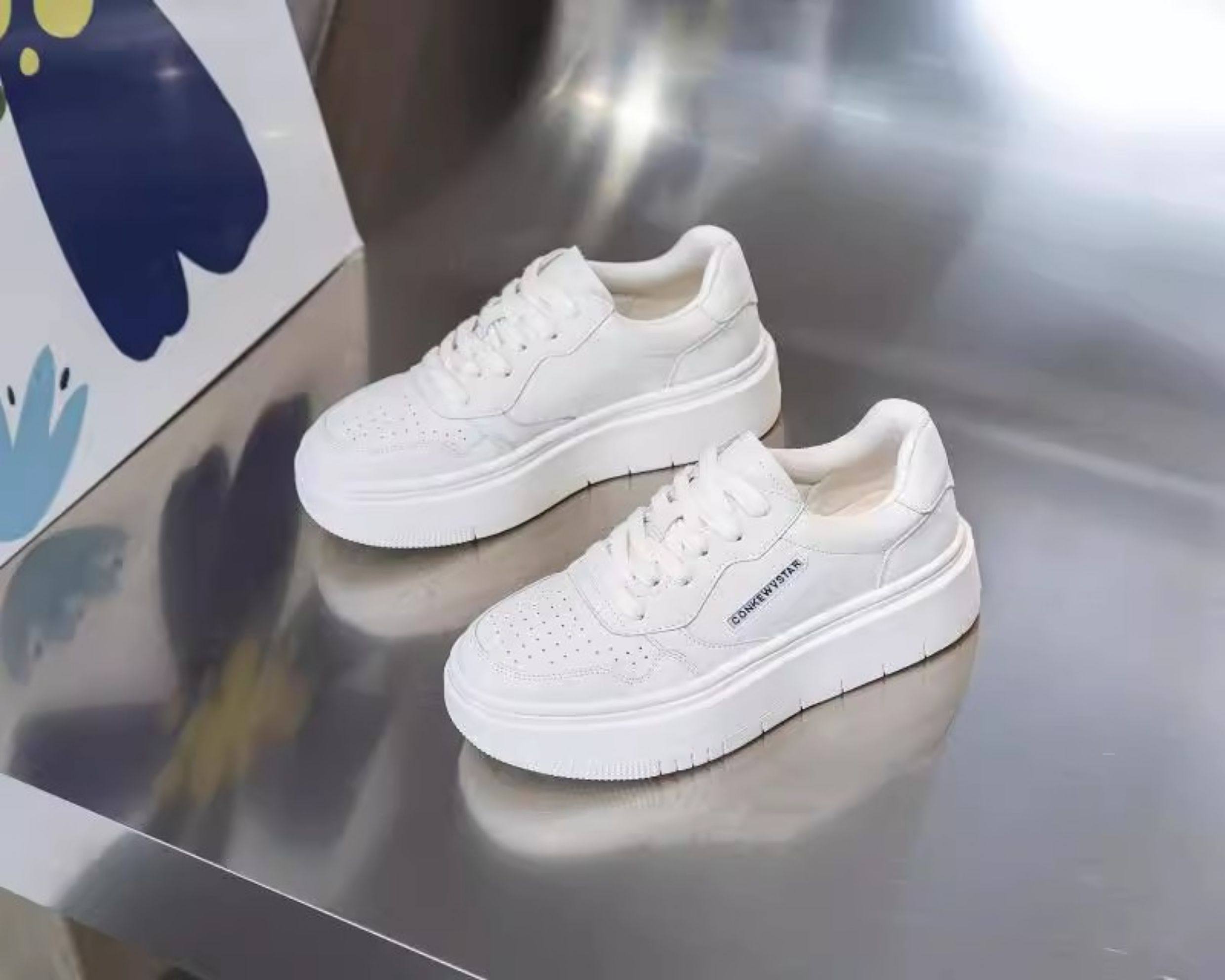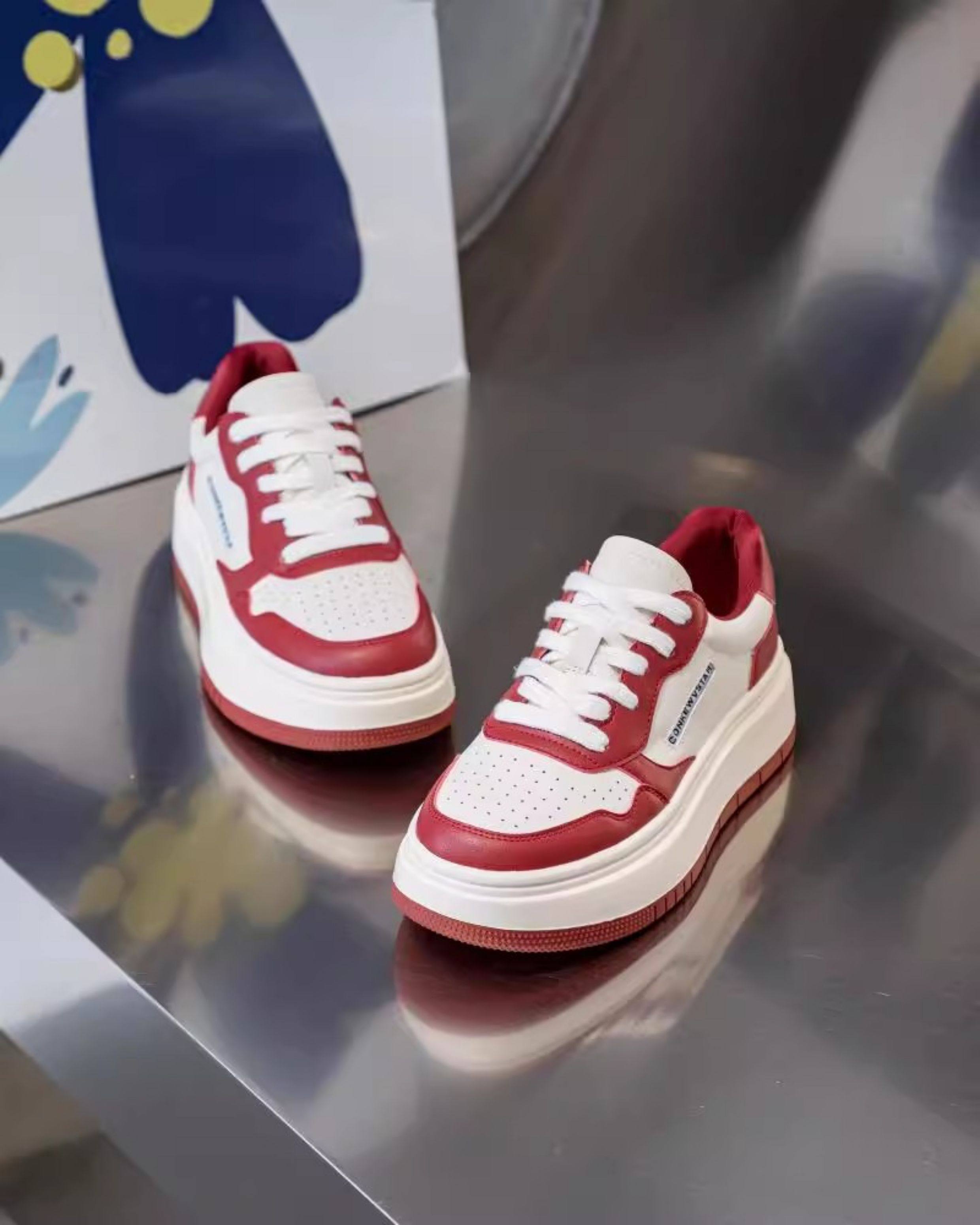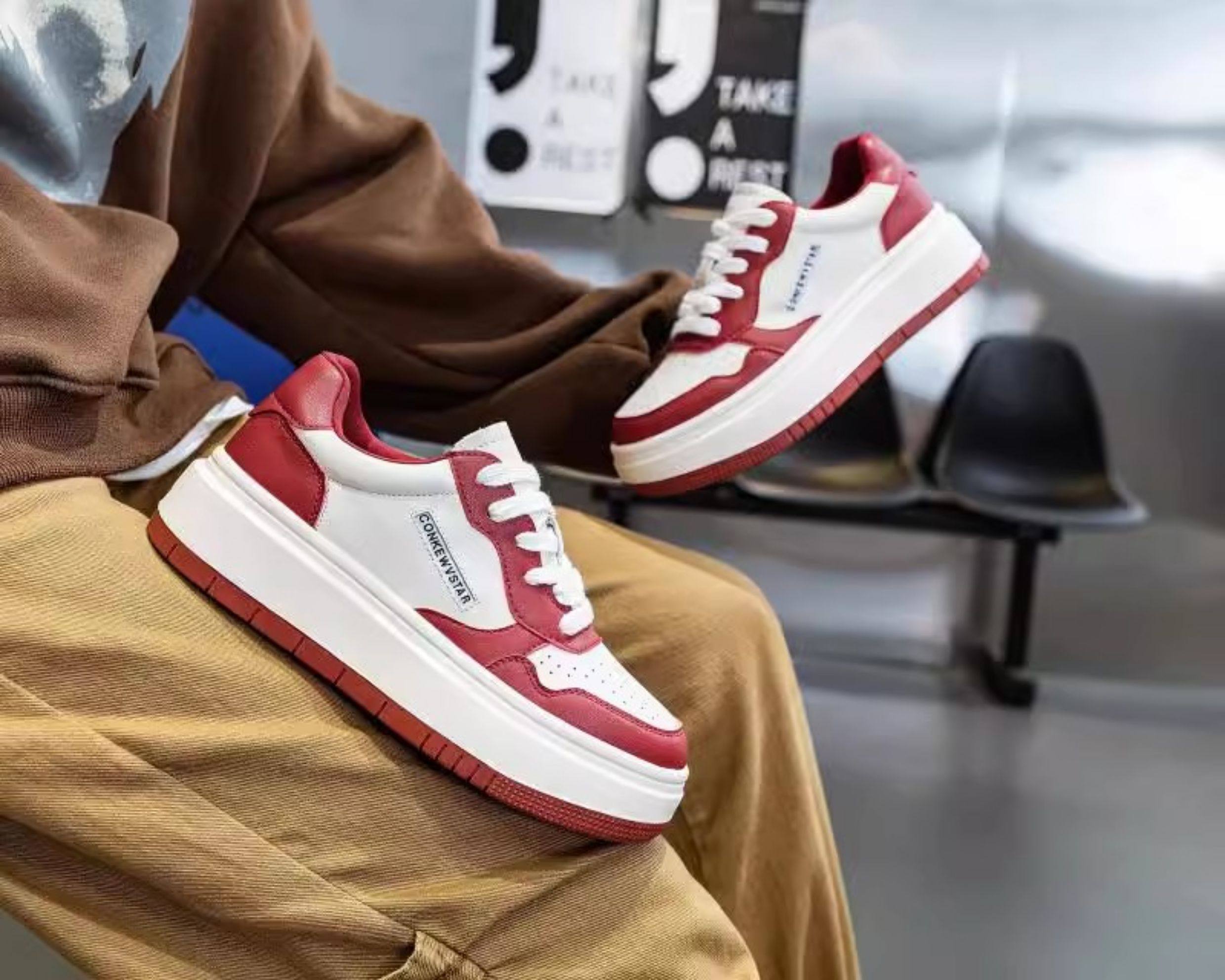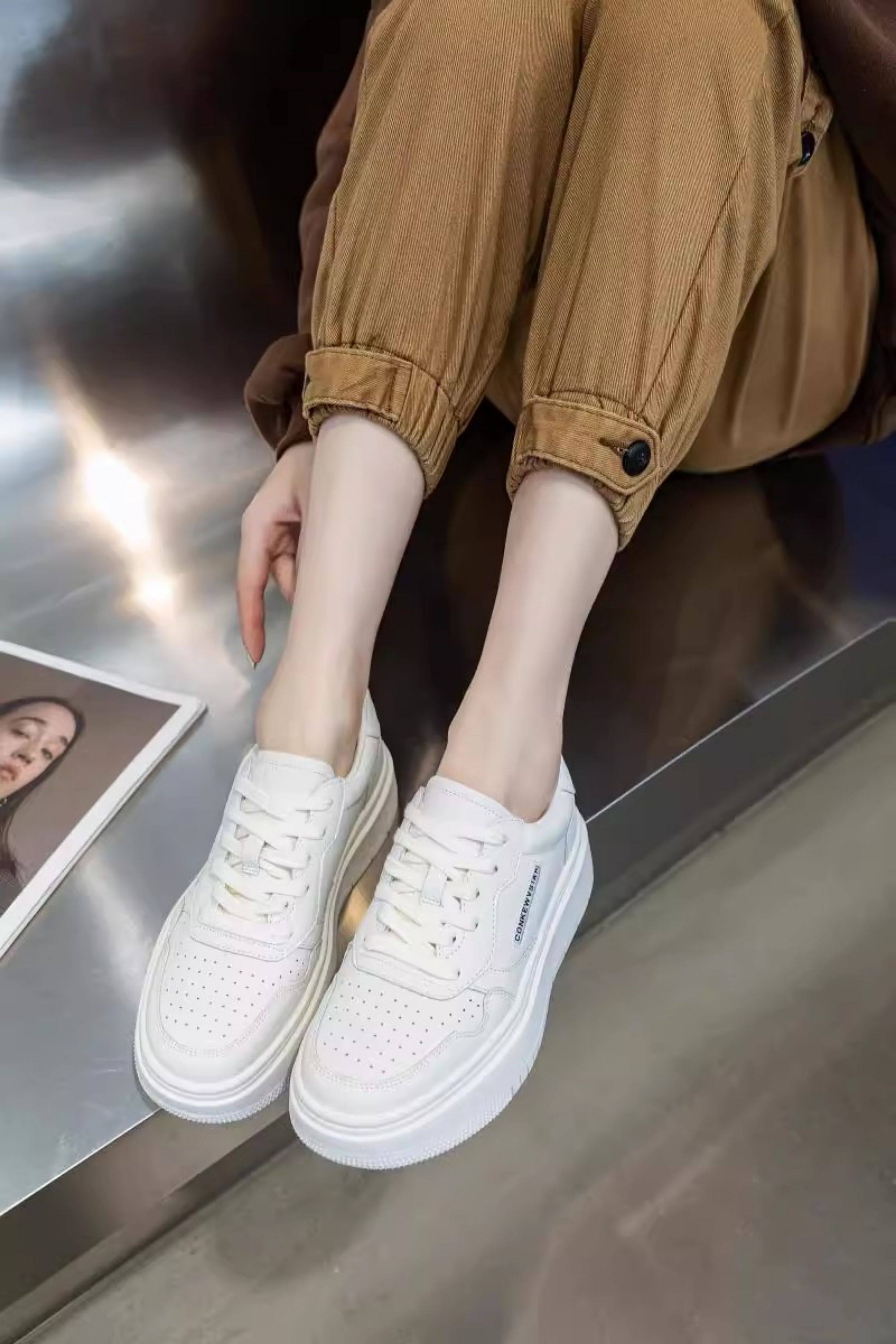 Hong Kong Thick-Soled Genuine Leather White Sneakers for Women 2025 Spring and Autumn New Korean Style Versatile Casual Sneakers Red Student Shoes Trendy