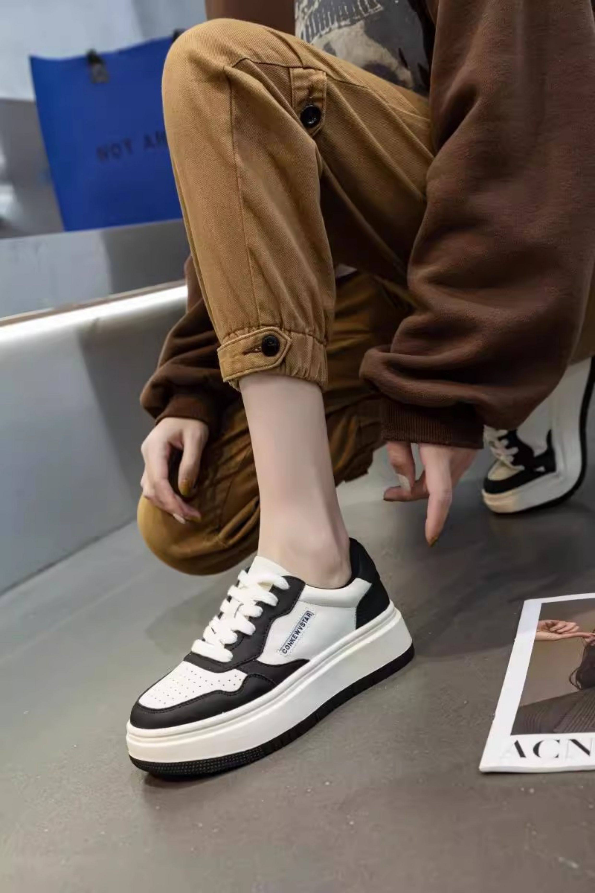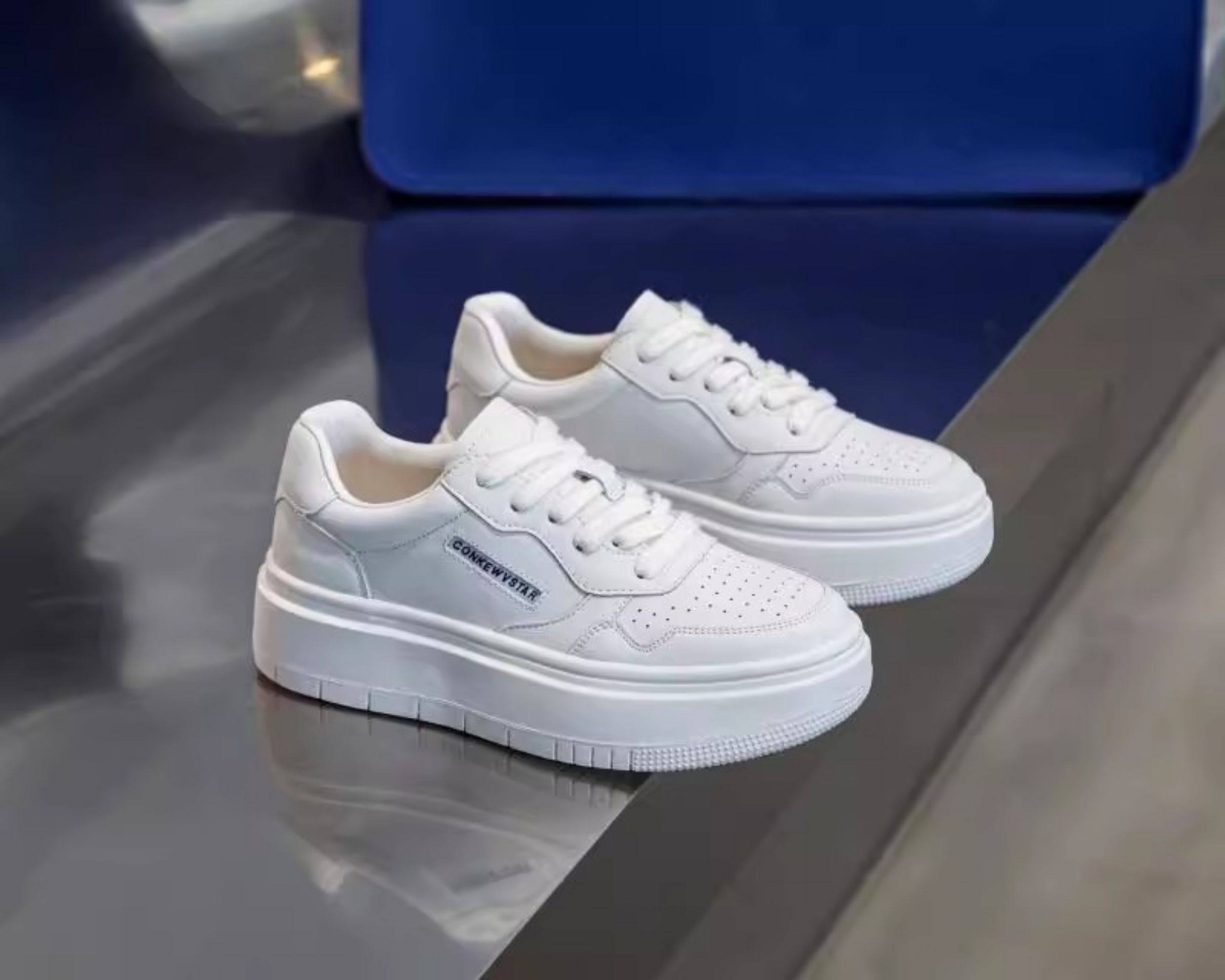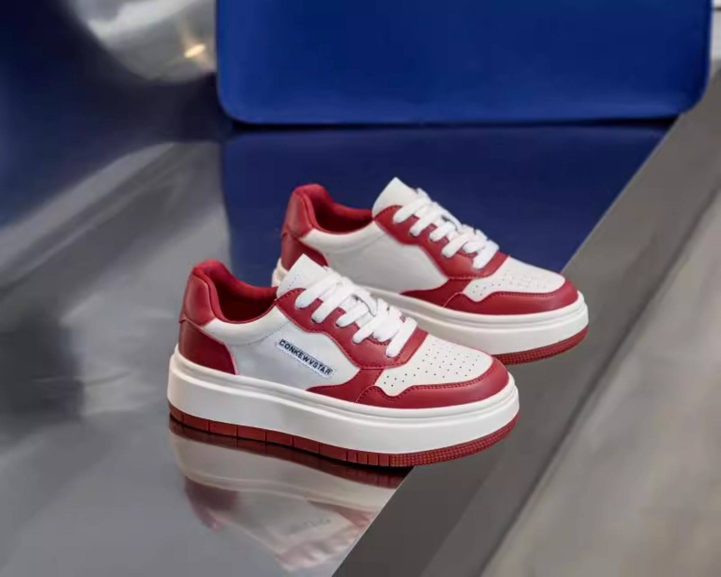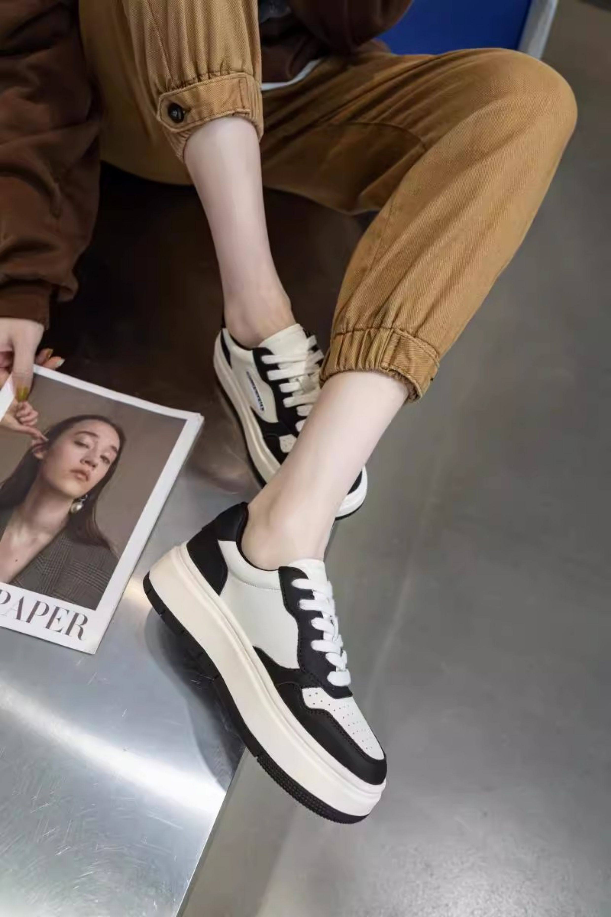 Hong Kong Thick-Soled Genuine Leather White Sneakers for Women 2025 Spring and Autumn New Korean Style Versatile Casual Sneakers Red Student Shoes Trendy