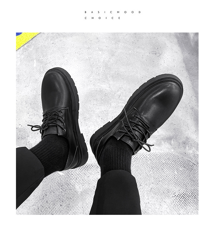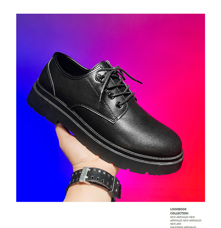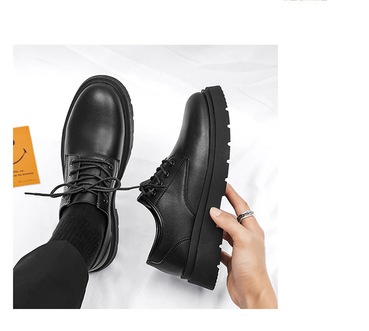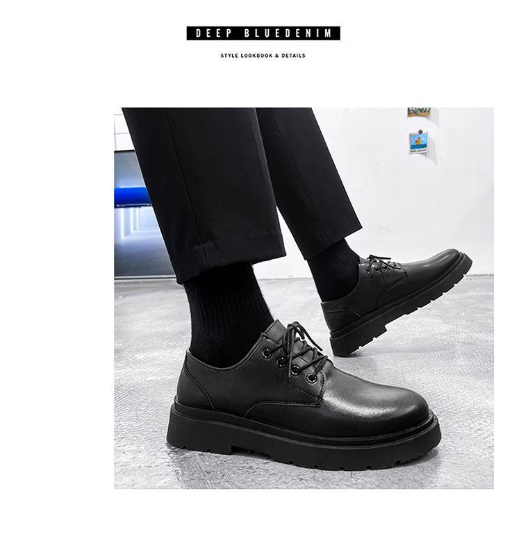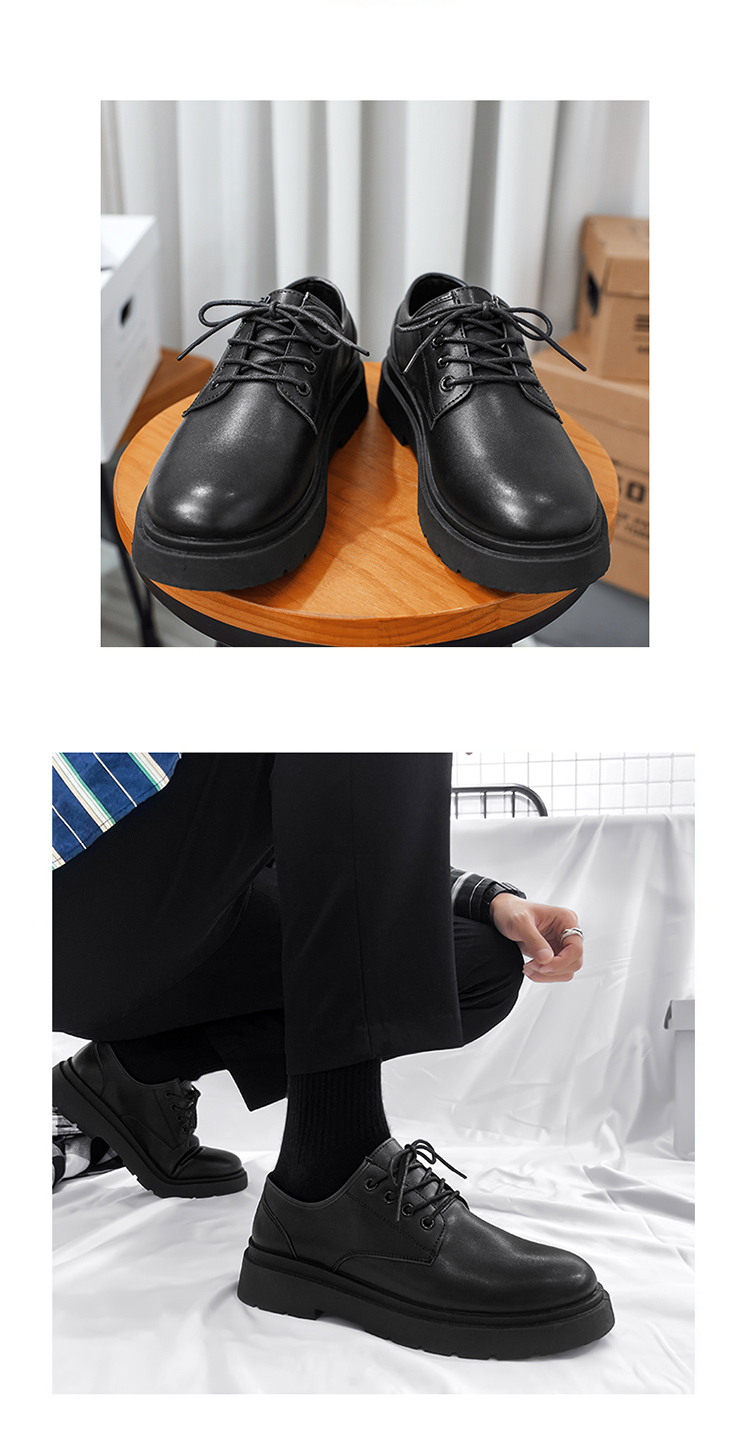 Men's Leather Shoes, British Style, for Teenagers and Students, Thick-Soled, Height-Increasing, Suitable for Suits, Casual Wear, Commuting, Civil Servants, Interviews, Black Work Shoes